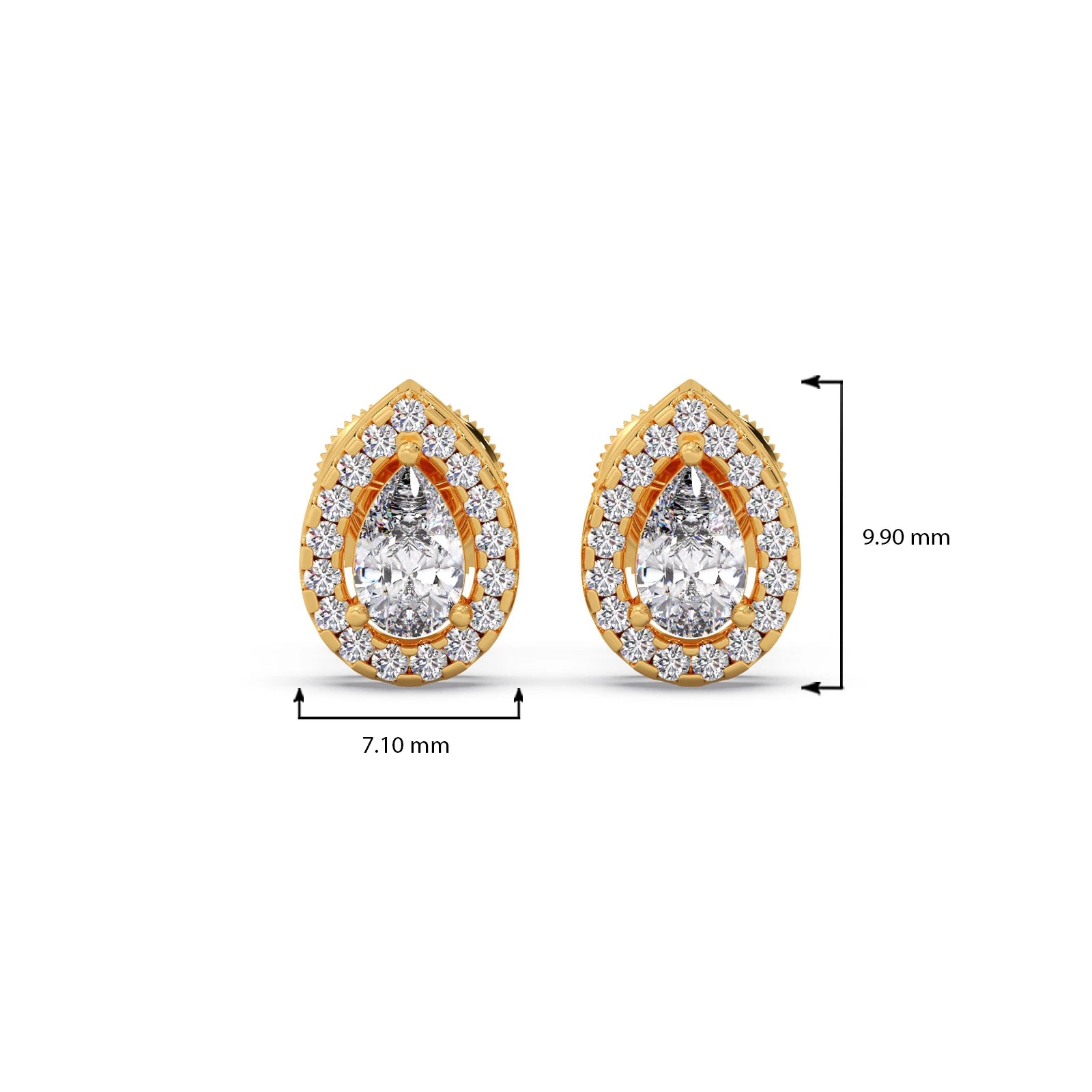 Gold Pear Halo Diamond Earrings