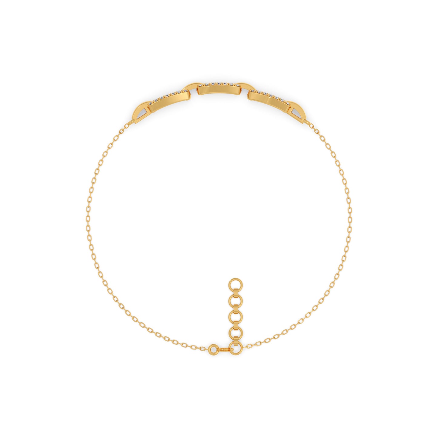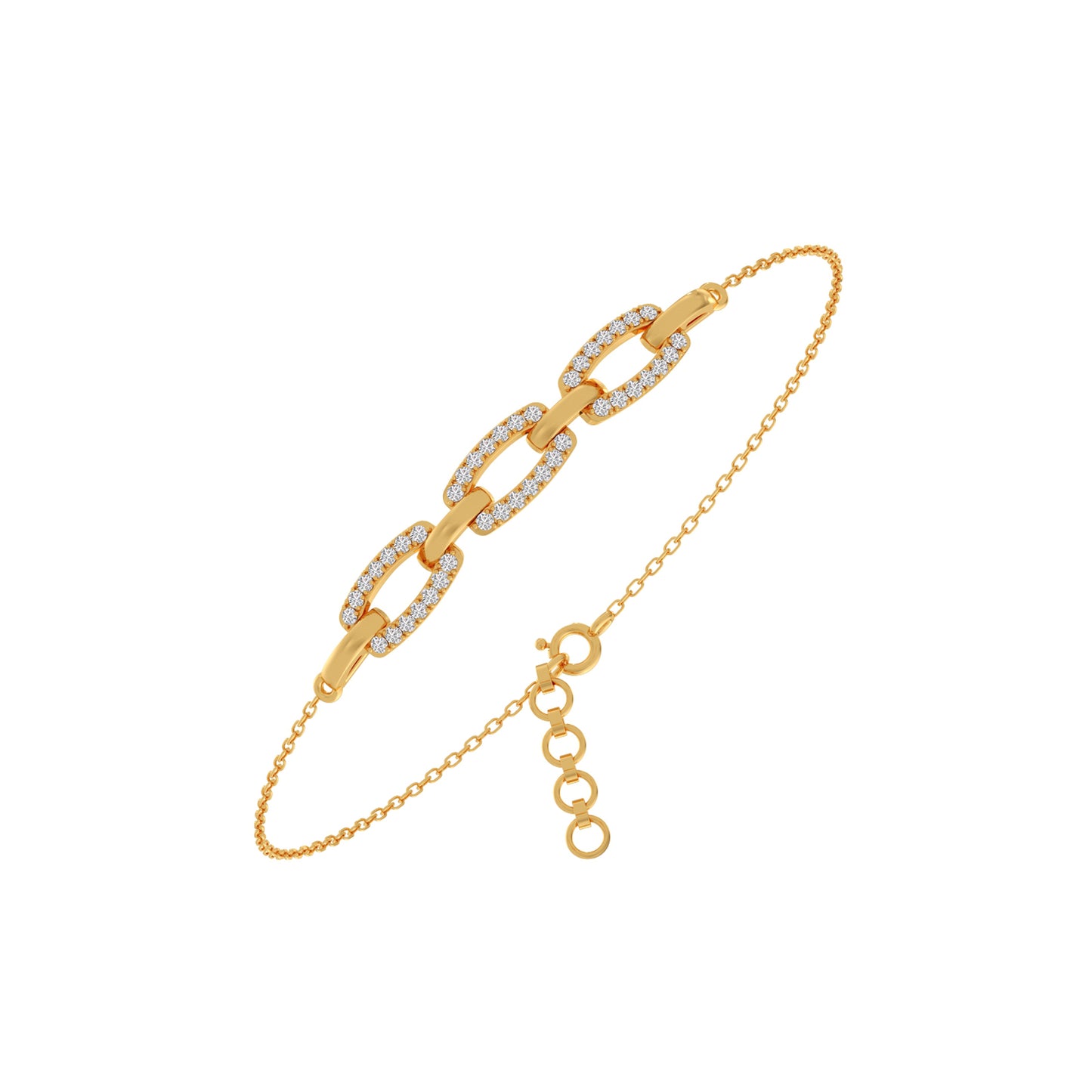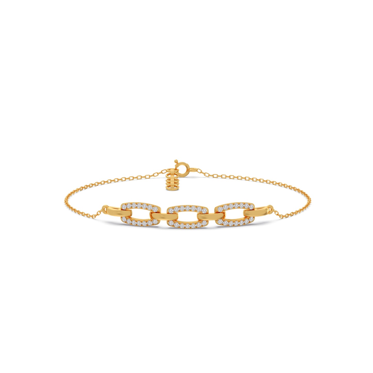 Modern elegance meets maximum sparkle. The Golden Interlink Diamond Bracelet showcases three chunky, diamond-encrusted links anchored on a slender chain. This piece provides bold visual texture and exceptional brilliance, perfect for the contemporary jewelry lover.