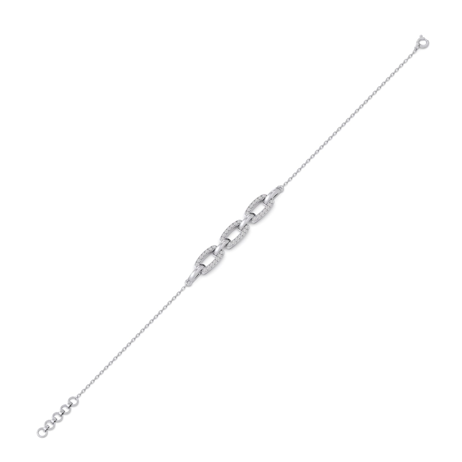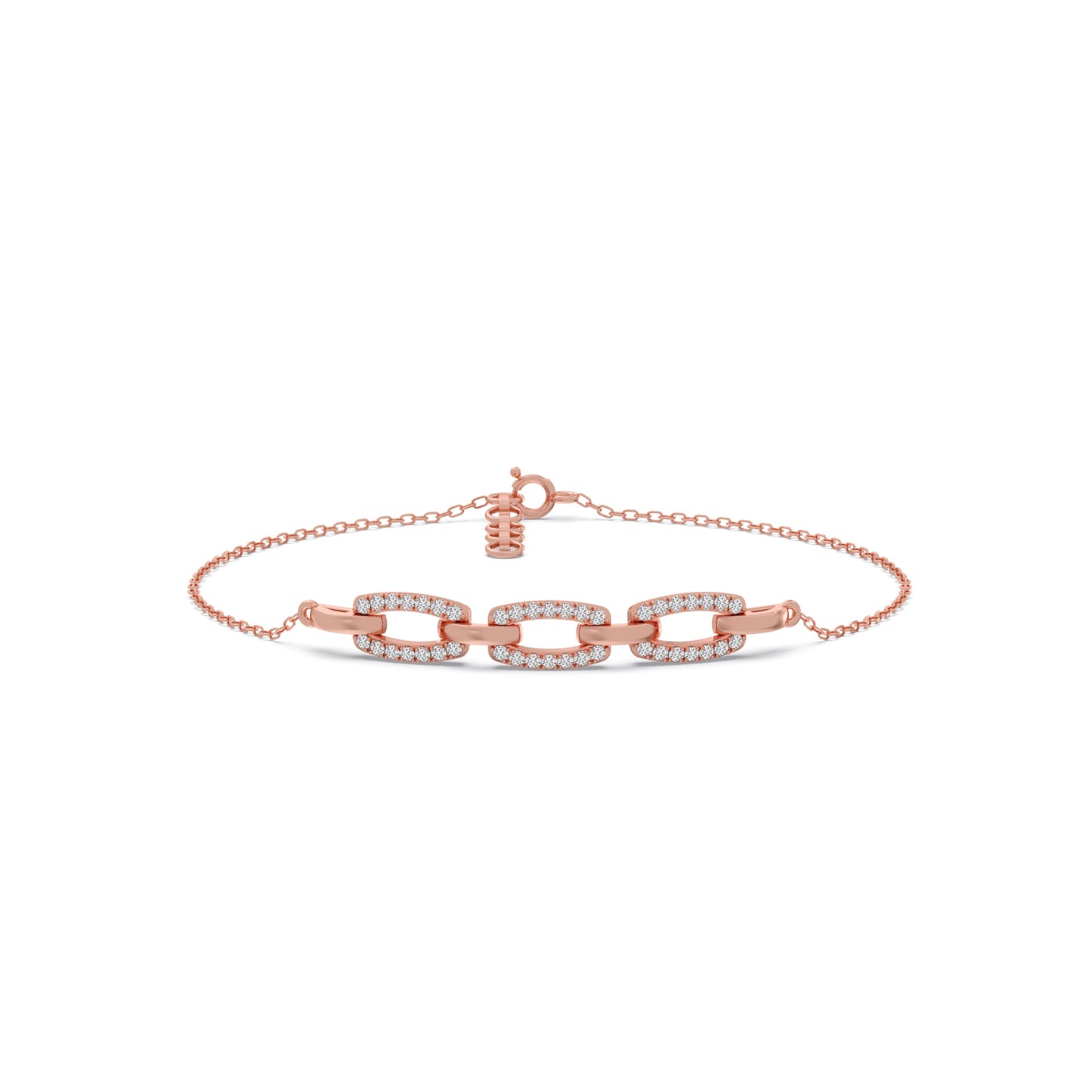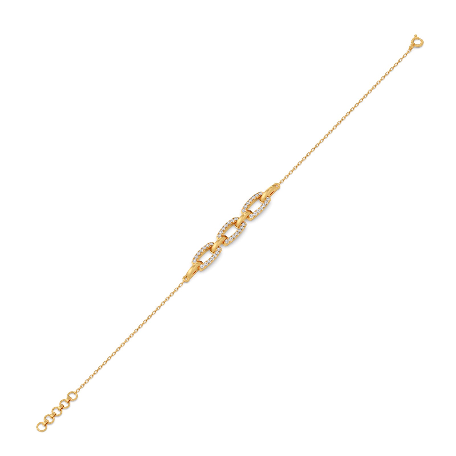 Modern elegance meets maximum sparkle. The Golden Interlink Diamond Bracelet showcases three chunky, diamond-encrusted links anchored on a slender chain. This piece provides bold visual texture and exceptional brilliance, perfect for the contemporary jewelry lover.
