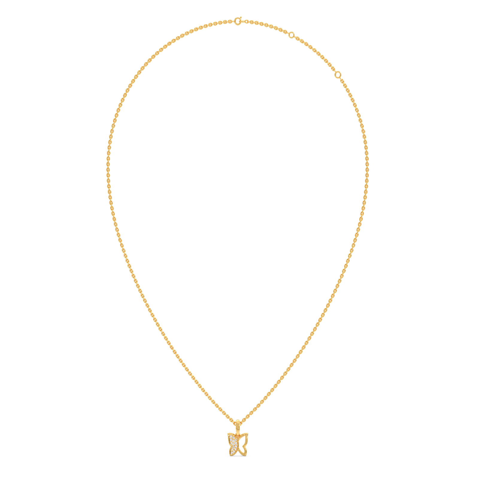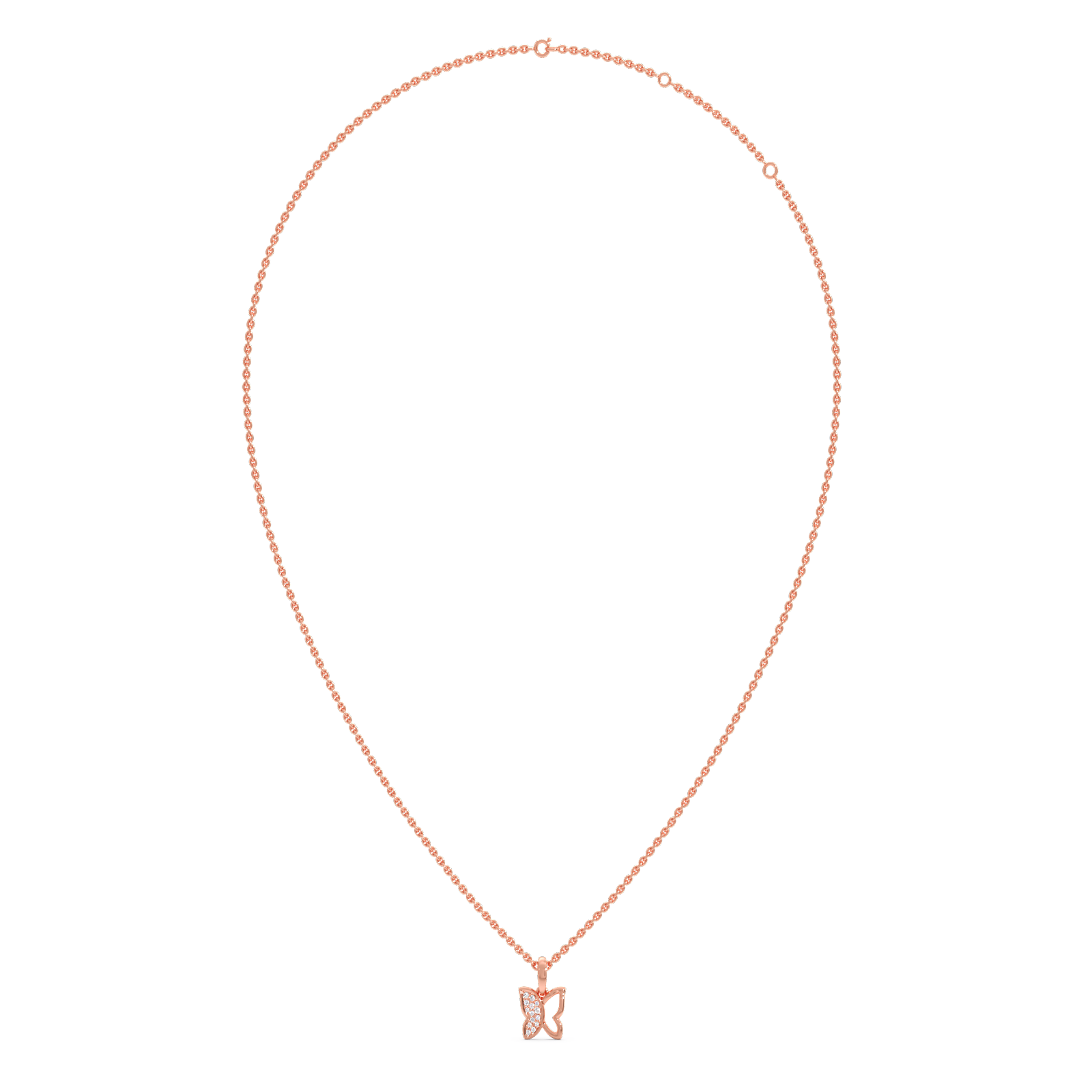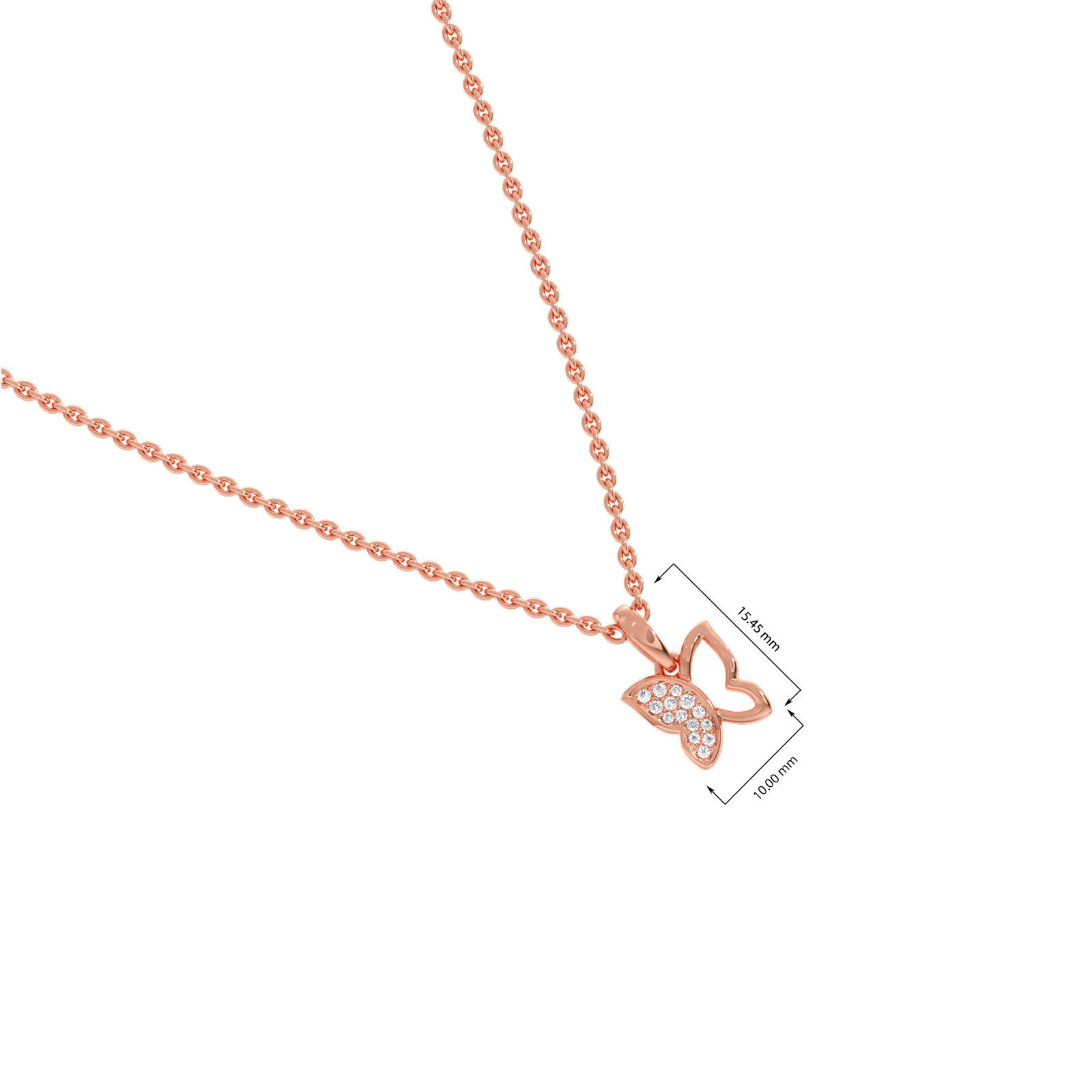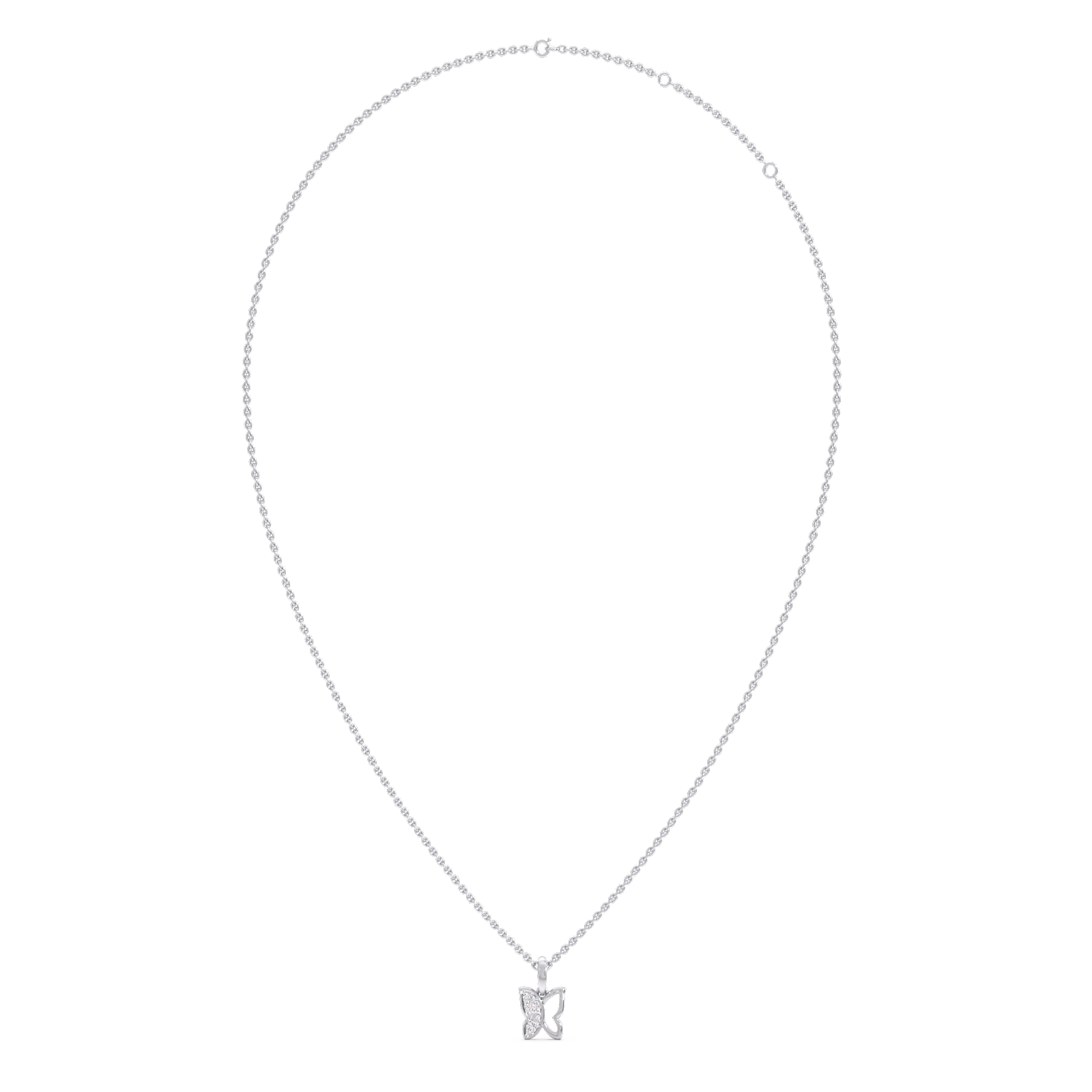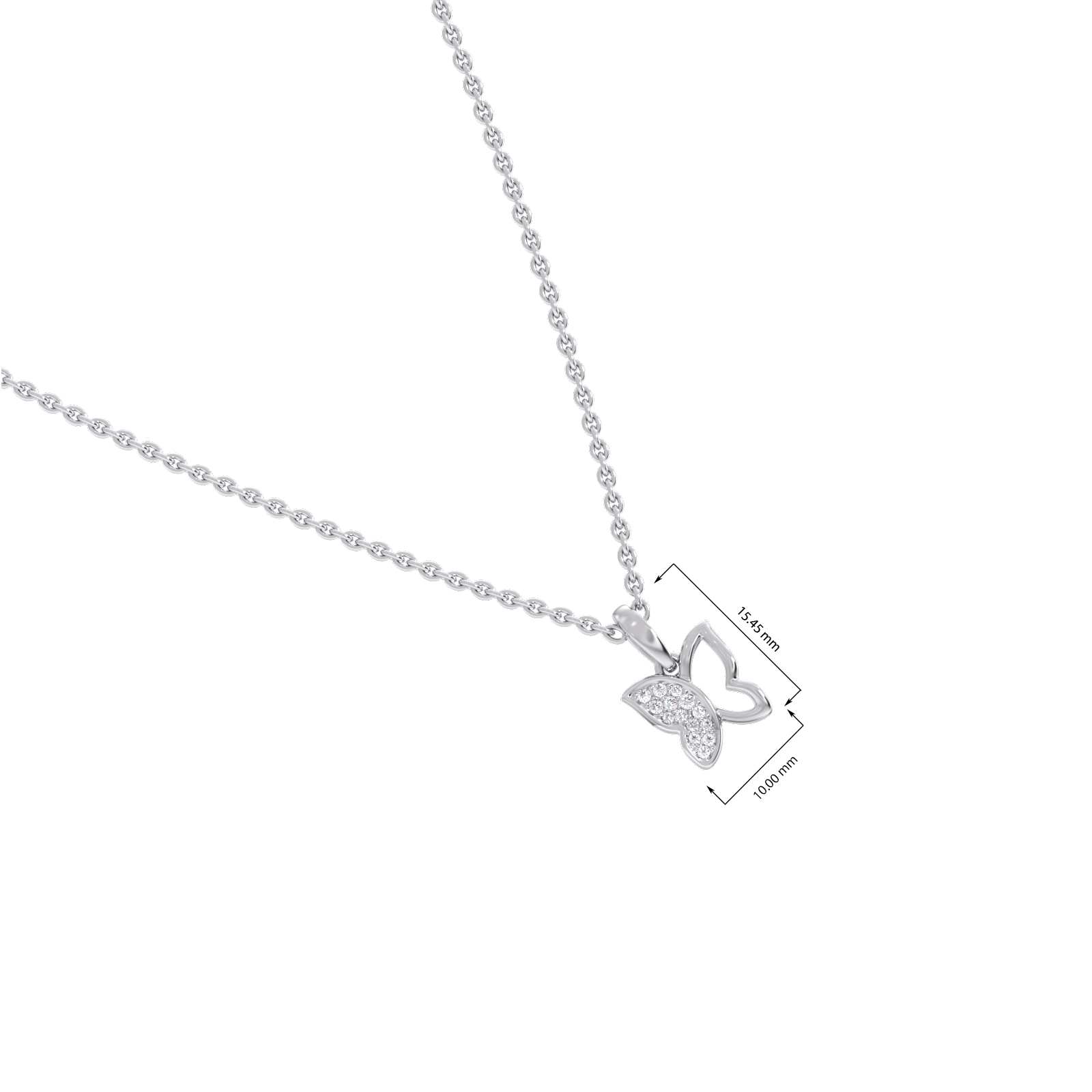 This Half Diamond Butterfly Pendant features a delicate butterfly design with one half adorned in shimmering Round Diamonds and the other in a sleek, open hollow style. Light and elegant, it adds a graceful charm and modern twist to any outfit.