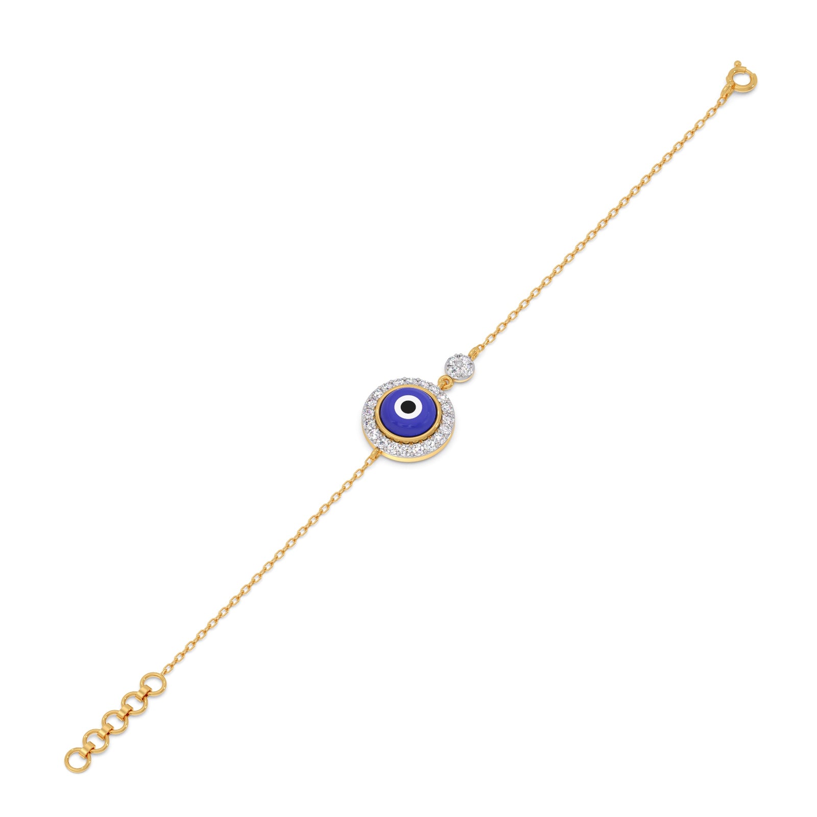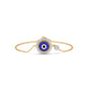 This elegant bracelet features a vibrant blue enamel Evil-Eye bead, set within a gold eye-shaped bezel and halo of brilliant round-cut diamonds. This bracelet is finished with a classic spring ring clasp, ensuring a secure and adjustable fit for everyday wear.