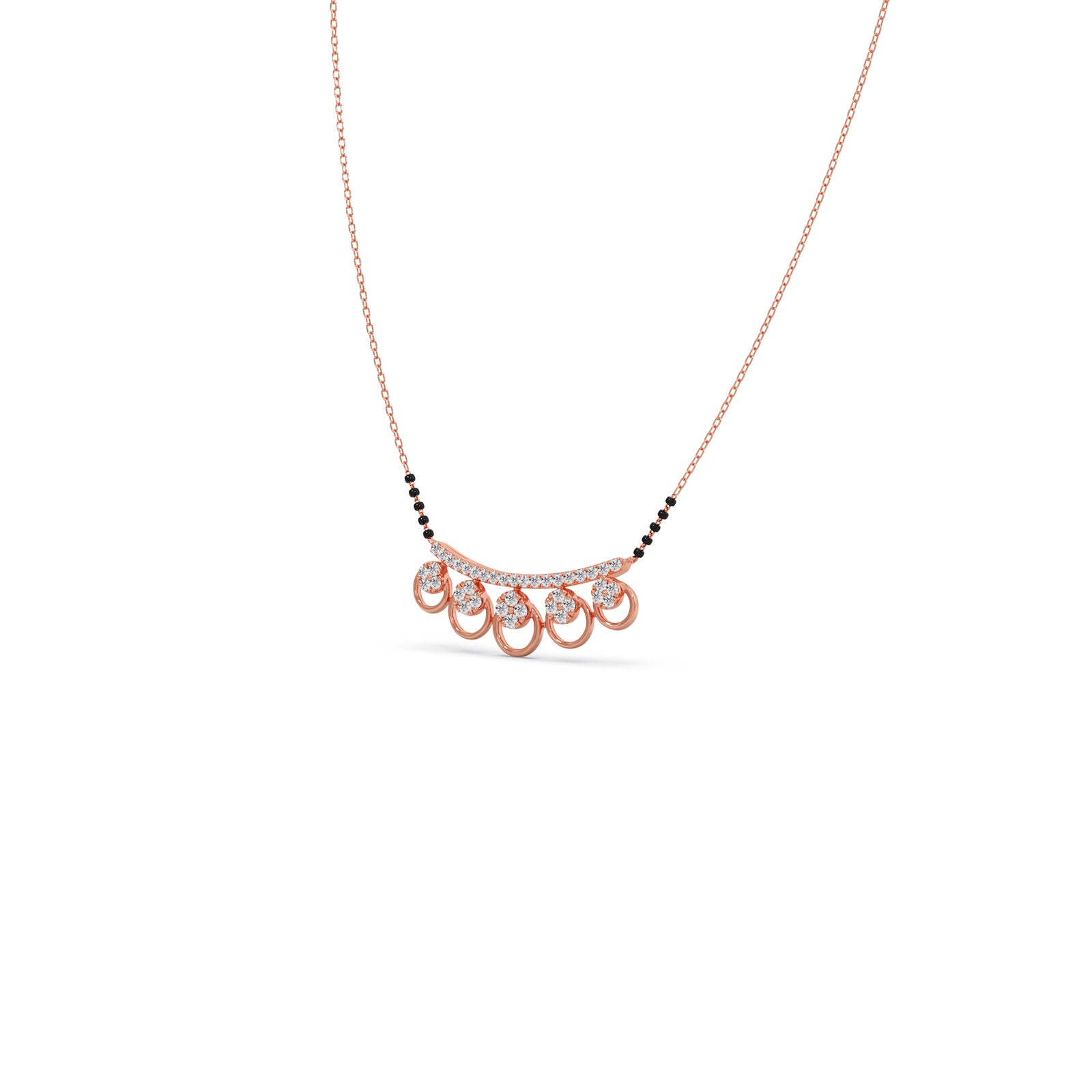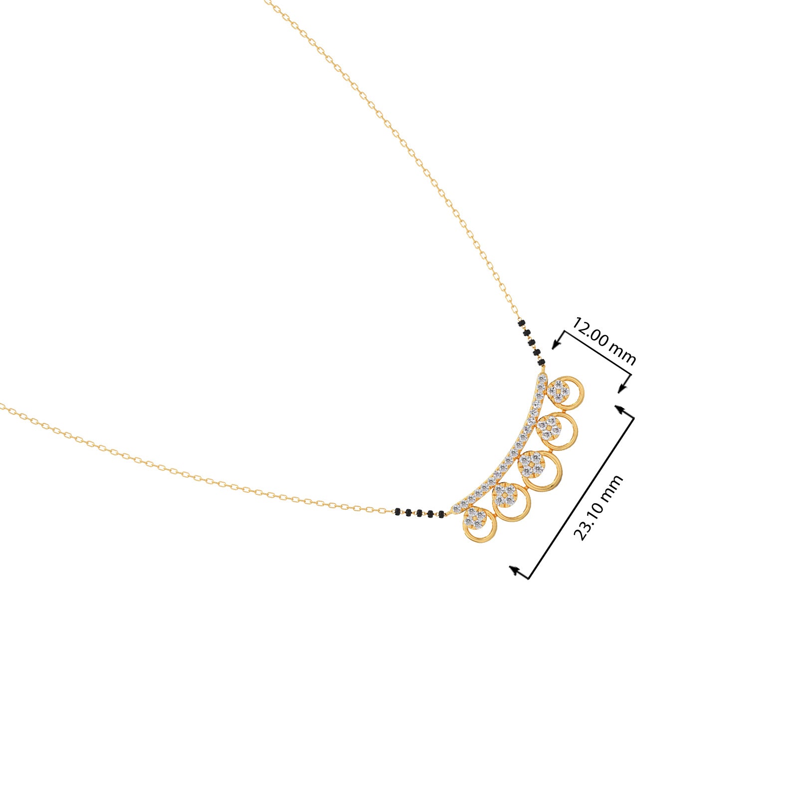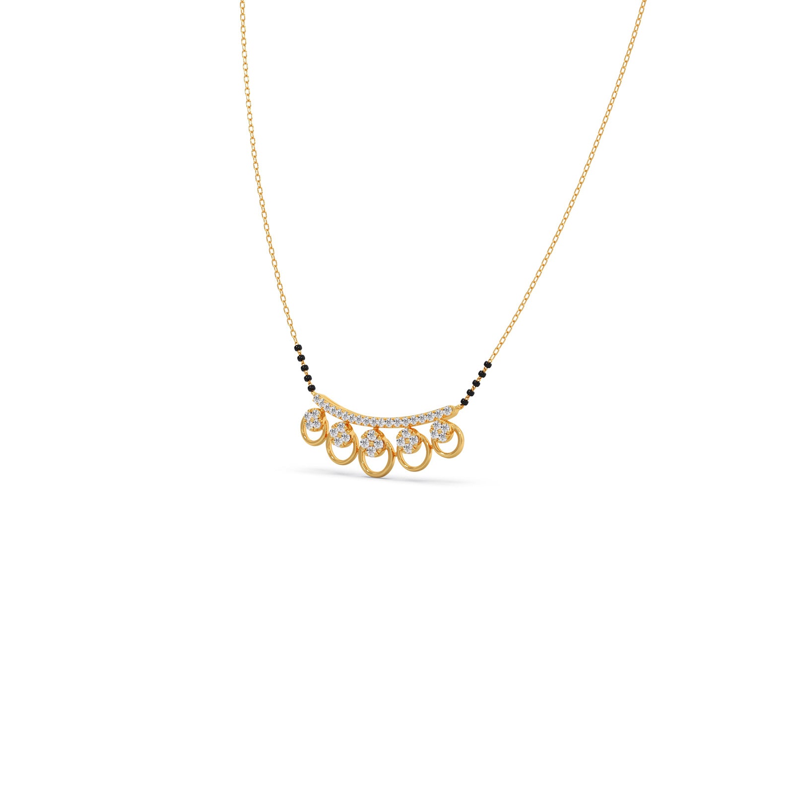 The Halo Flow Tanmaniya is a modern interpretation of tradition, featuring a delicate line of black beads leading to a crescent of graduating metal circles. Each circle cradles shimmering round diamonds, creating a graceful flow of light and form-minimal yet striking, designed for everyday elegance and timeless symbolism.