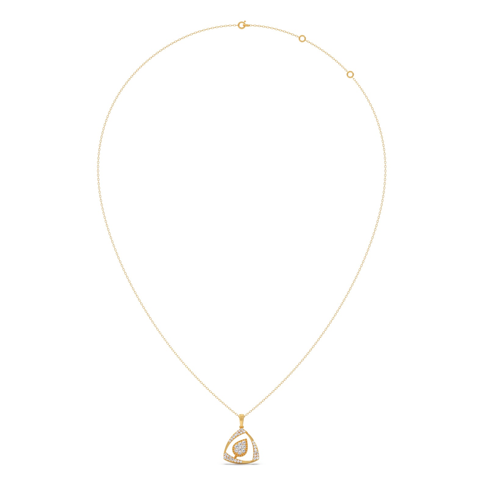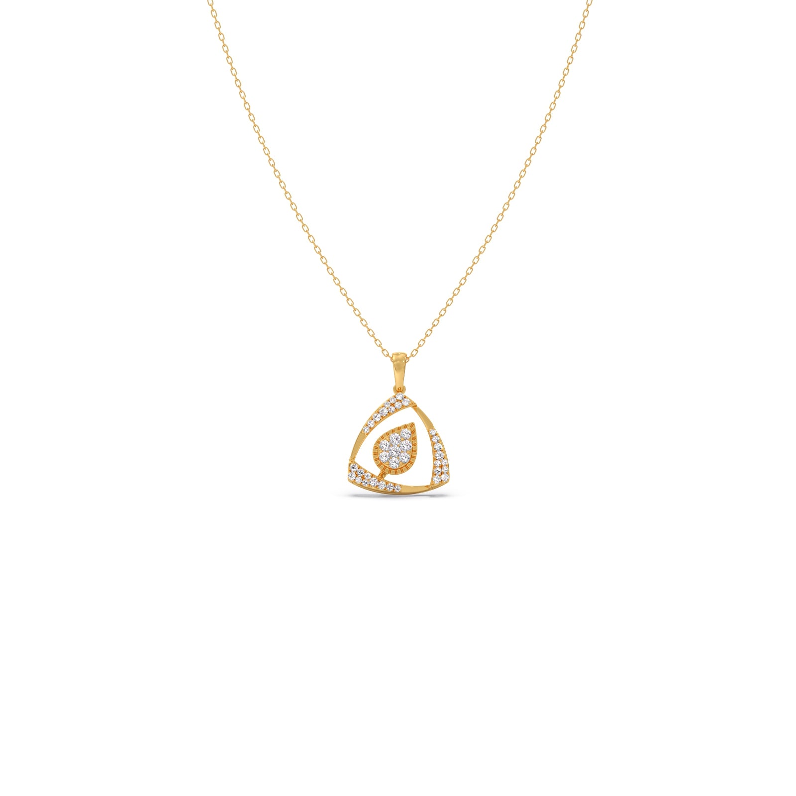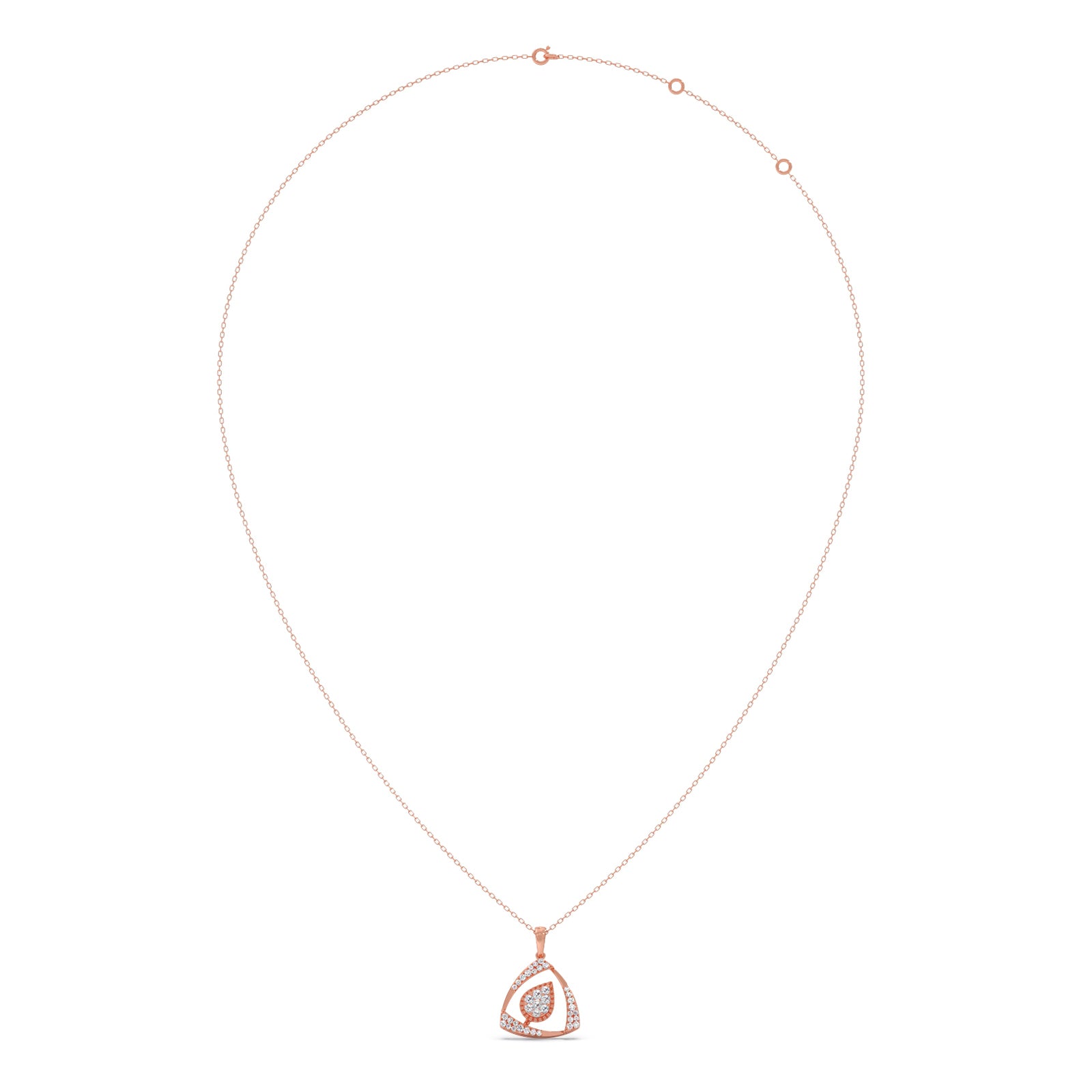The Halo Petal Pendant Necklace is a modern yet elegant design. A triangle-shaped border holds a delicate petal form inside, both set with sparkling round diamonds. The mix of clean lines and soft curves makes it a graceful piece that adds timeless charm to any look.