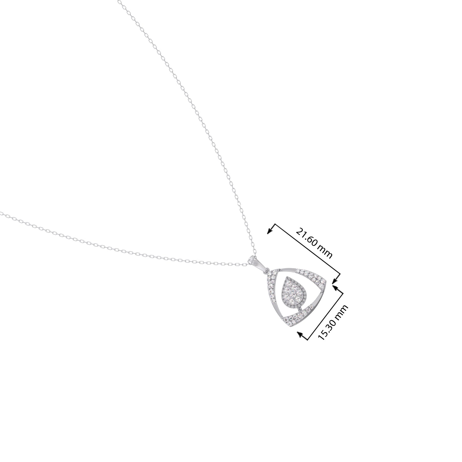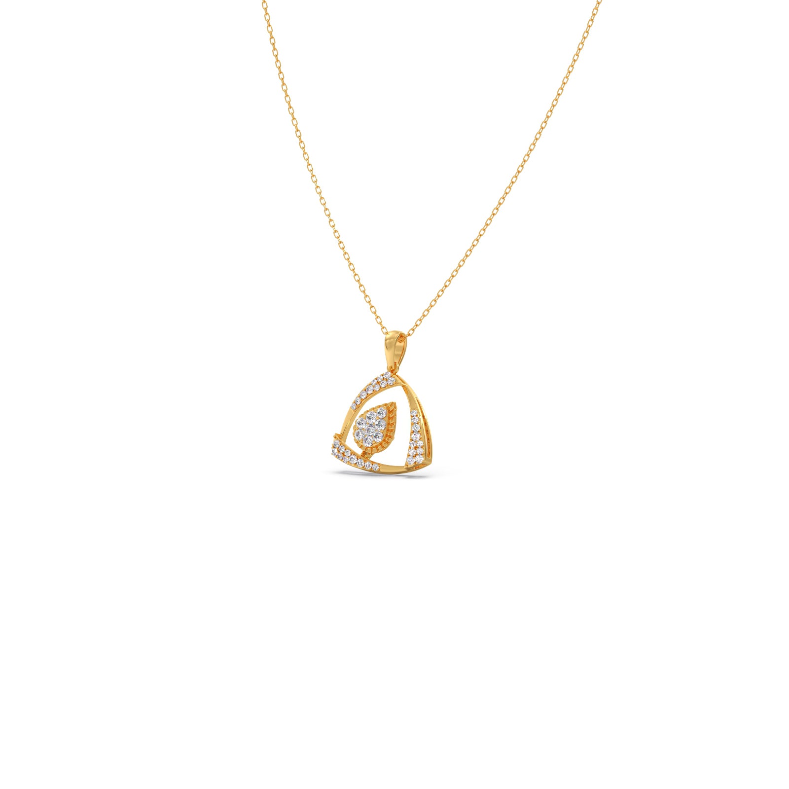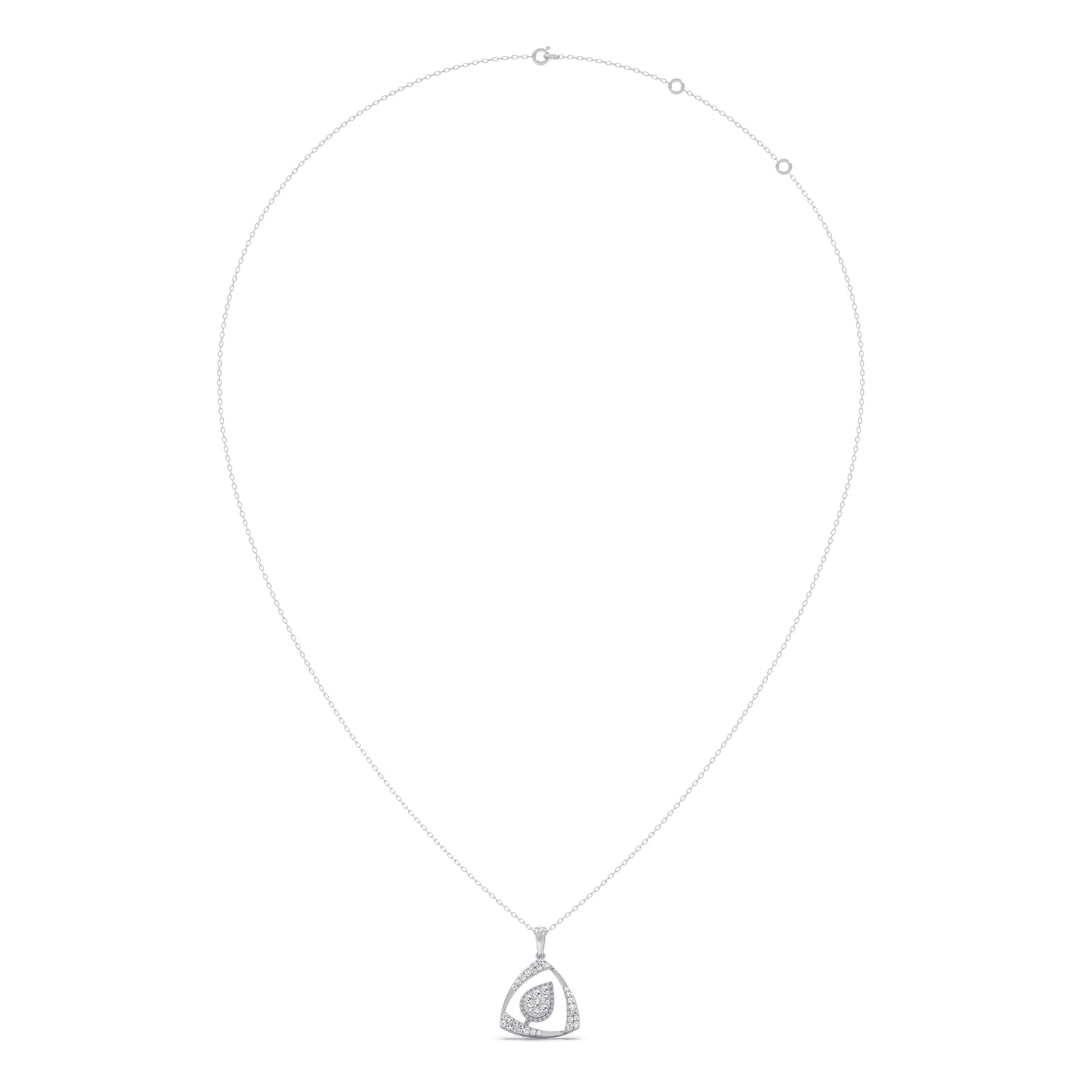 The Halo Petal Pendant Necklace is a modern yet elegant design. A triangle-shaped border holds a delicate petal form inside, both set with sparkling round diamonds. The mix of clean lines and soft curves makes it a graceful piece that adds timeless charm to any look.