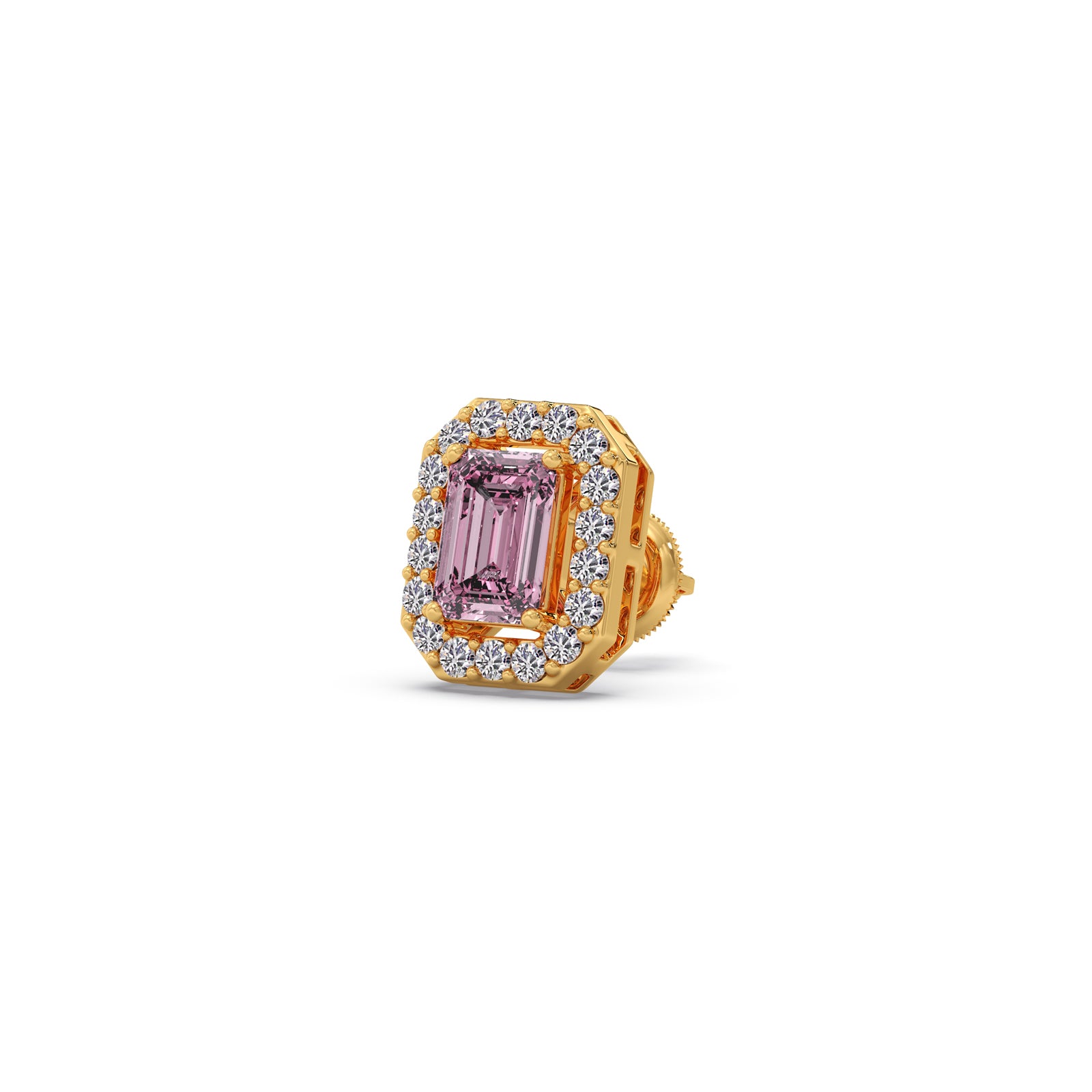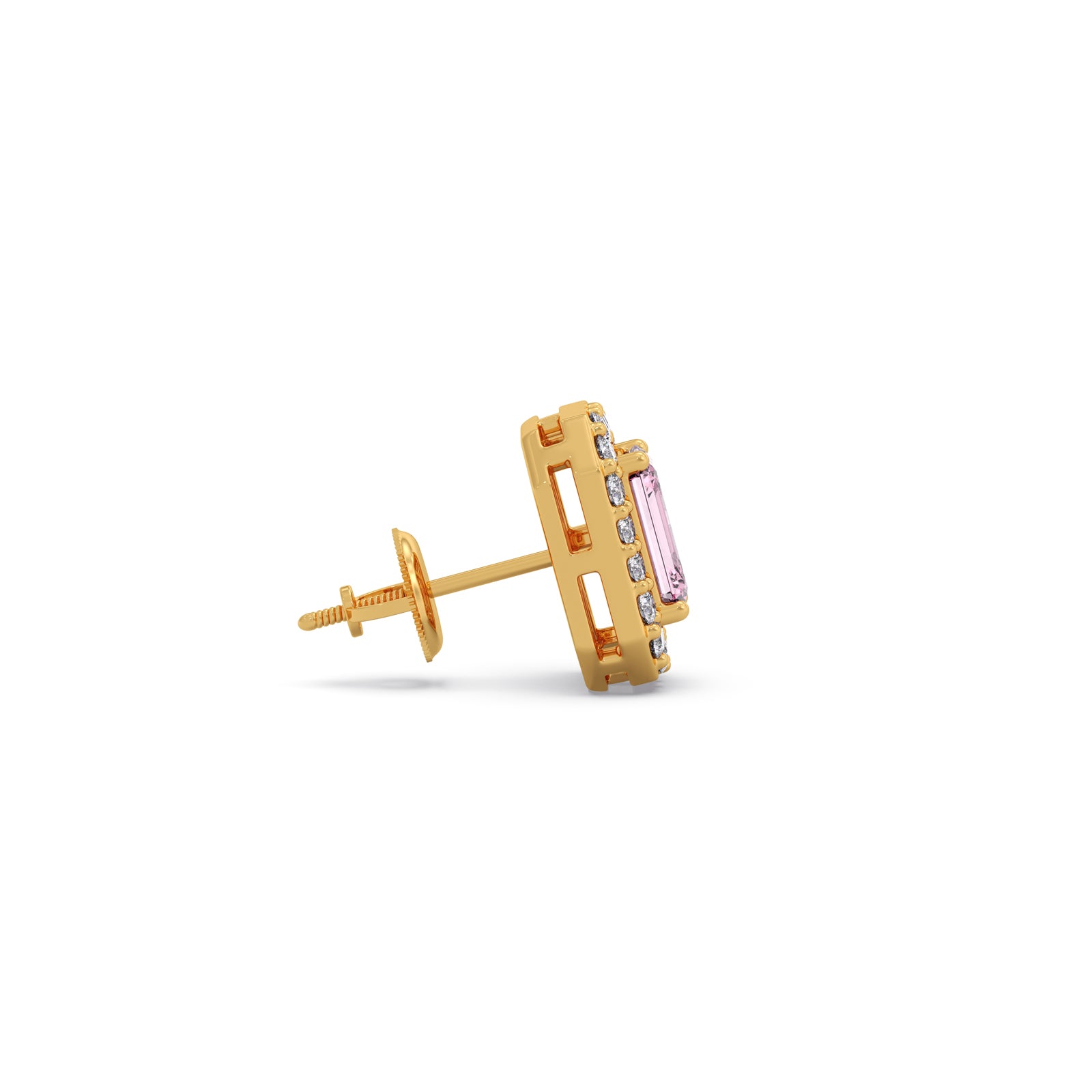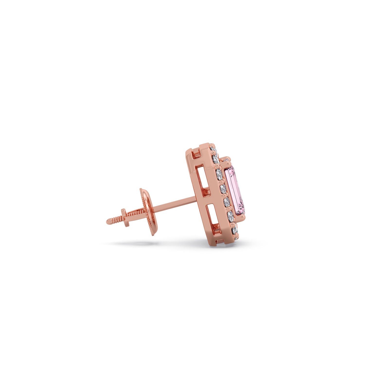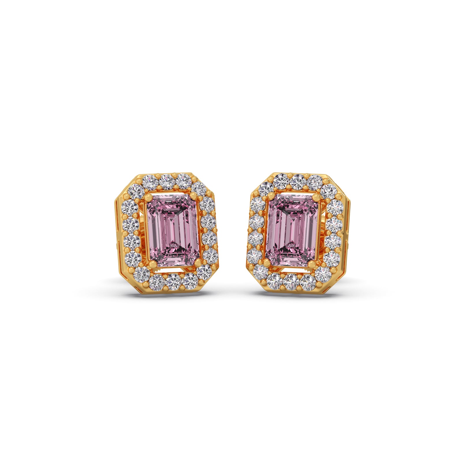 Luminous soft brilliance, the Halo Pink Emerald Stud Earrings feature Pink Emerald-cut centers encircled by a delicate halo of Round Diamonds. The structured silhouette meets feminine sparkle, creating a refined yet romantic look—perfect for adding a touch of color and elegance to any occasion.