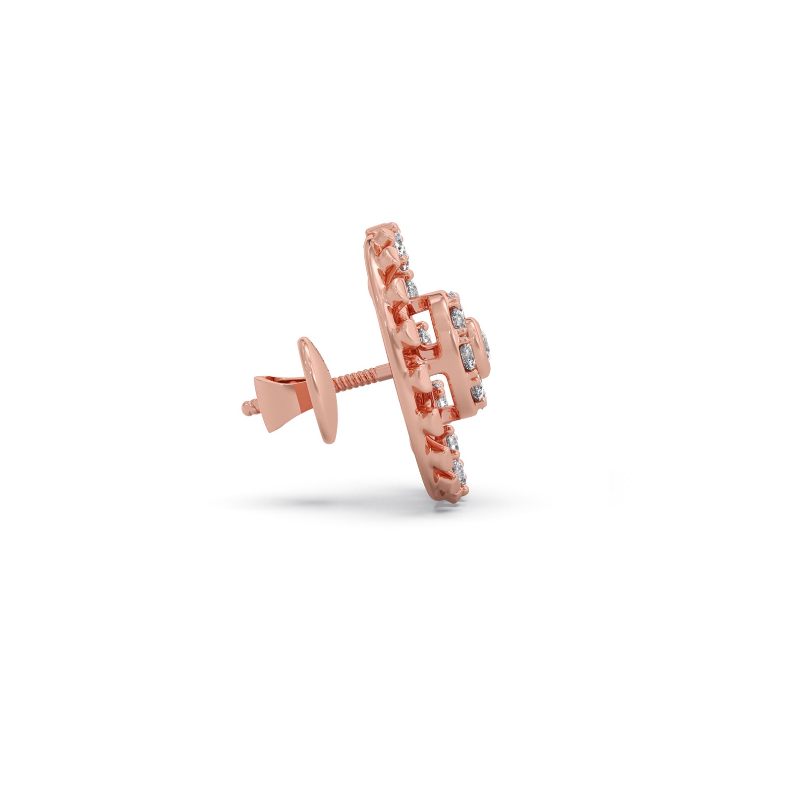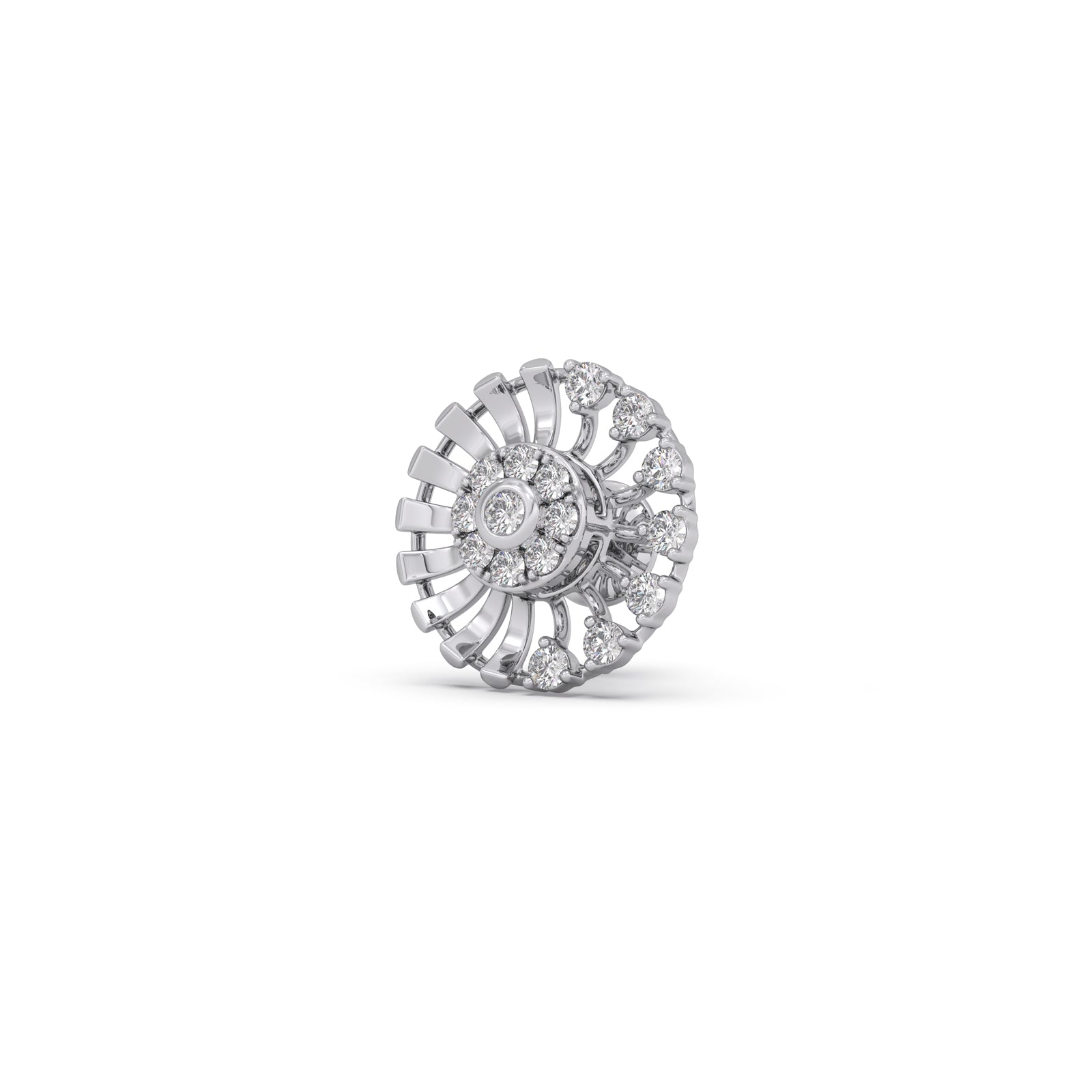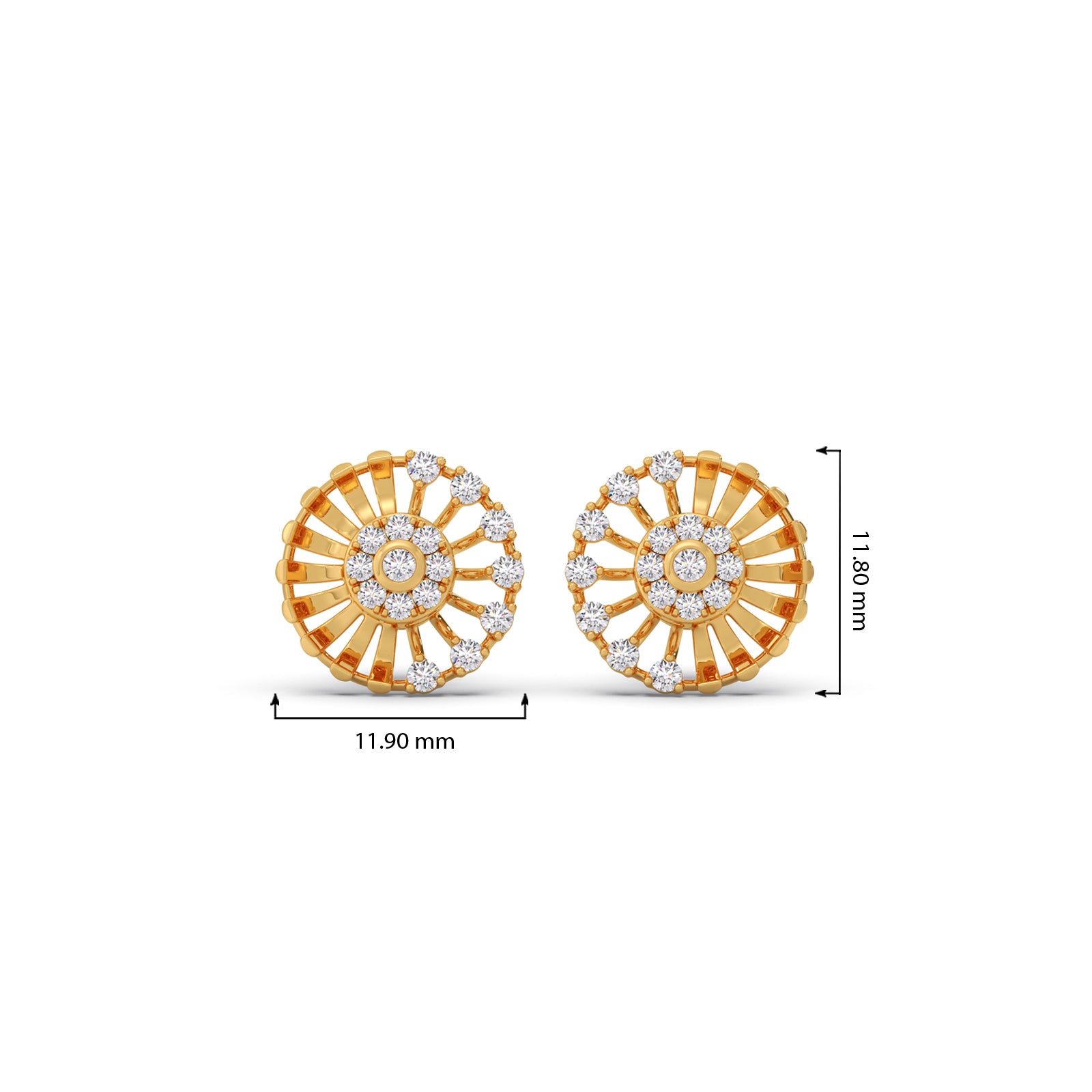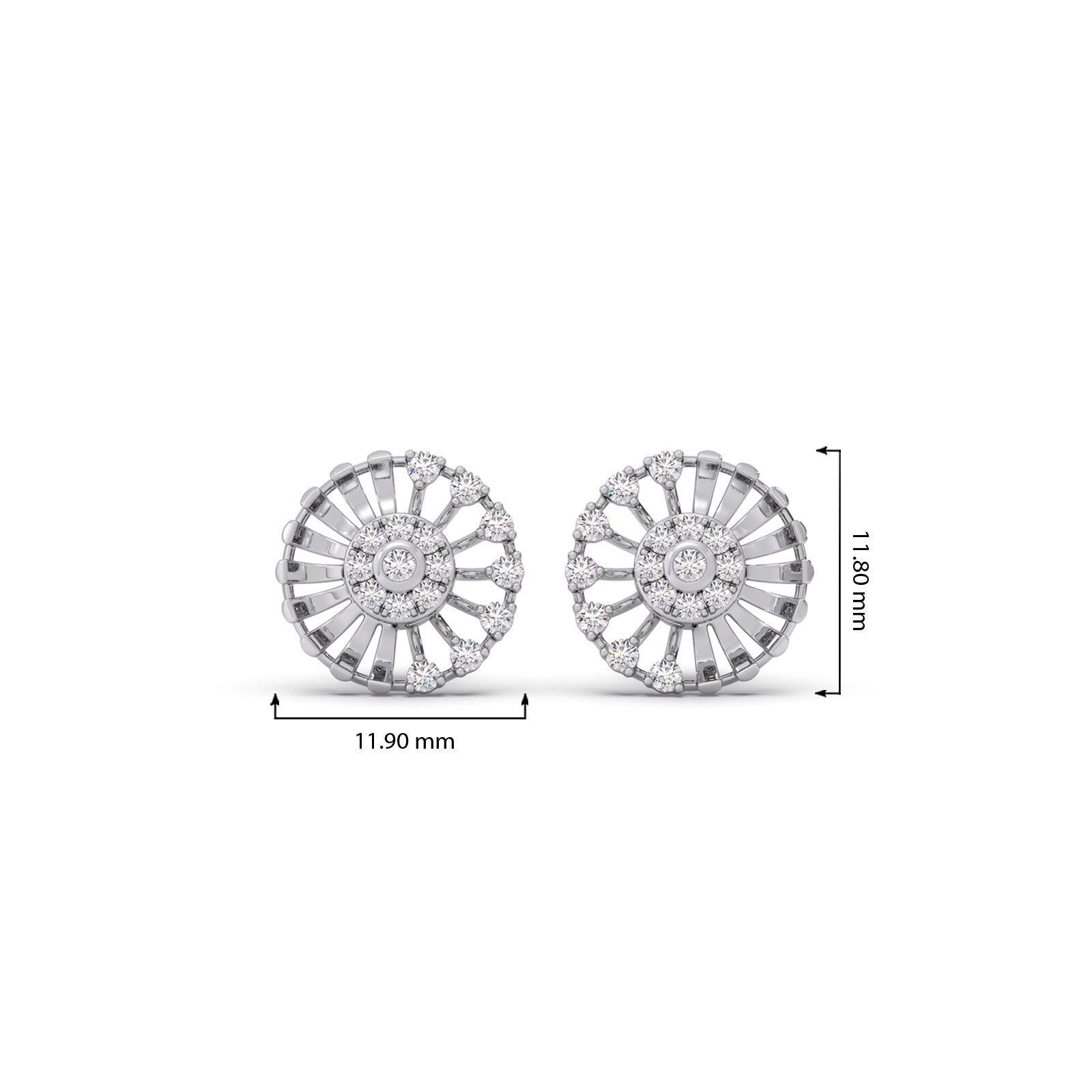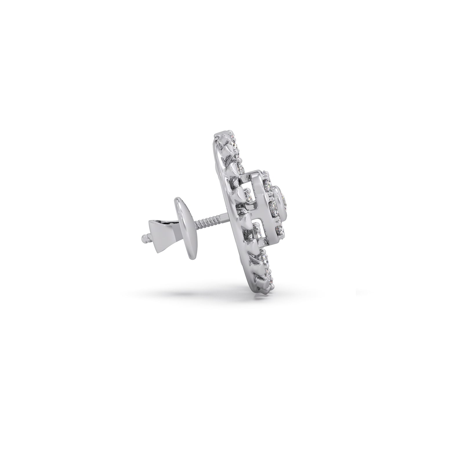 The Halora Diamond Stud Earrings feature a harmonious circular design with a central cluster of Round Diamonds, framed by contrasting textures—one side adorned with pavé-set Round Diamonds, the other with intricate metalwork. A refined balance of brilliance and detail, crafted for timeless elegance.