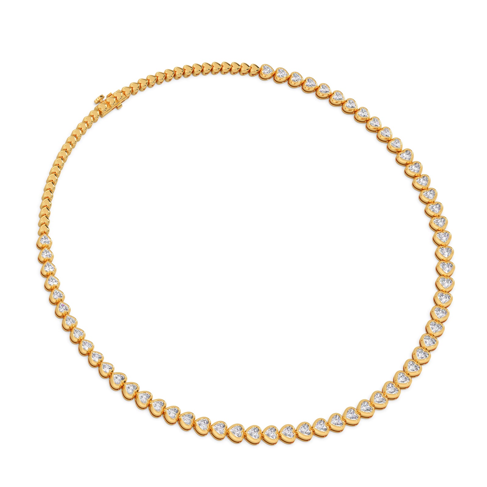 Crafted with intention and emotion, this Heart Shaped Diamond Tennis Necklace features 58 Lucira Grown Diamonds totaling 13.17 ct.—each one a symbol of love, shaped with precision. The delicate rhythm of heart-cut diamonds creates a seamless line of light that rests gracefully against the skin. Designed to be treasured, worn, and passed on, this piece celebrates the beauty of connection in its purest form.