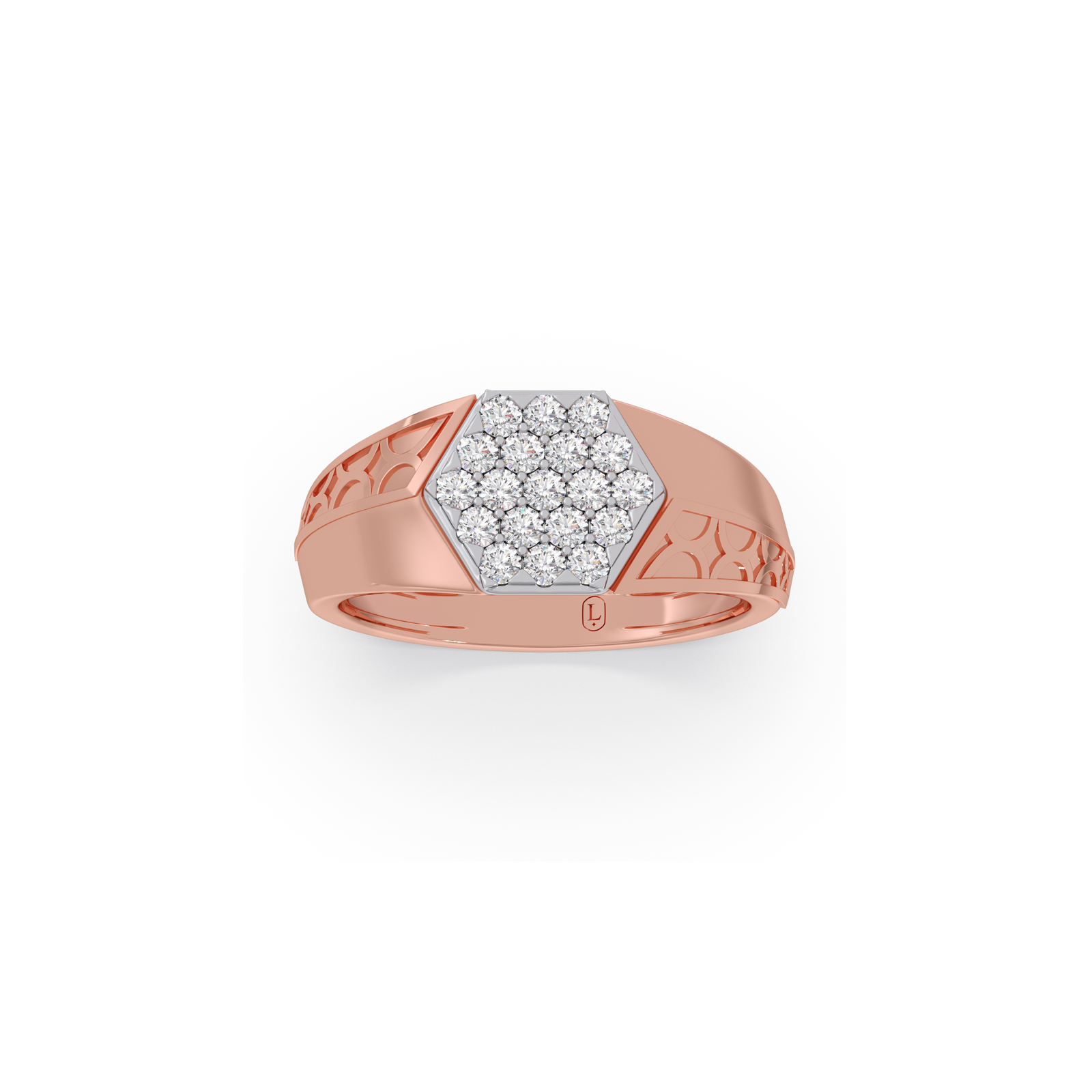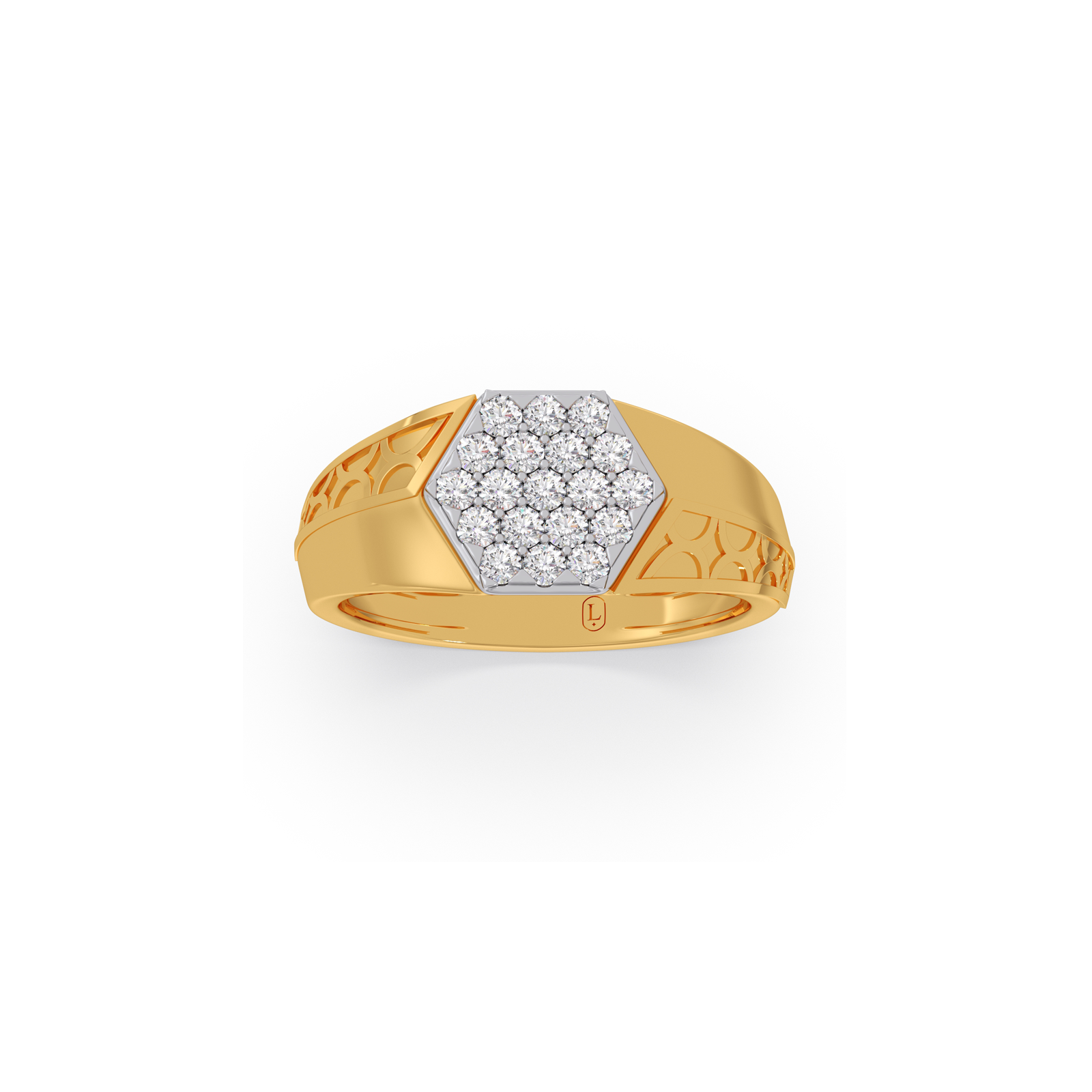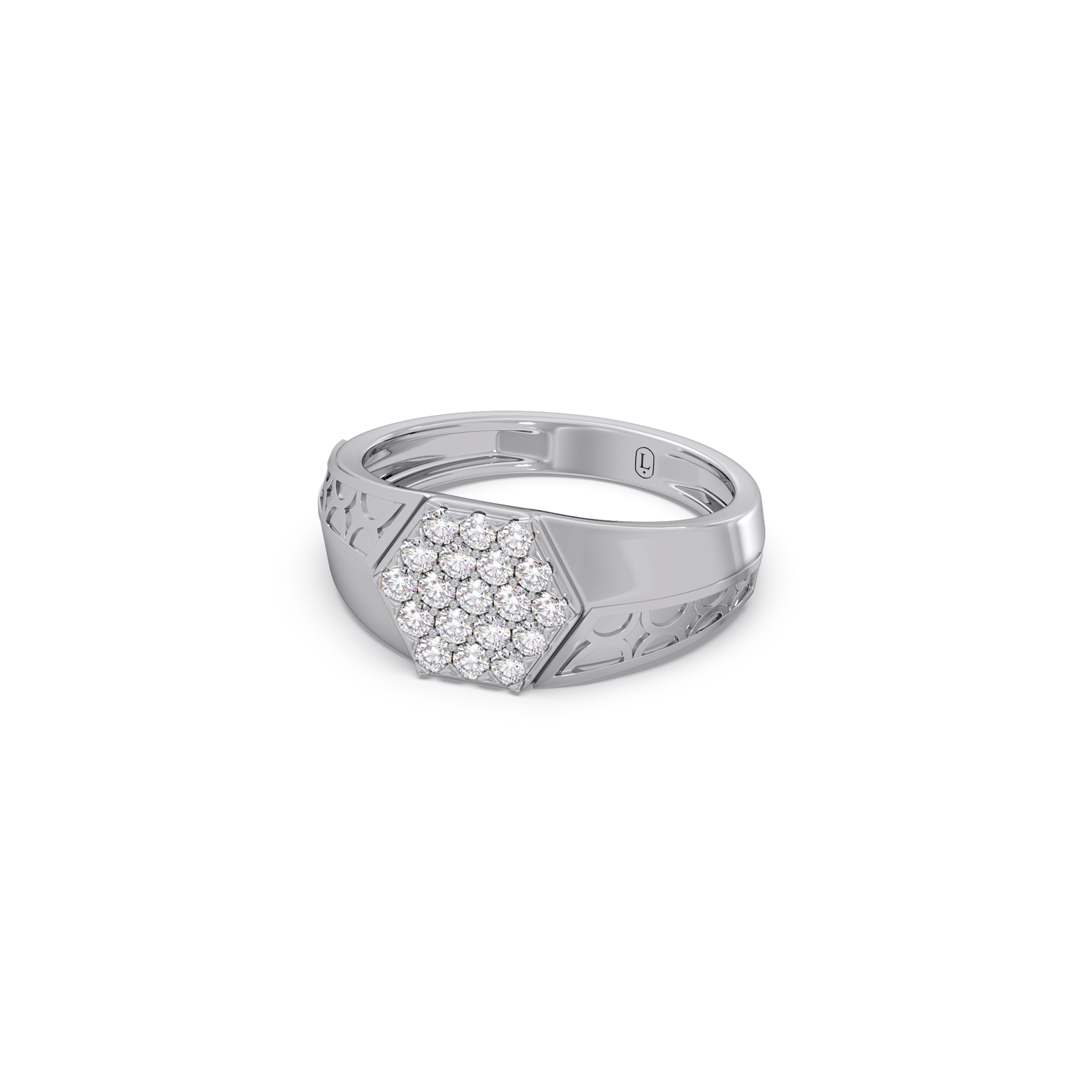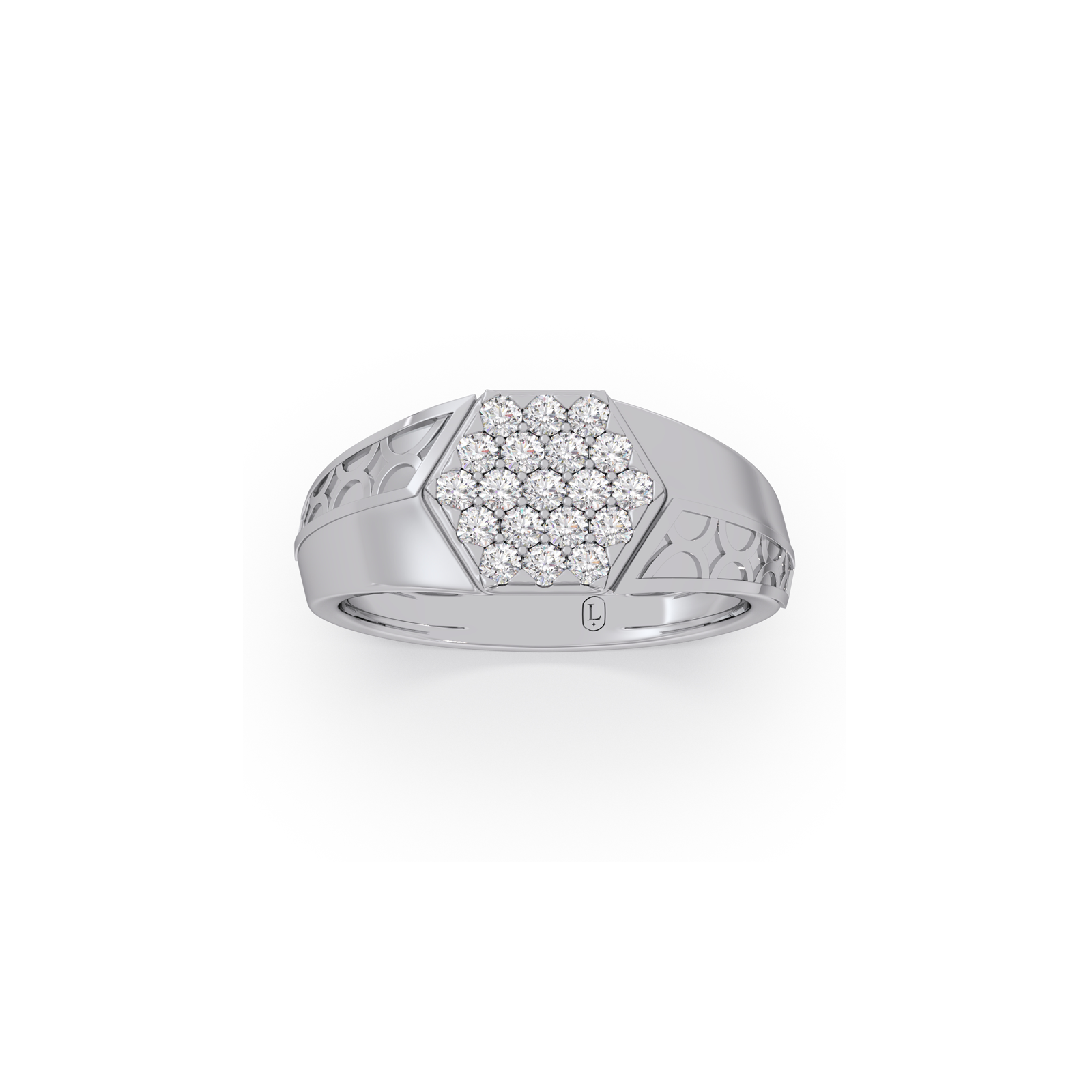Heritage Hexagon Diamond Men’s Ring features a bold hexagonal silhouette accented with diamonds, blending classic craftsmanship with modern strength to create a refined statement of legacy and confidence.