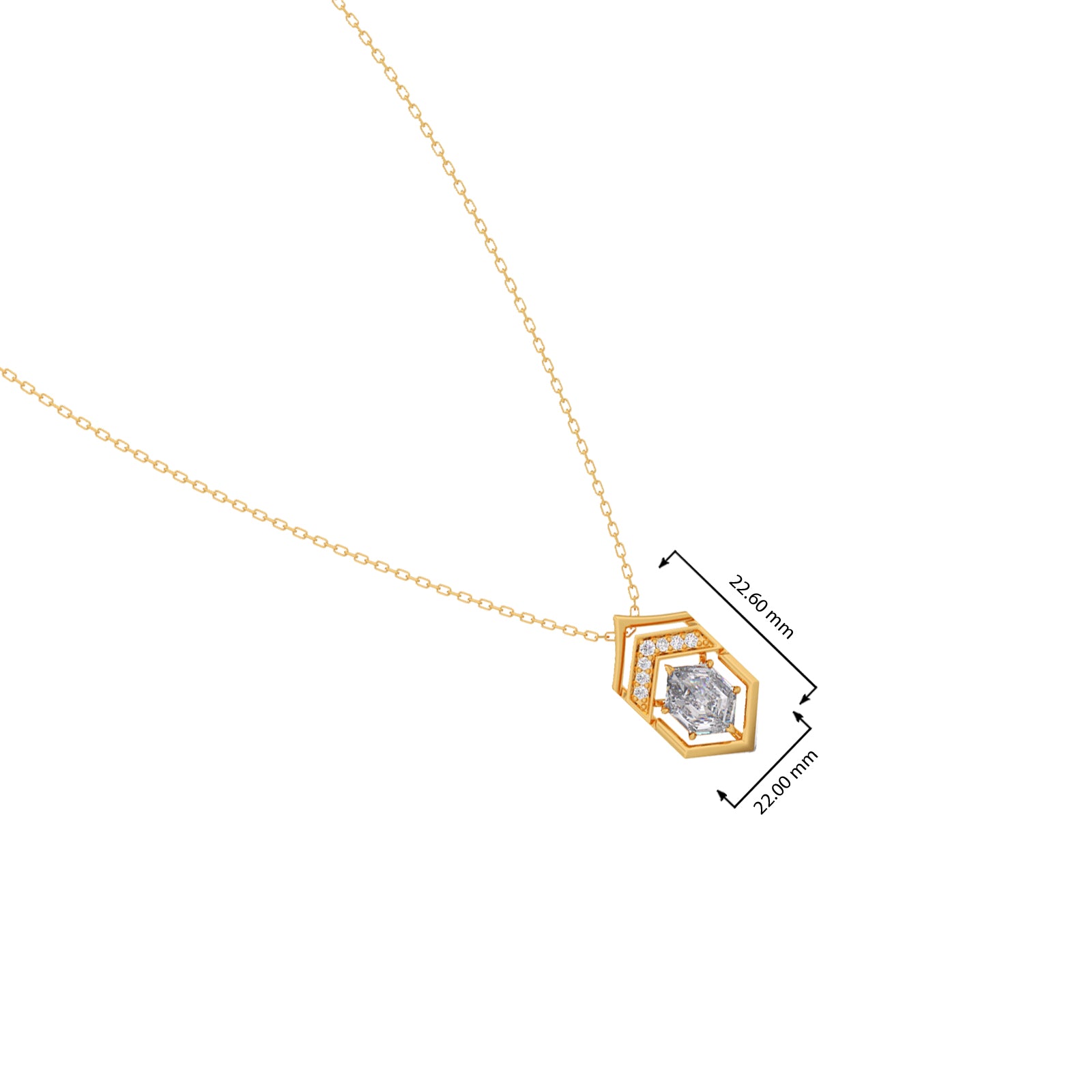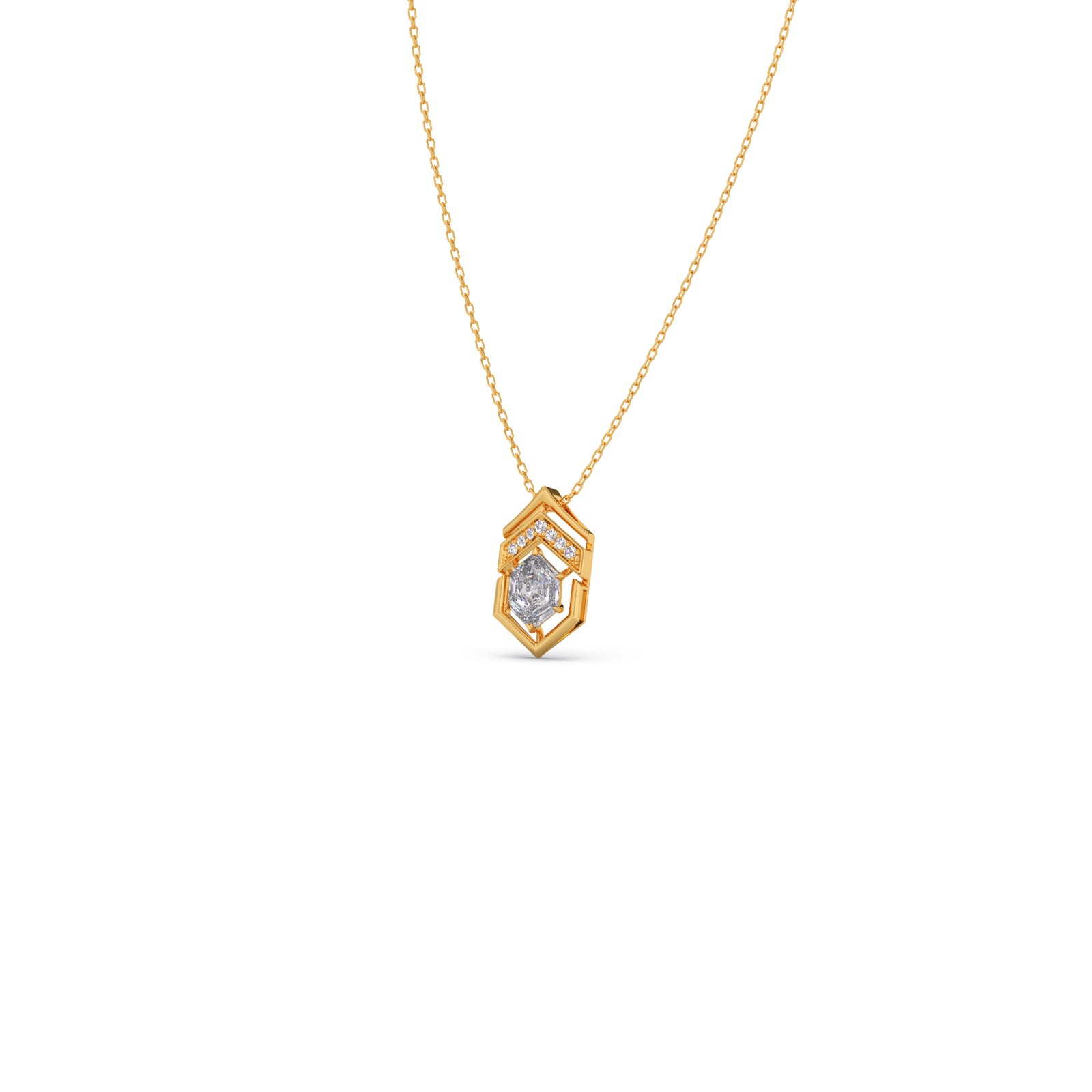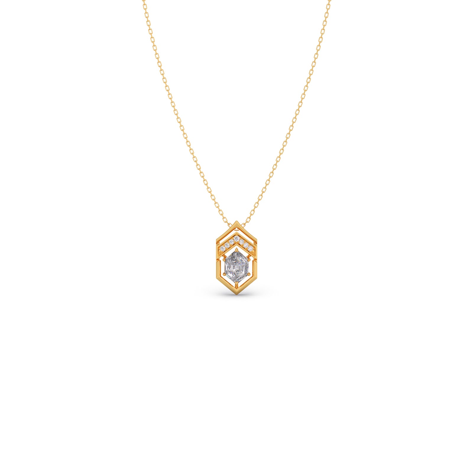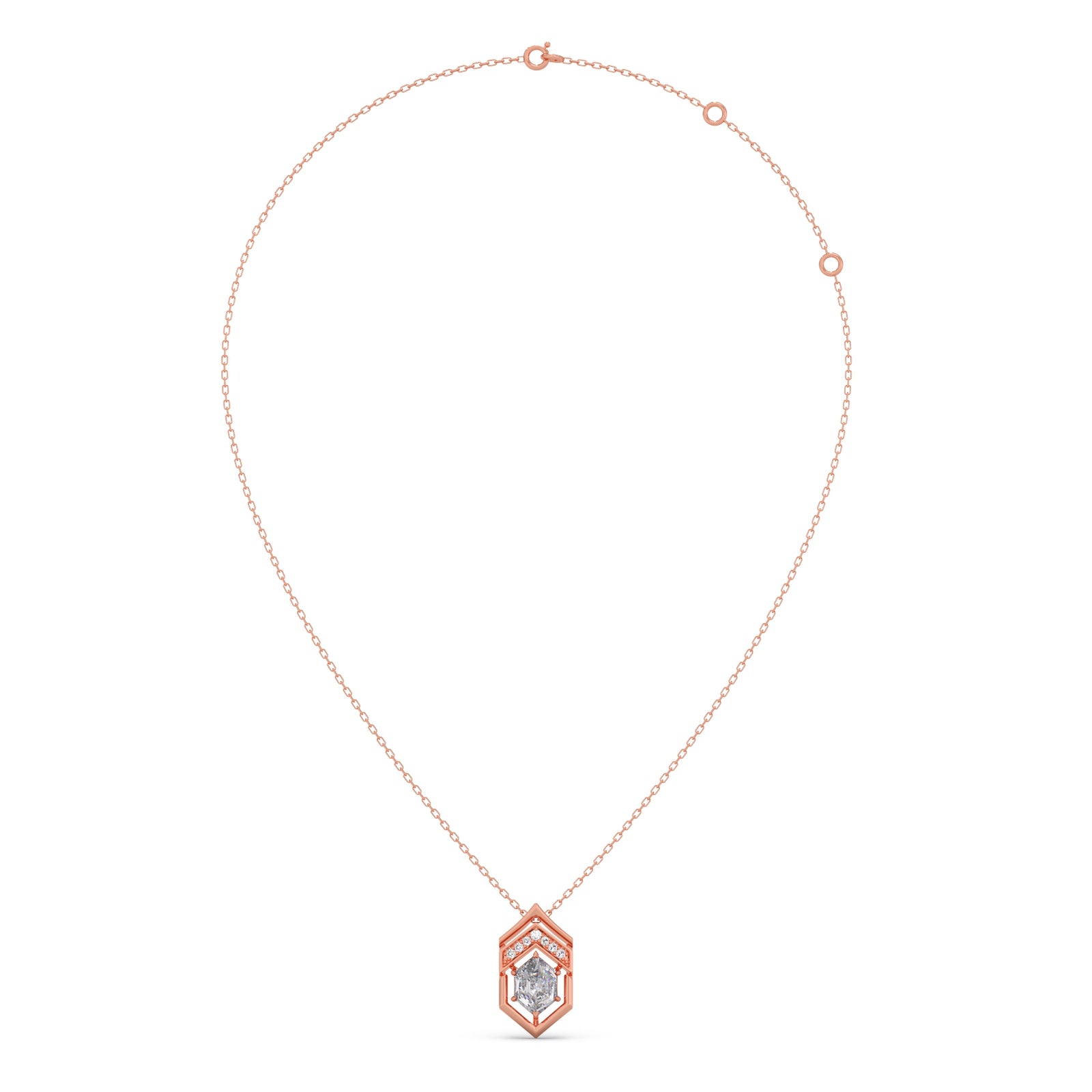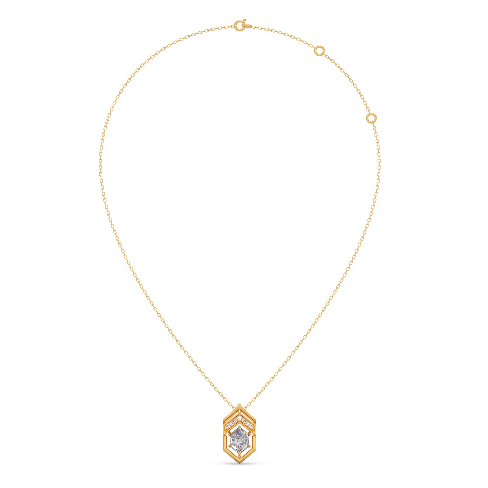 A Hexa Solitaire anchors this upward-pointing design, where Round Diamonds rise in a gradient from small to large—like an arrow in motion. Finished with the signature 0.008 ct. Round Diamond in a bezel, this pendant is a symbol of rising through transformation with clarity and purpose.
