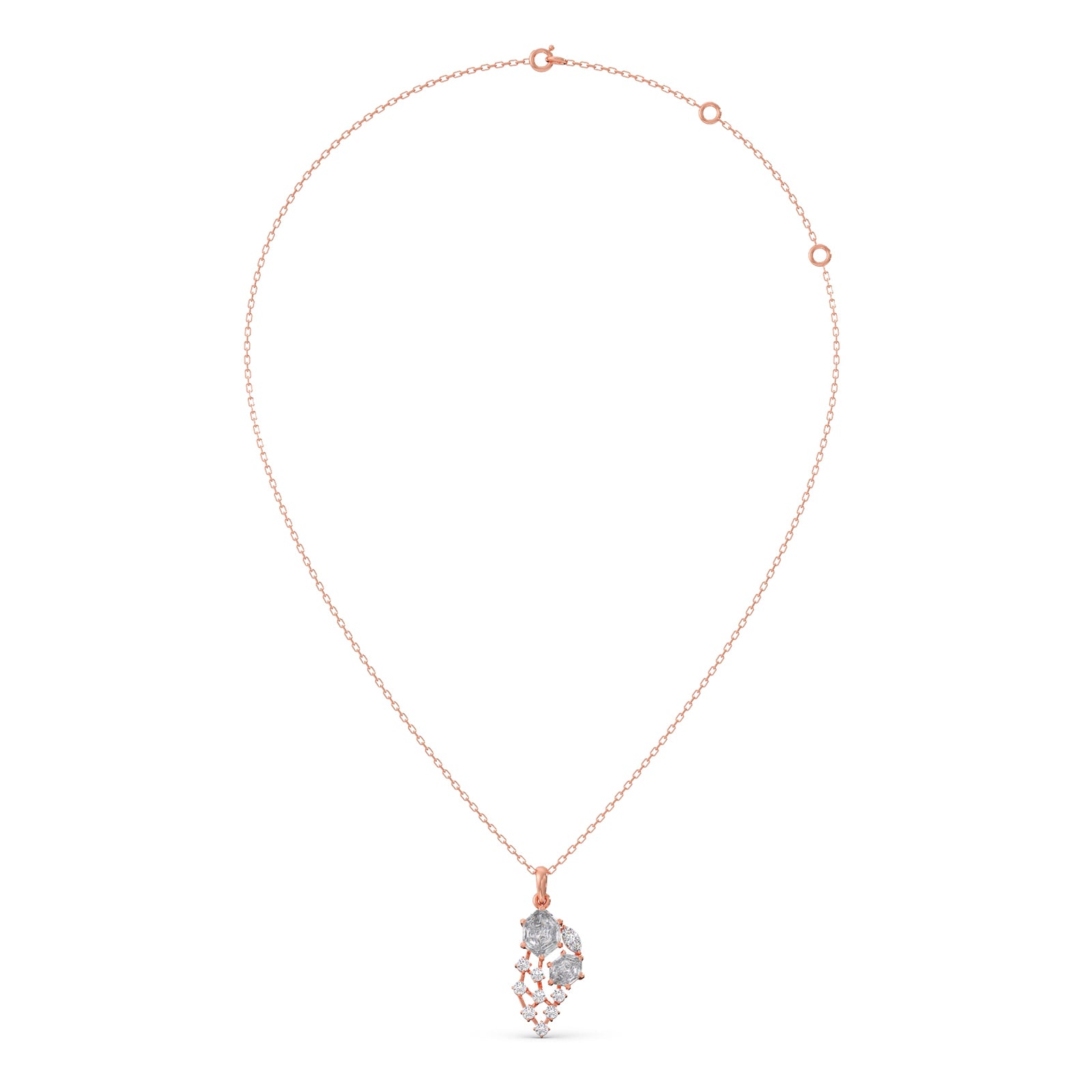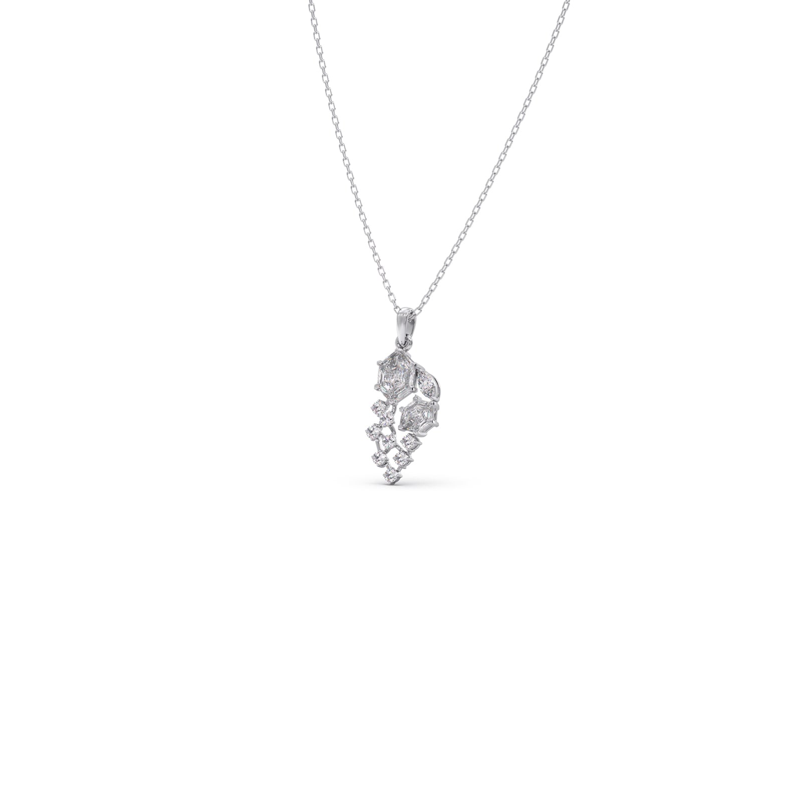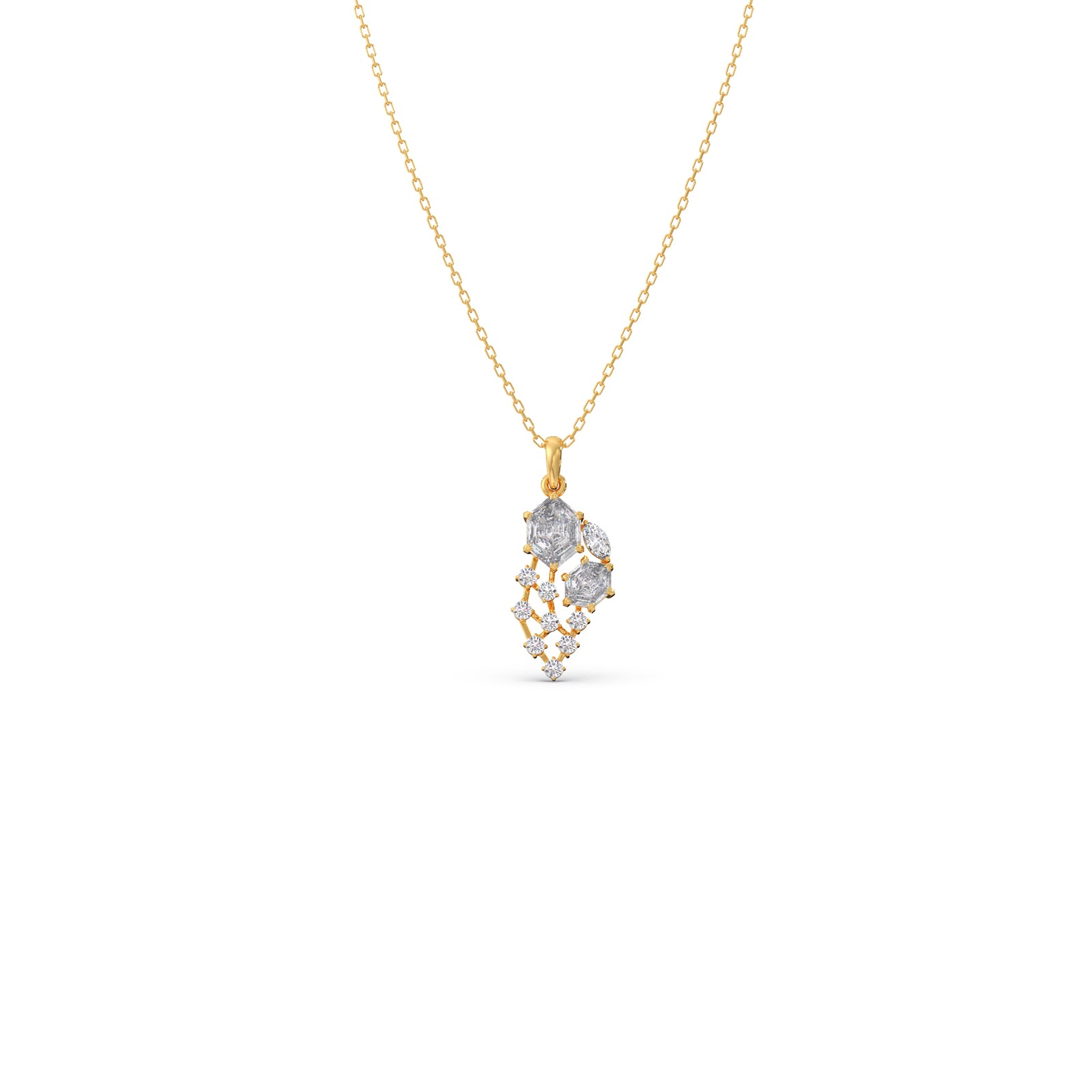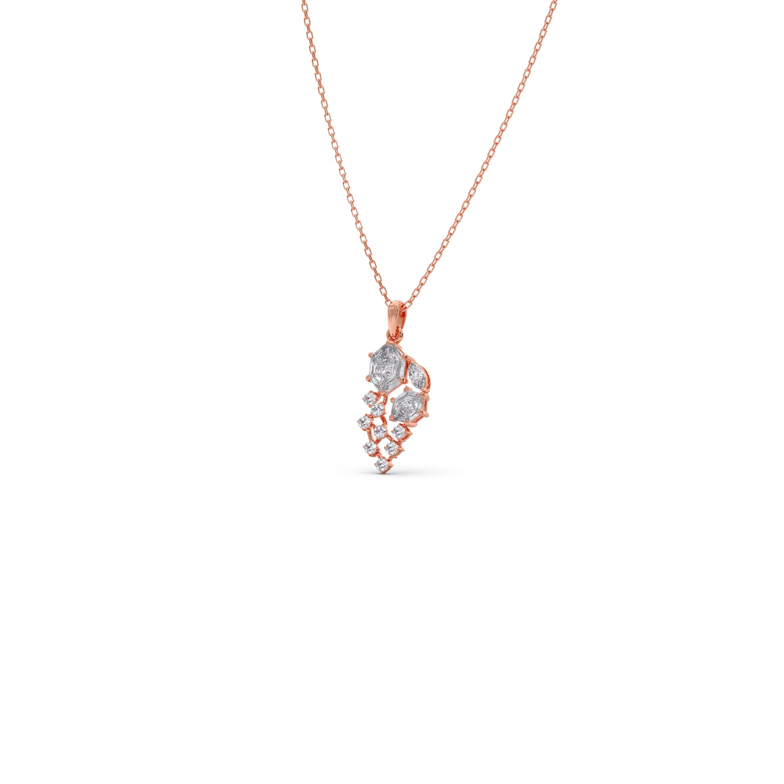 In this pendant Hexa, Marquise and Round Diamonds branch out in a graceful, leaf-like formation—each shape chosen to reflect a different phase of growth. Inspired by nature’s quiet resilience, the minimalist design honors the strength it takes to evolve. At its root, our signature 0.008 ct. Round Diamond glows as a symbol of the small moments that shape the most powerful transformations.