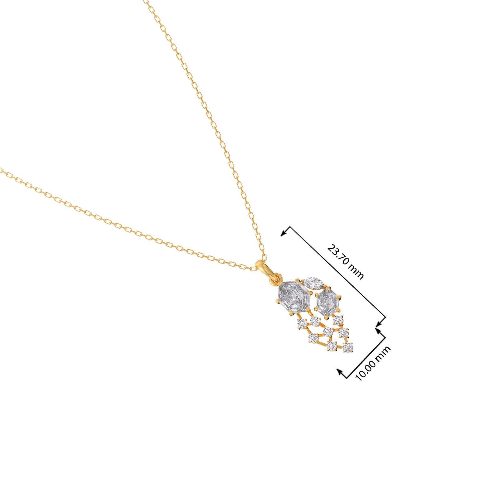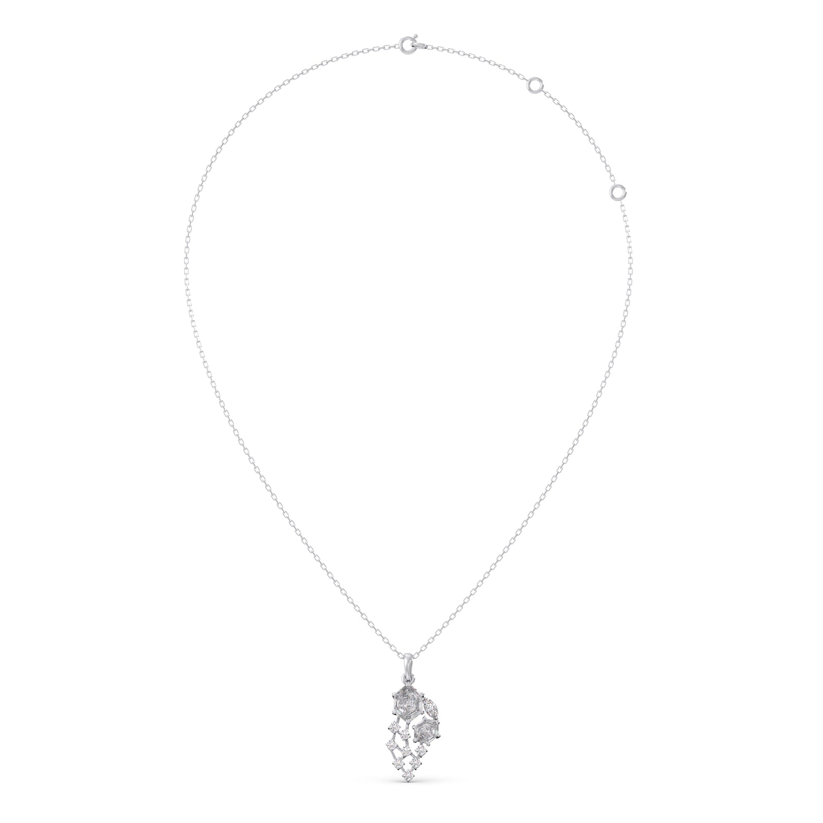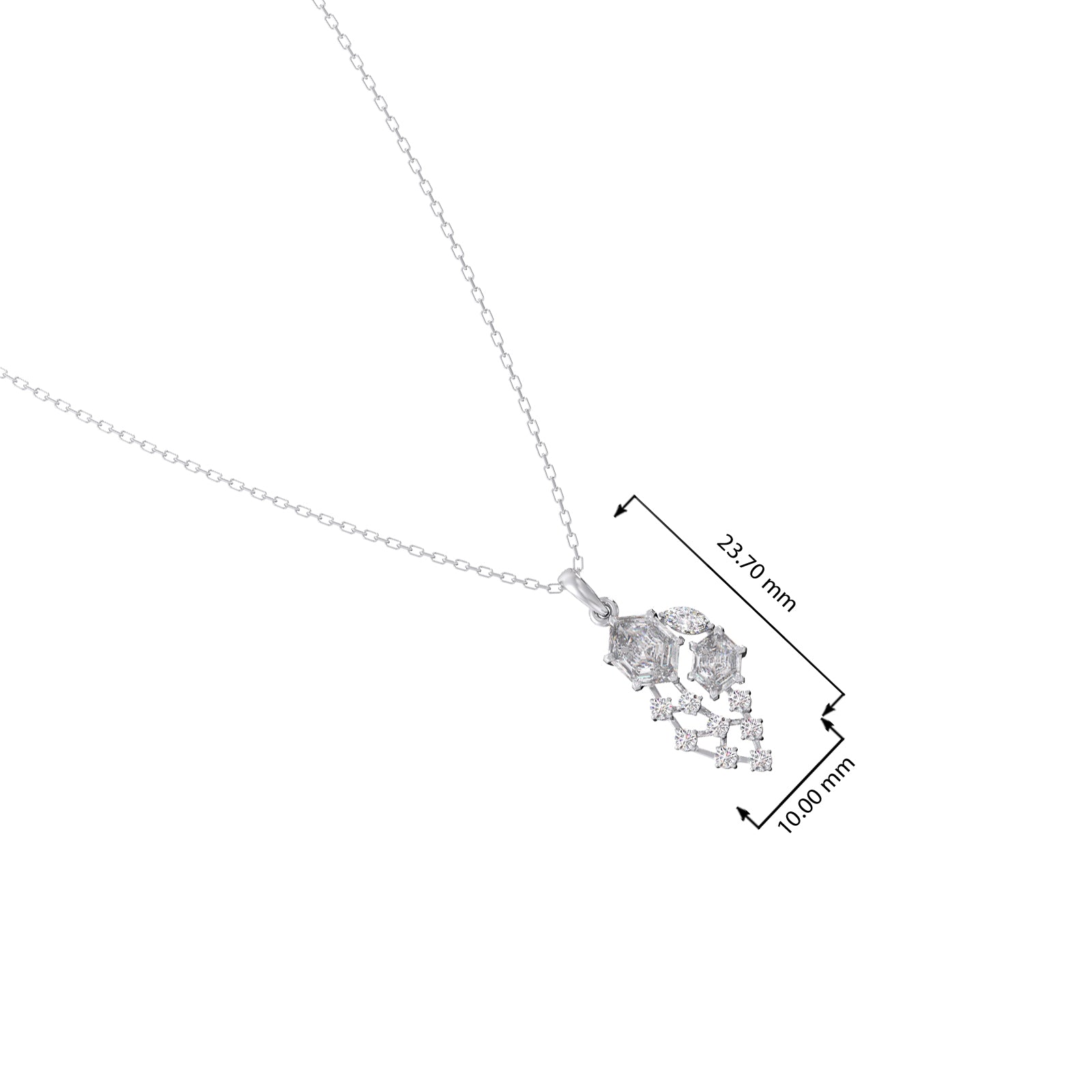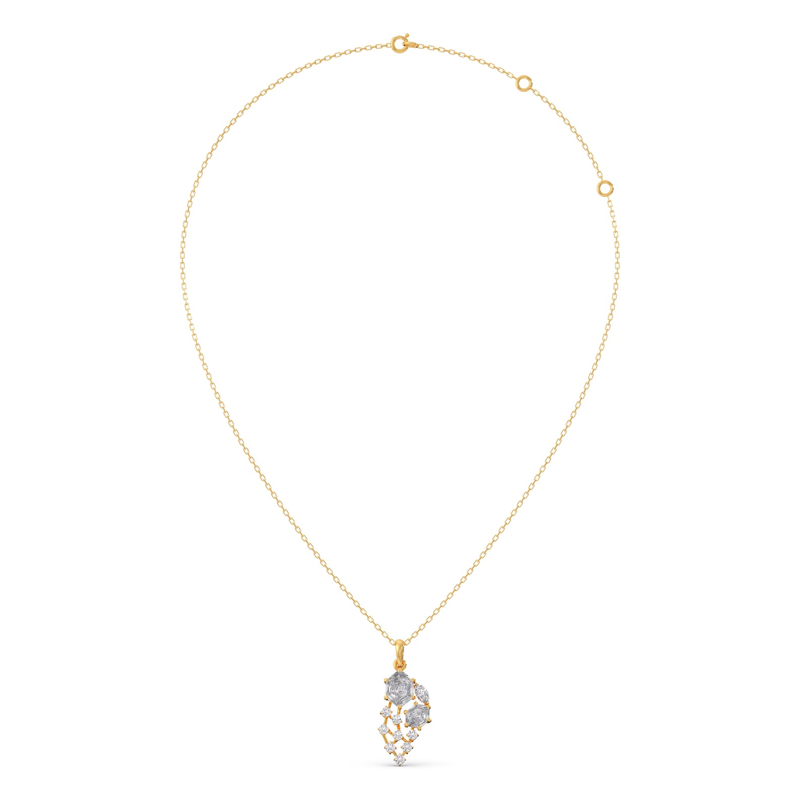 In this pendant Hexa, Marquise and Round Diamonds branch out in a graceful, leaf-like formation—each shape chosen to reflect a different phase of growth. Inspired by nature’s quiet resilience, the minimalist design honors the strength it takes to evolve. At its root, our signature 0.008 ct. Round Diamond glows as a symbol of the small moments that shape the most powerful transformations.