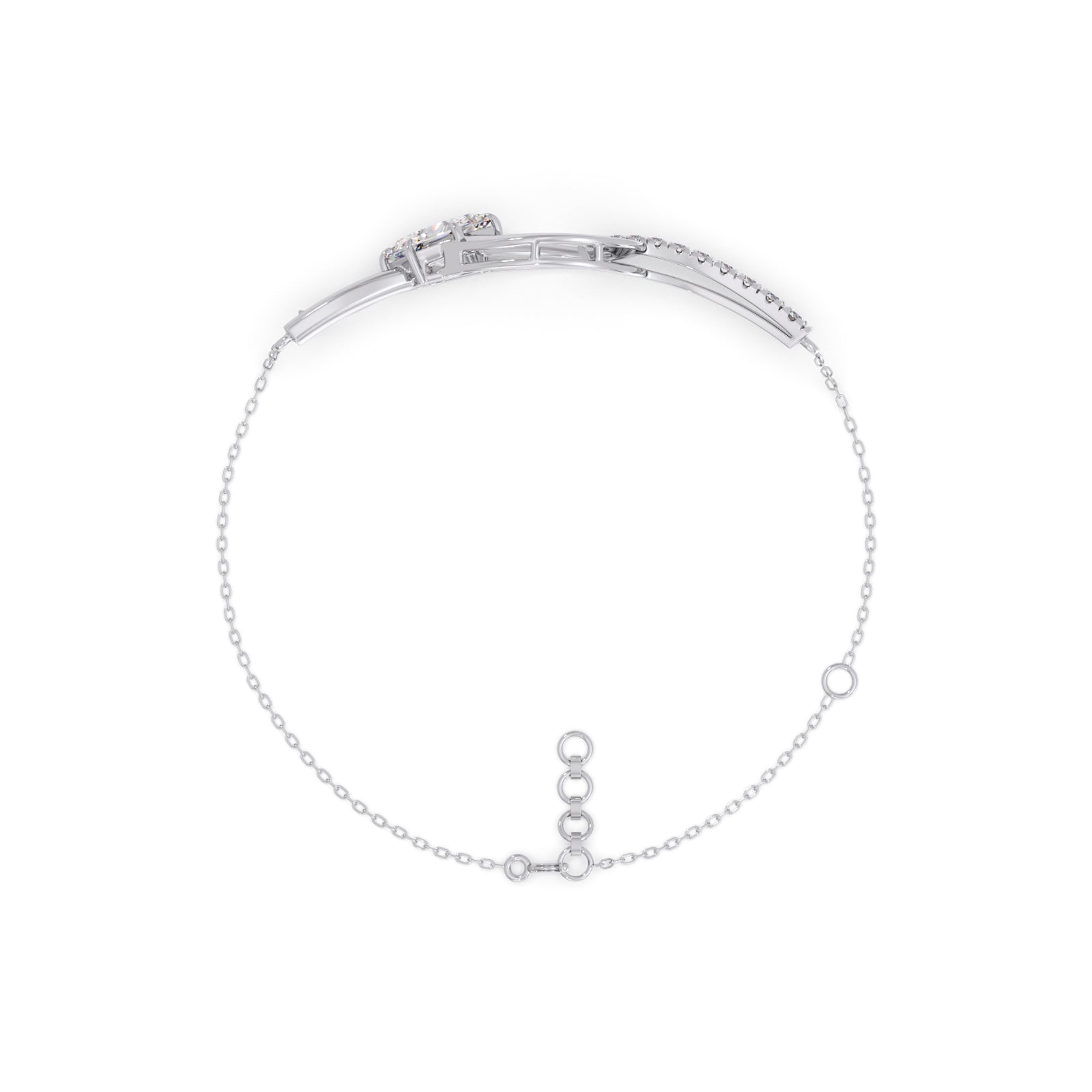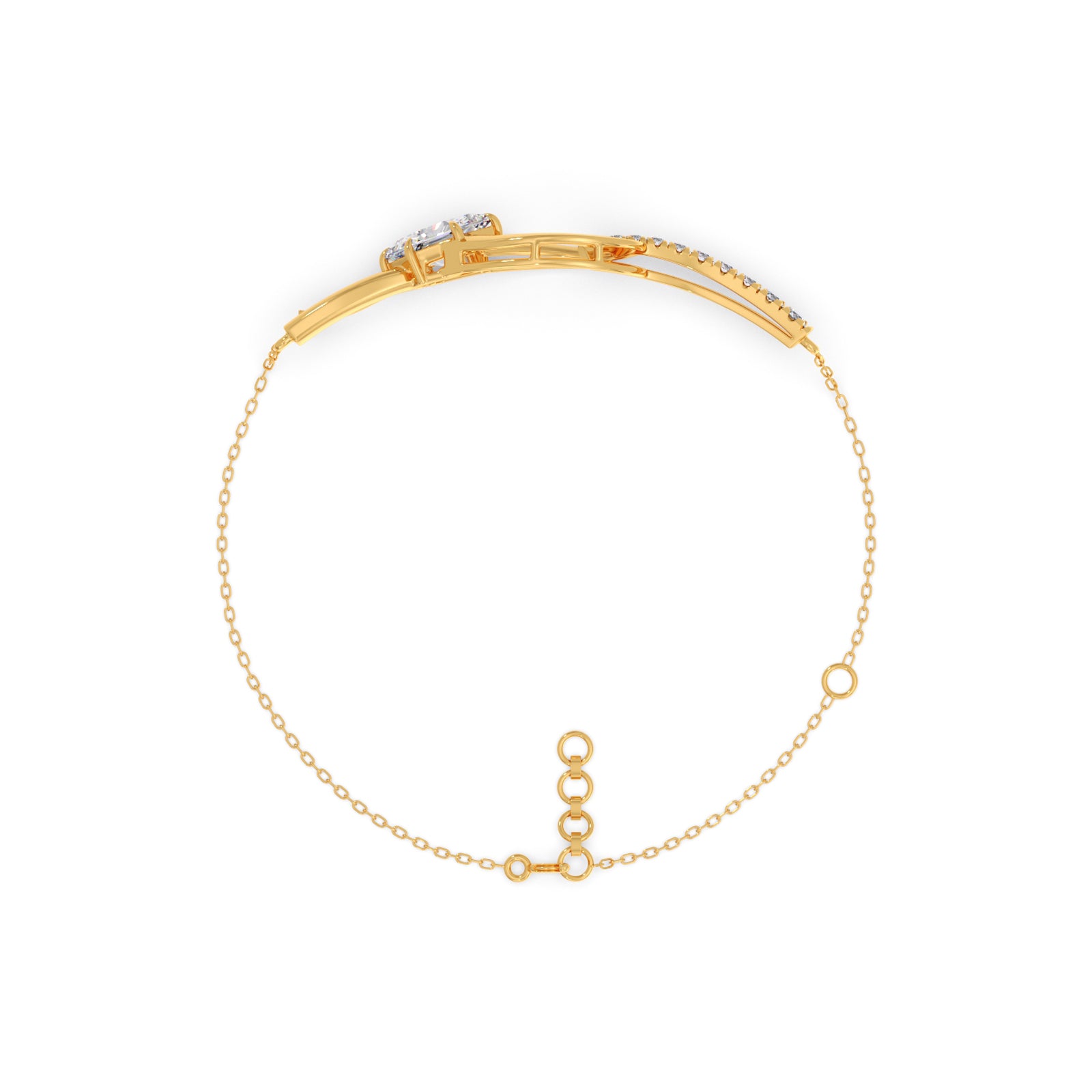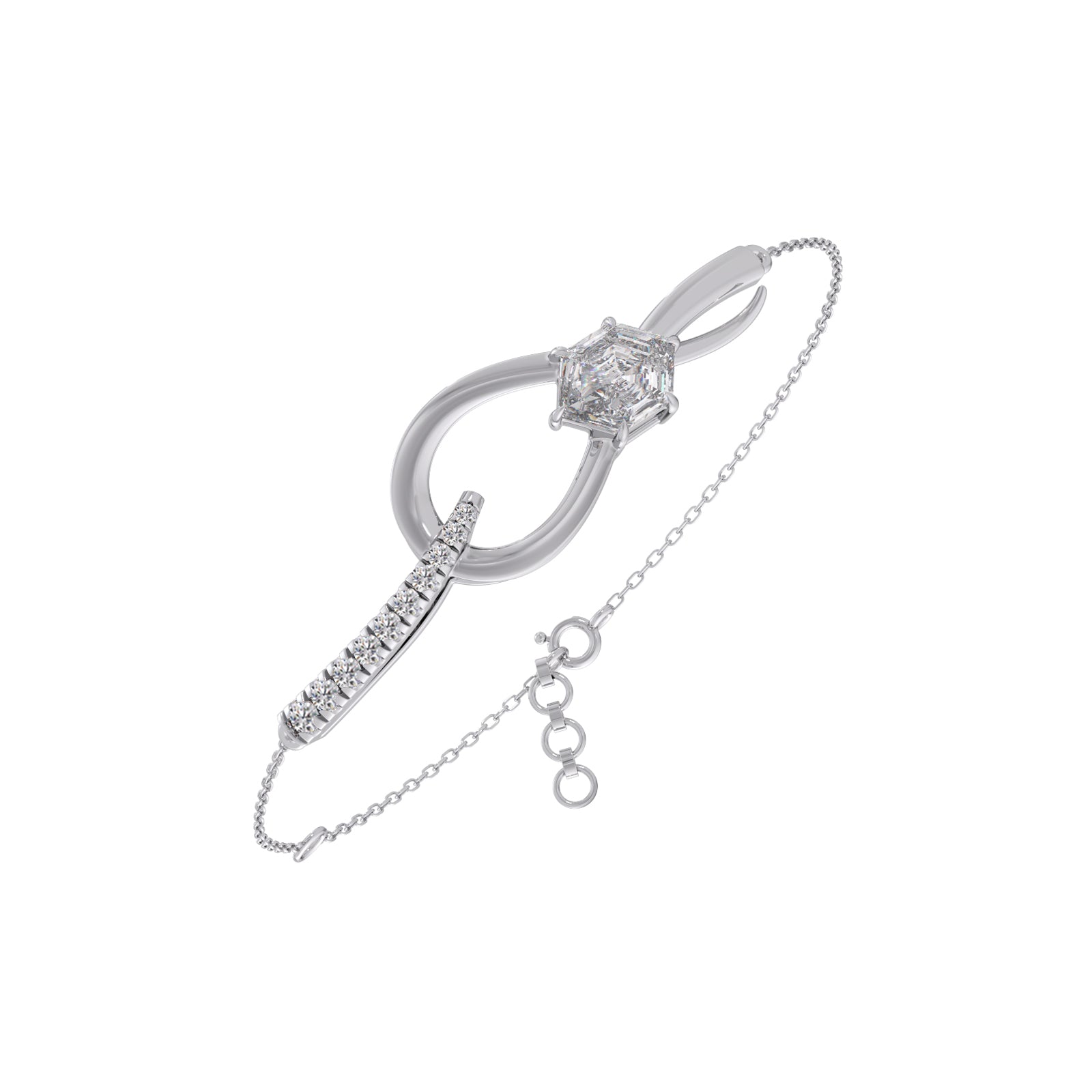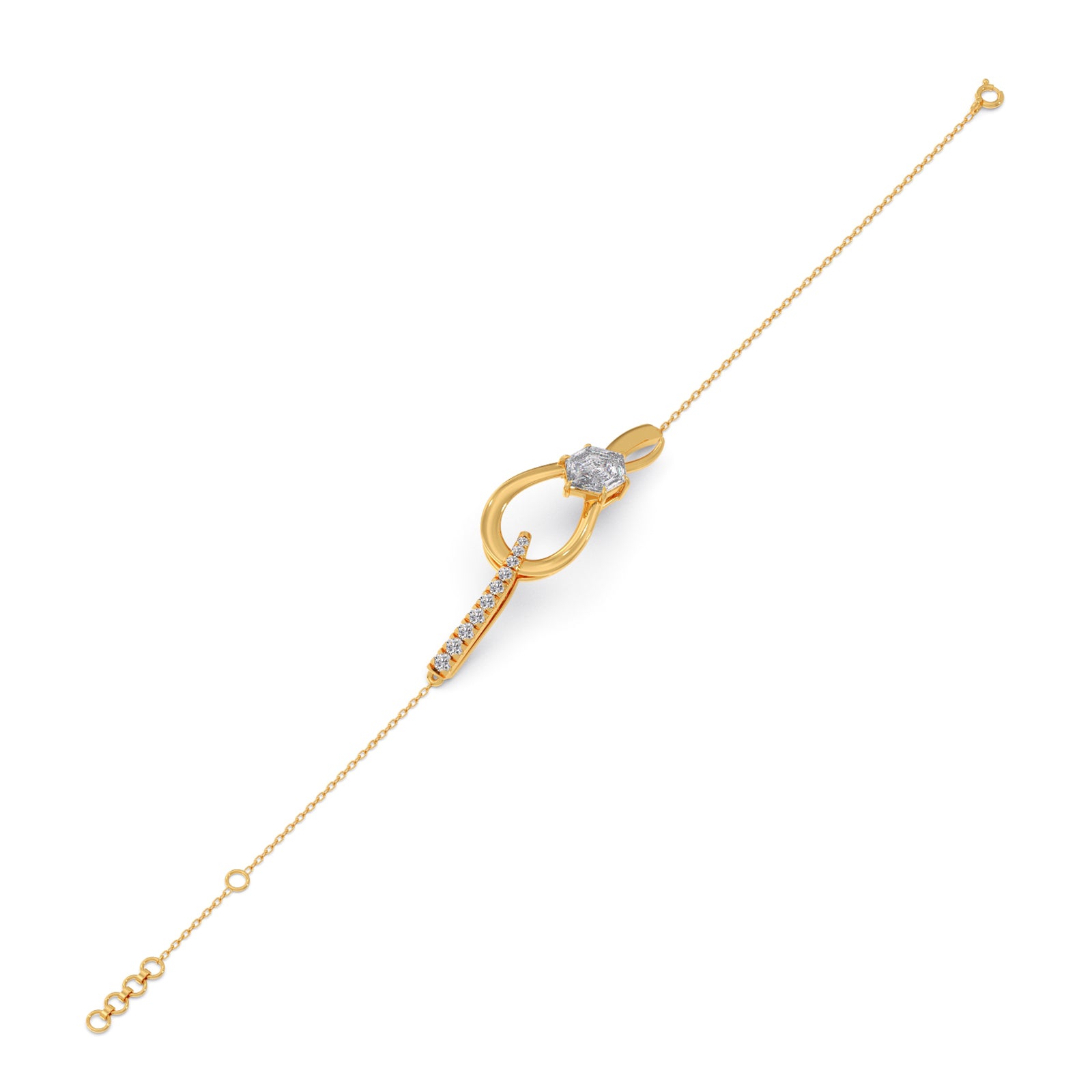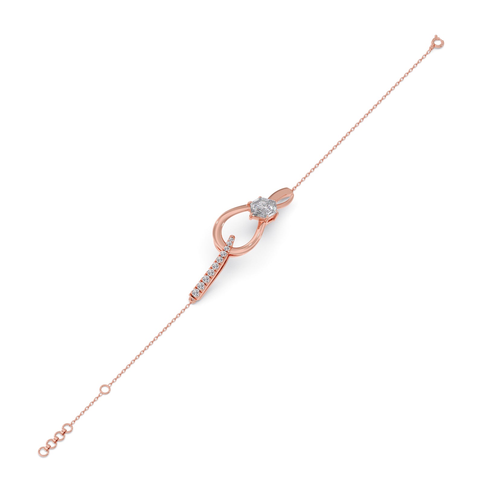 A single Hexa Solitaire is framed by a graceful curve of Round Diamonds, connected through a delicate loop. Completed with the signature 0.008 ct. Round Diamond in a bezel, this bracelet weaves together strength and softness—an ode to transformation through connection and flow.