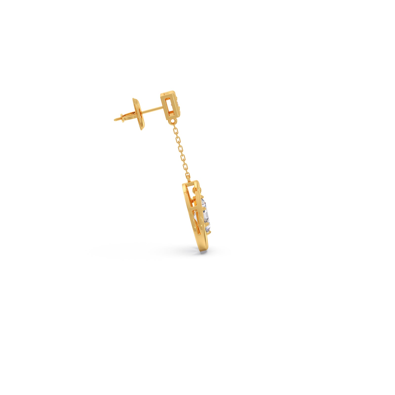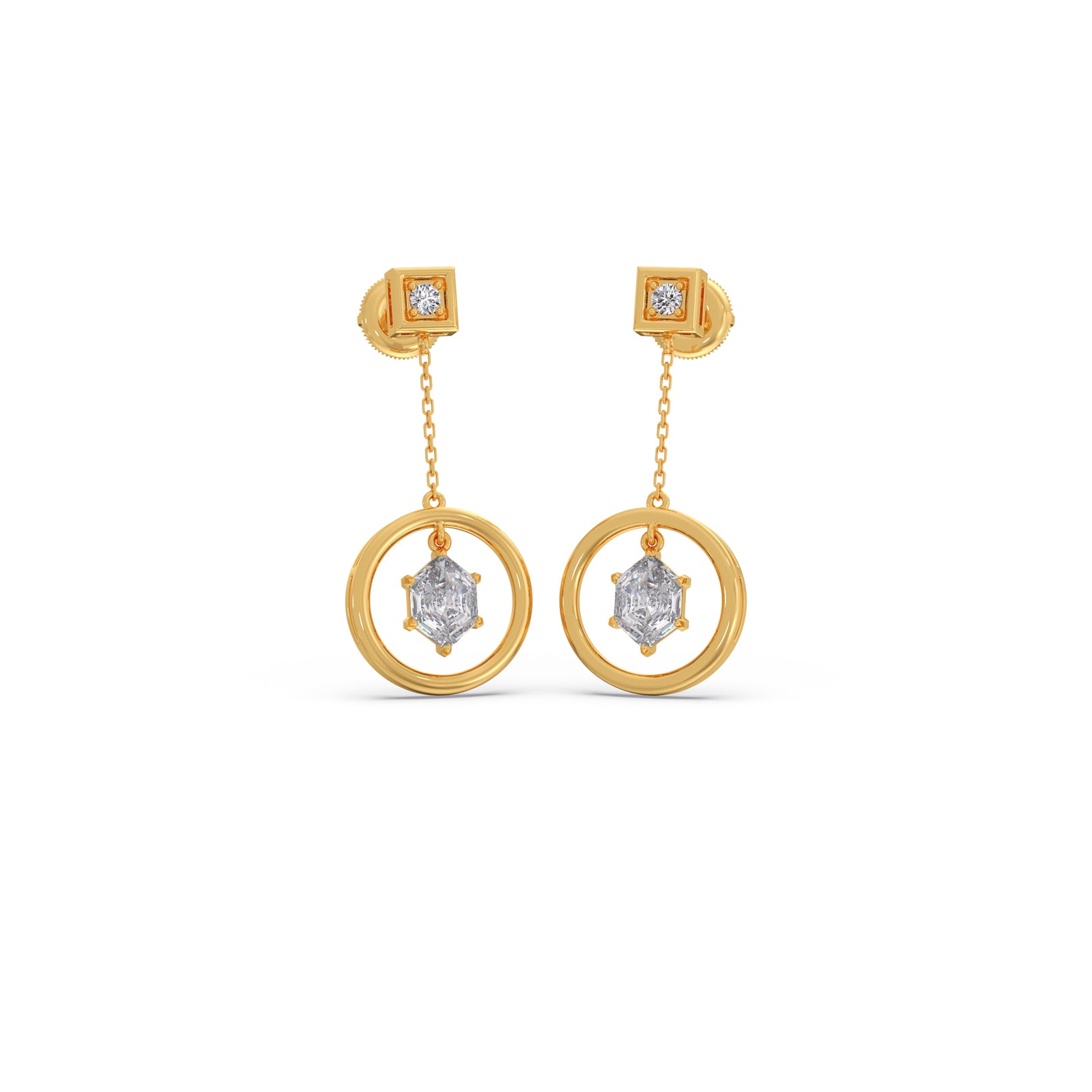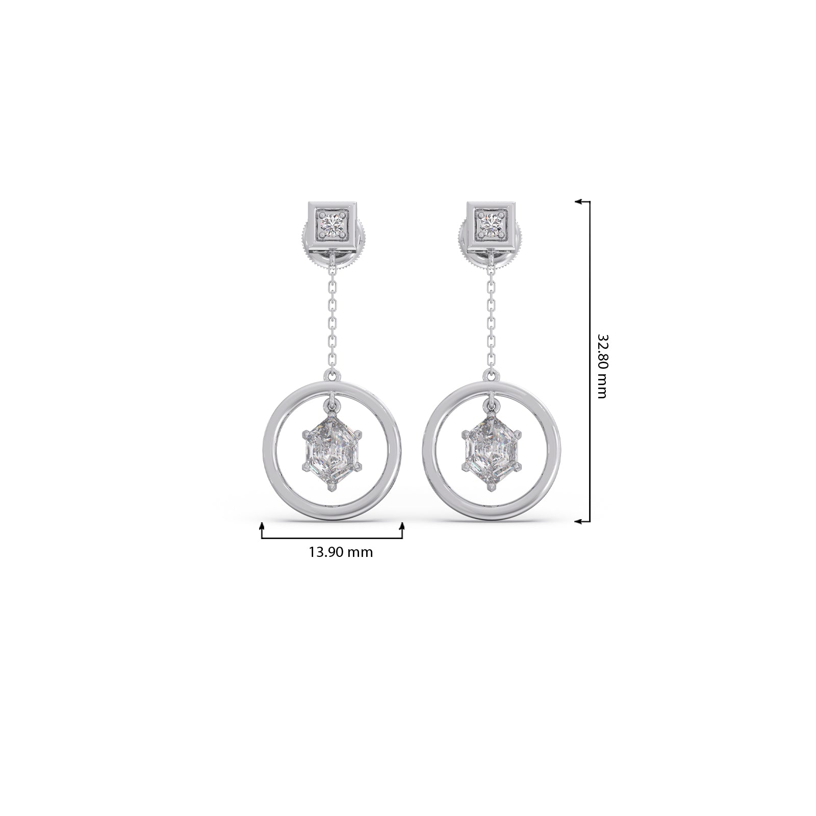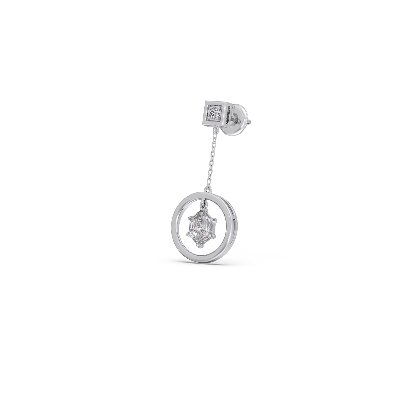 A delicate diamond chain flows from a sculpted square, ending in a graceful loop that holds a luminous Hexa Solitaire. With every movement, the form echoes life's fluid transitions. Completed with our signature 0.008 ct. Round Diamond—a subtle emblem of quiet resilience.