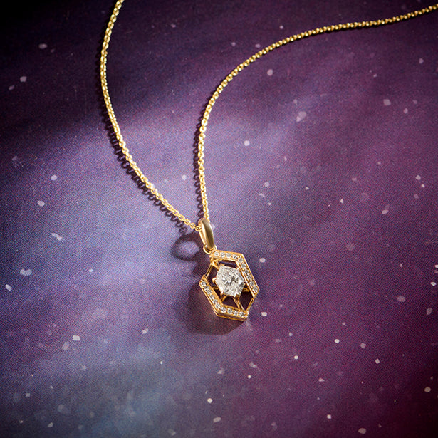 A 0.5 ct. Hexa Solitaire anchors 20 Round Diamonds set at alternating angles, each a reflection of life’s twists and turns. A hidden diamond beneath honours the unseen strength that shapes you, celebrating the journey as much as the brilliance you’ve become.