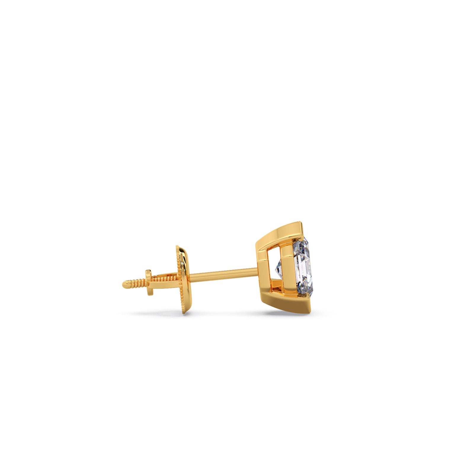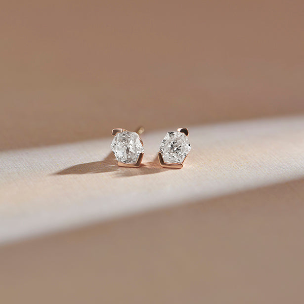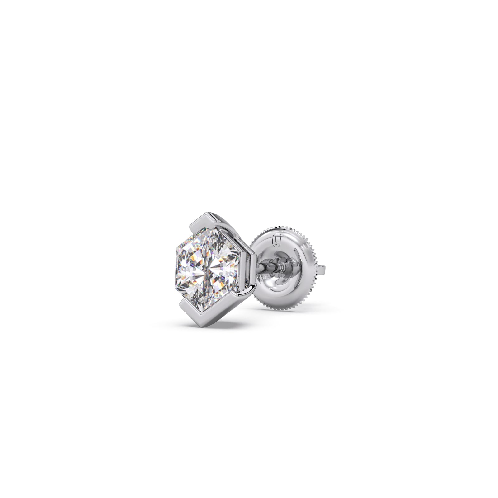 The Hexa Smallitaires Half Bezel Earrings features a unique hexa-cut diamond, securely nestled in a sleek half bezel setting. With its modern geometric shape and minimalist design, this earring offers a bold yet refined look—perfect for adding contemporary elegance to any ensemble.