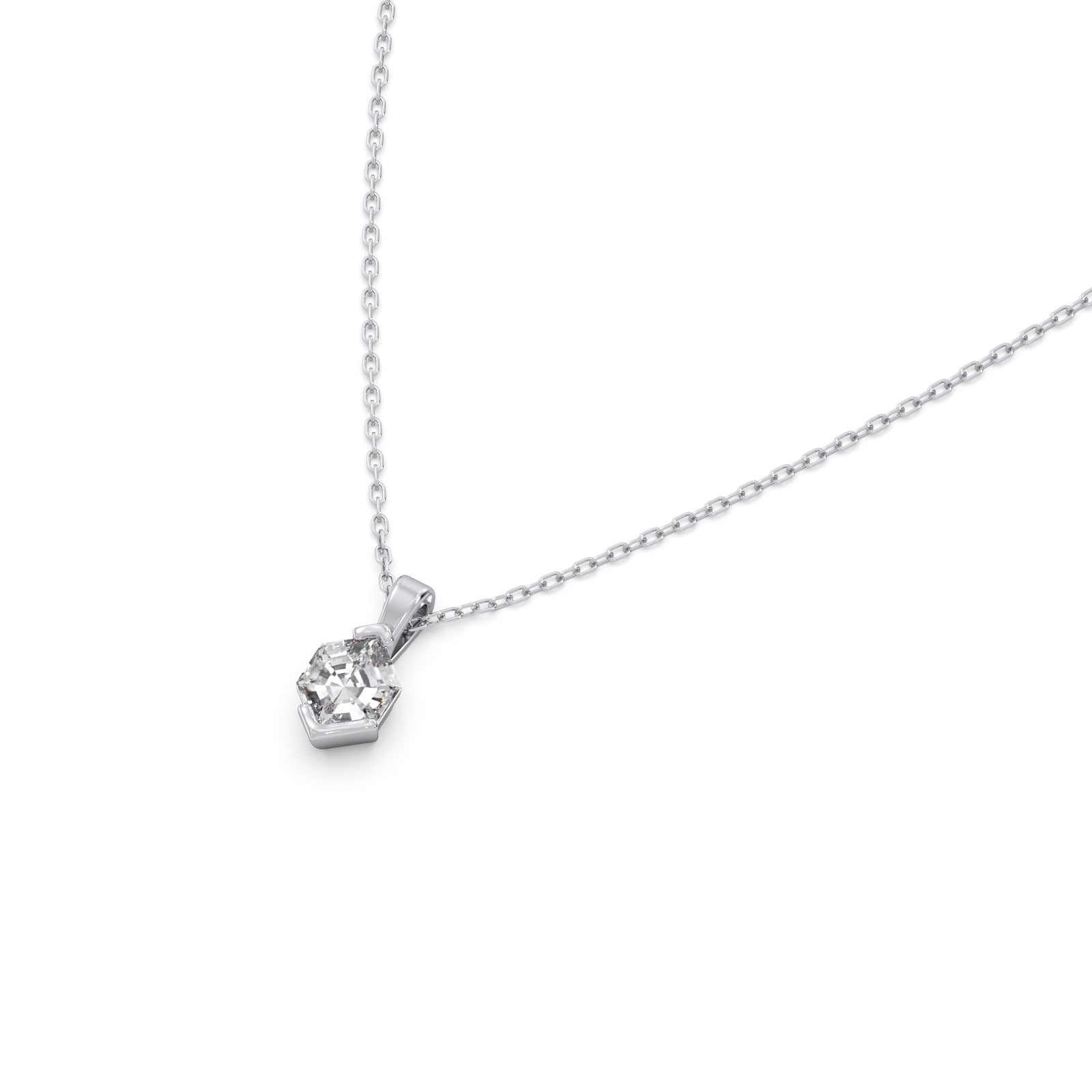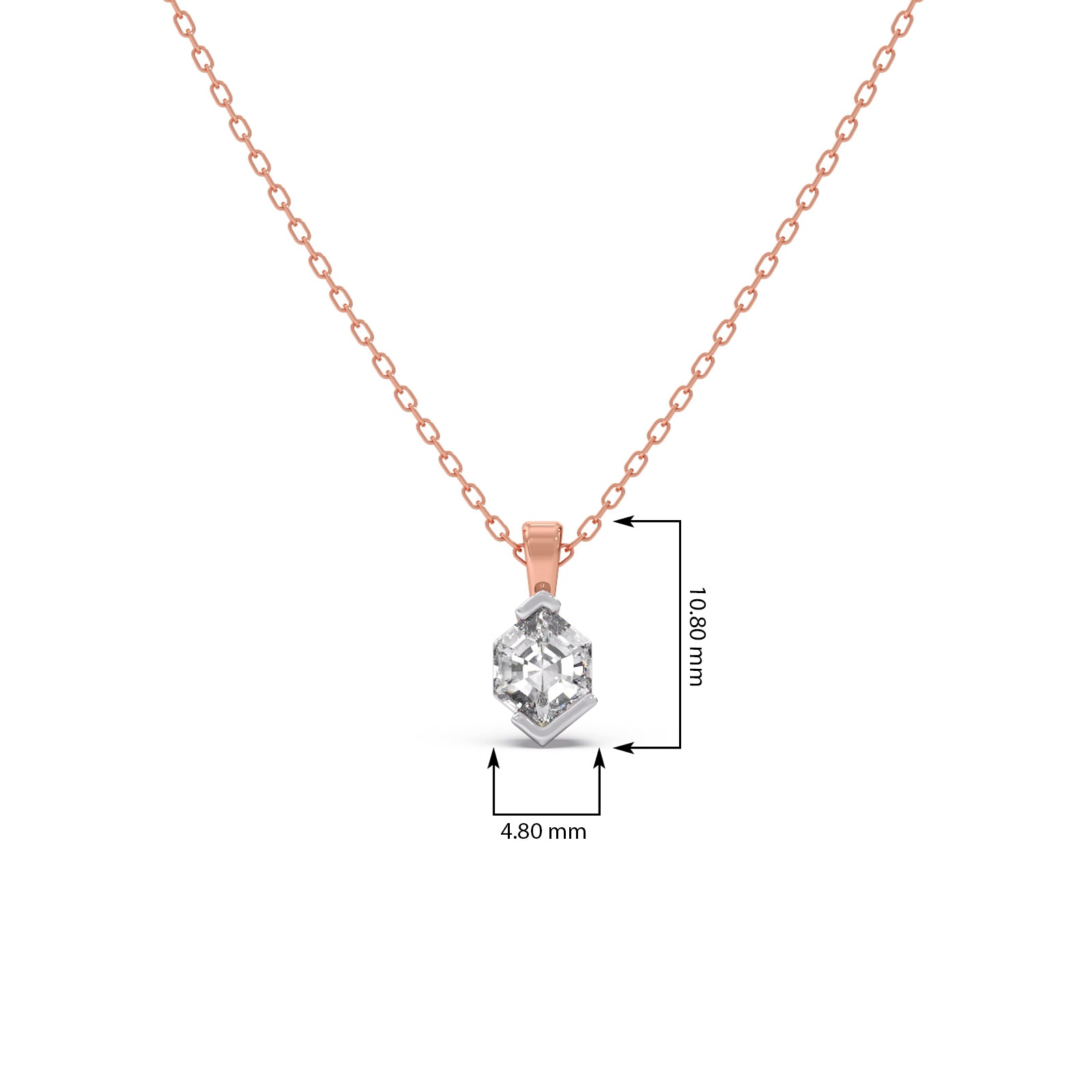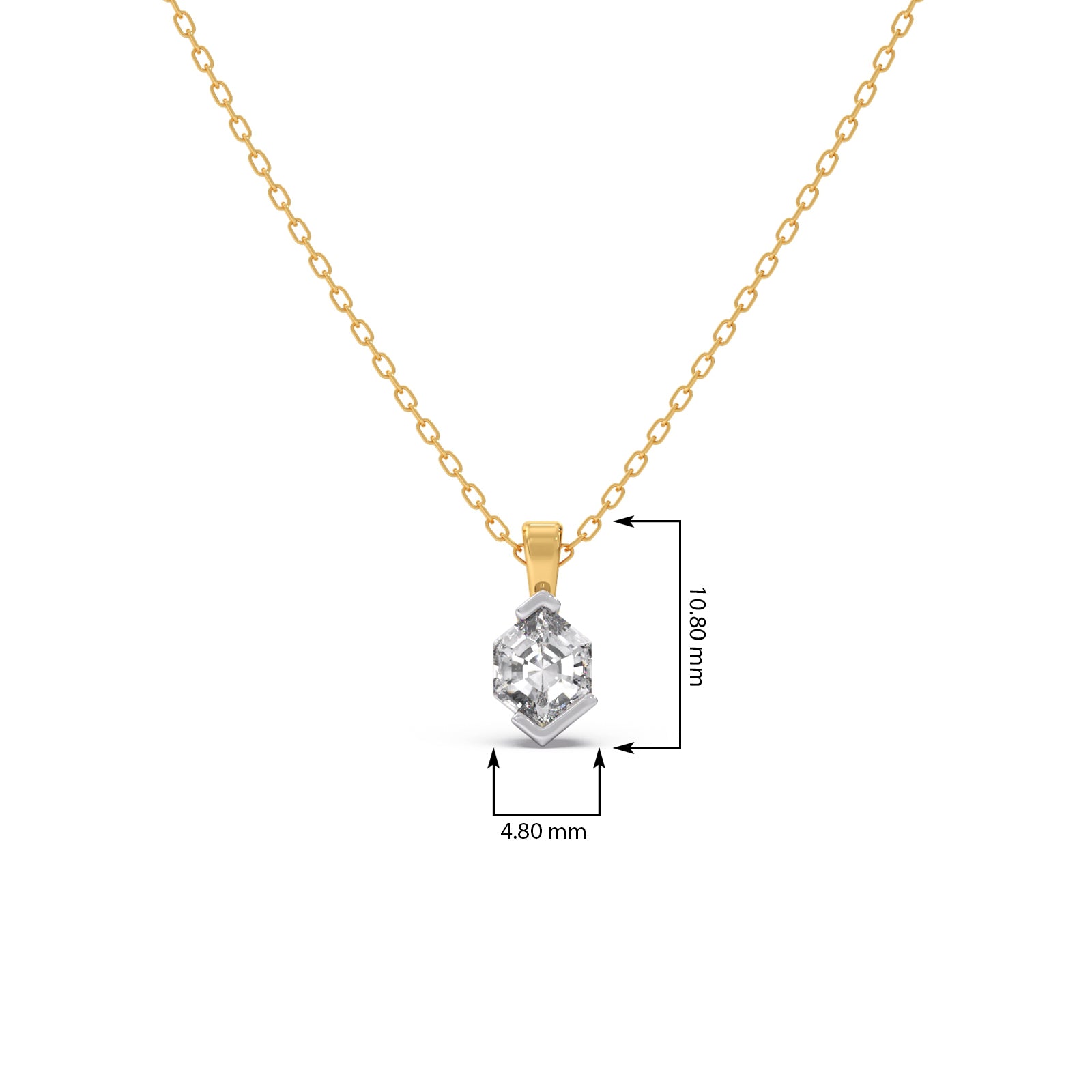 The Hexa Solitaire Half Bezel Pendant Necklace features a striking hexa-cut diamond, elegantly framed in a sleek half bezel setting. Suspended from a delicate chain, this modern pendant blends geometric charm with minimalist sophistication—perfect for everyday elegance or a bold yet refined statement.