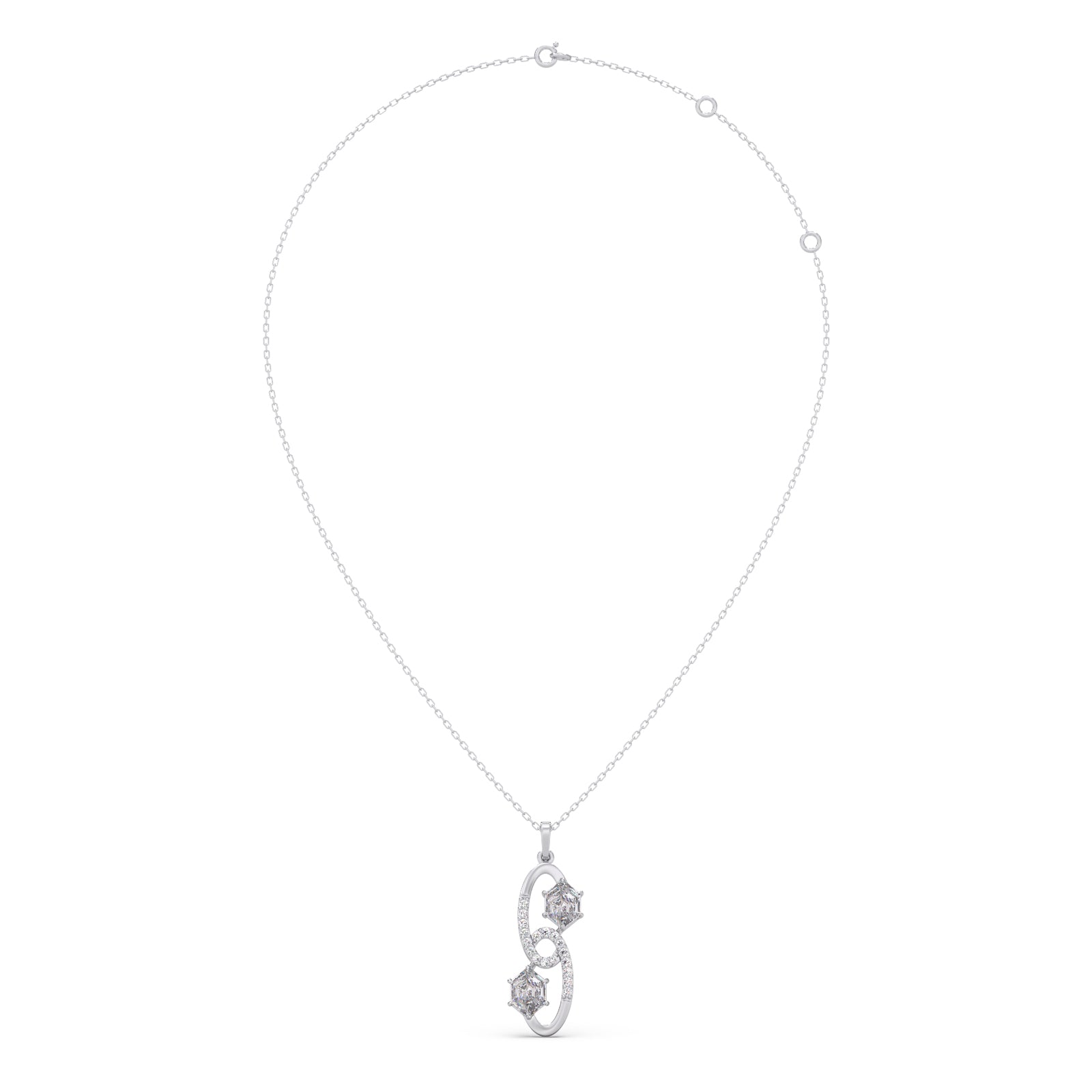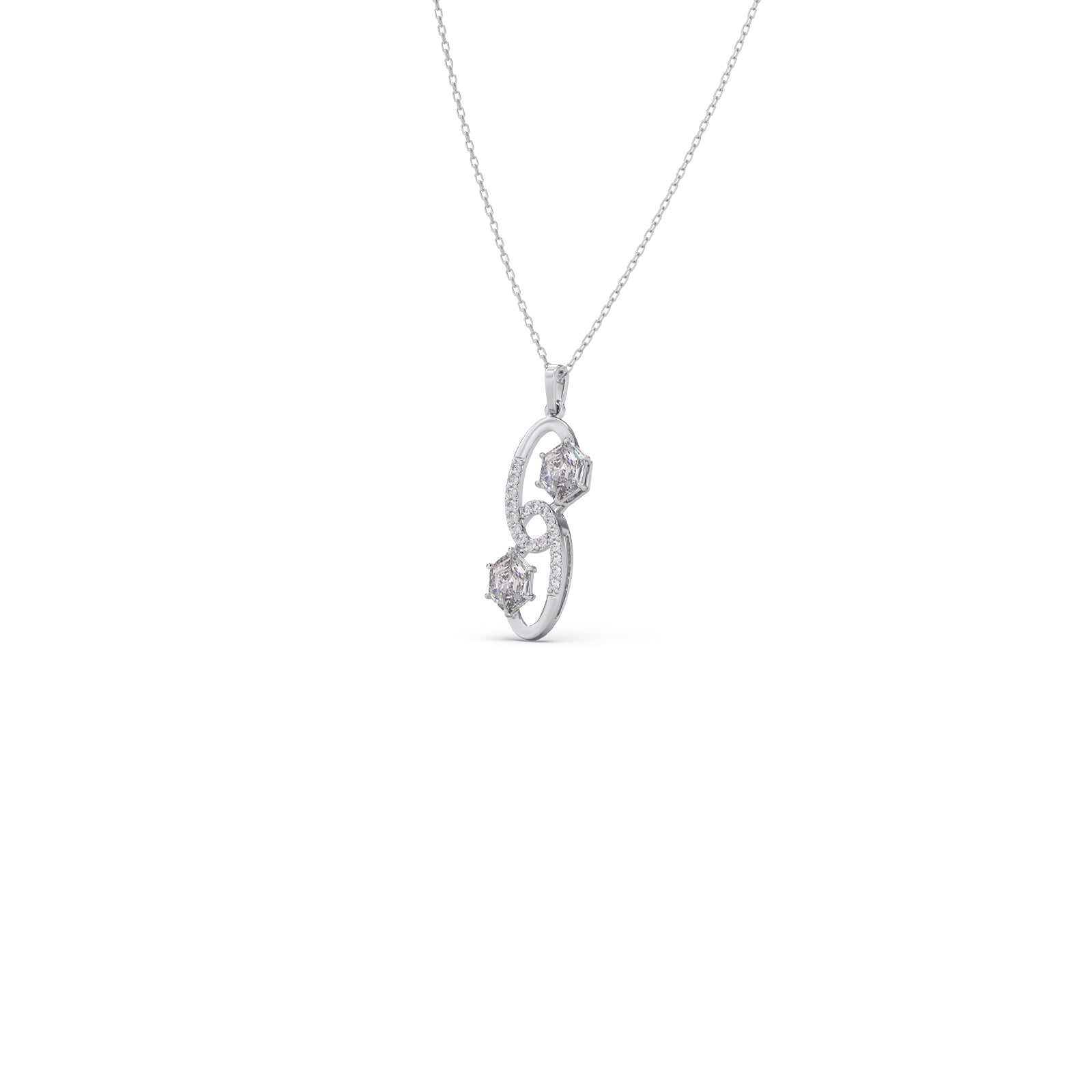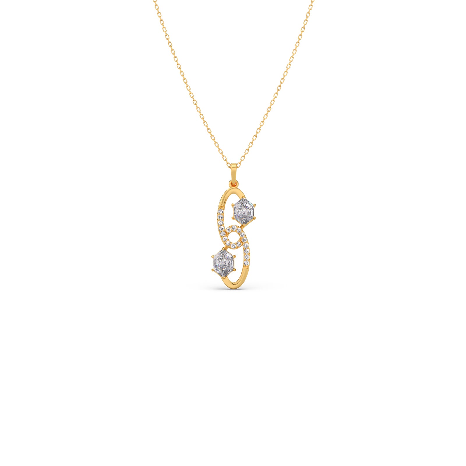 Two interlinked loops form a flowing figure-eight, symbolizing continuity and transformation. At their intersection, three open spaces reveal the strength of stillness, while Two Hexa Solitaires—placed in a cross across the loops—anchor the design. A trail of Round Diamonds curves like an ‘S,’ echoing your evolving journey, finished with our signature 0.008 ct. Round Diamond.