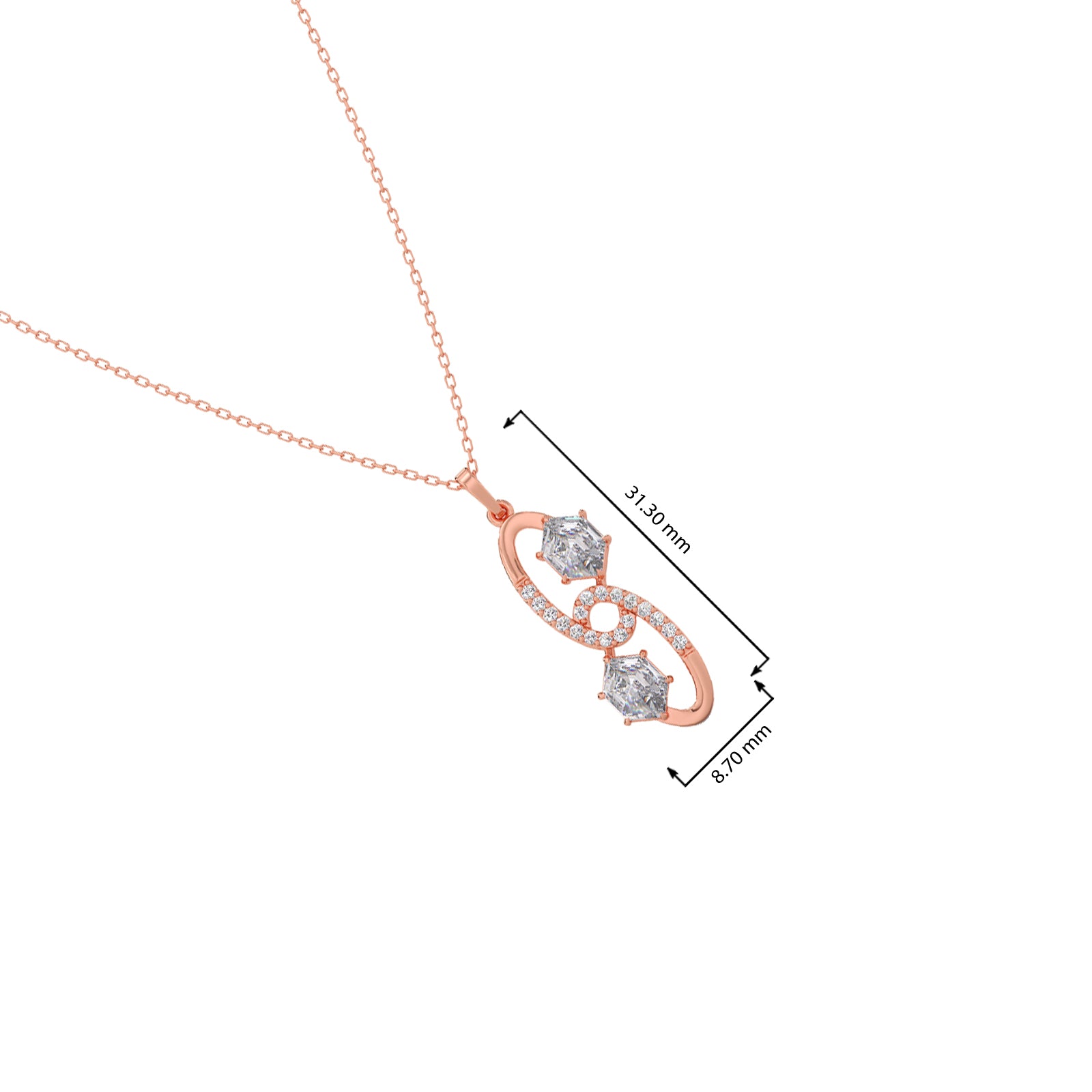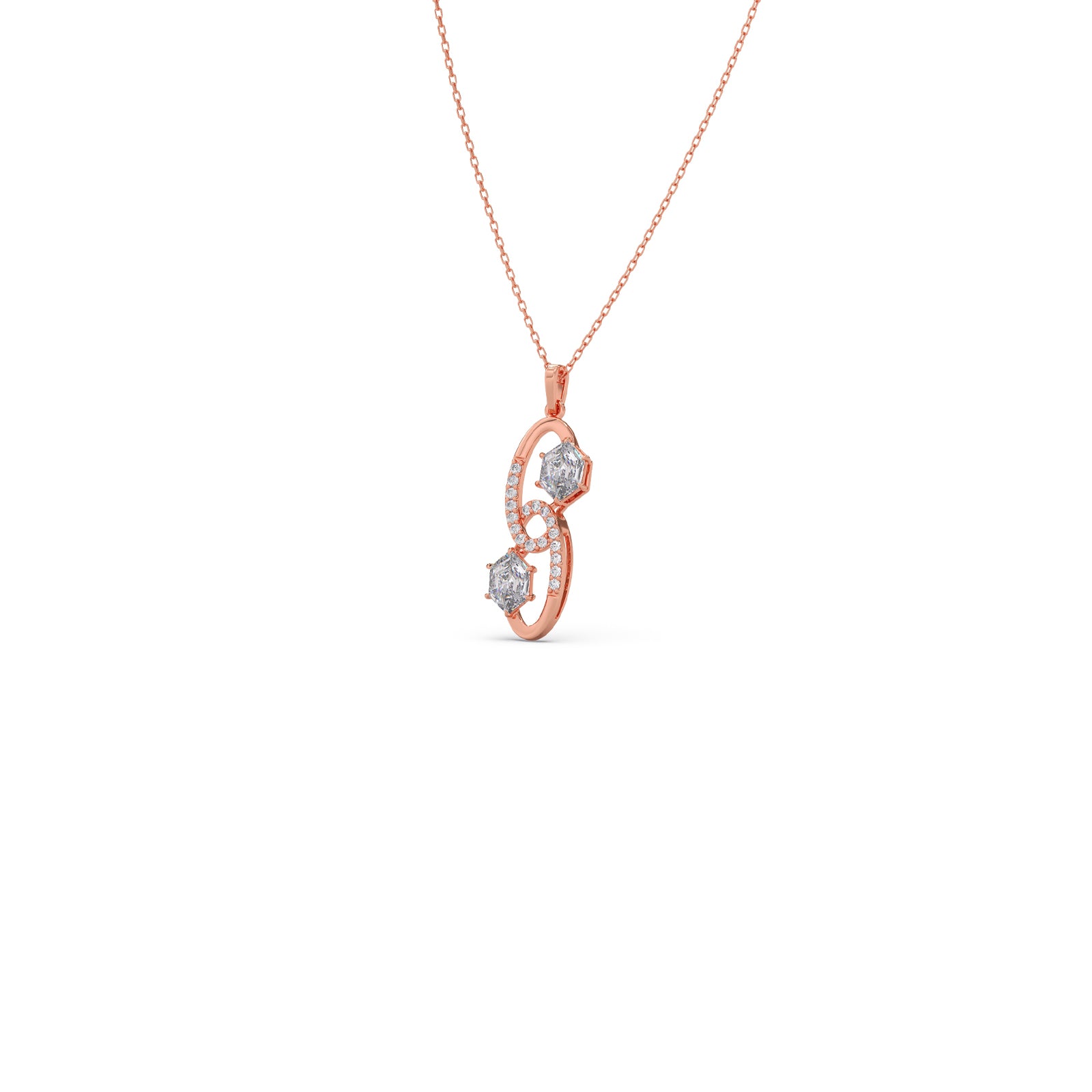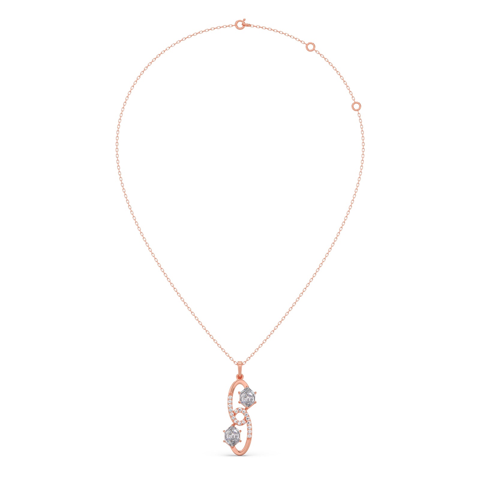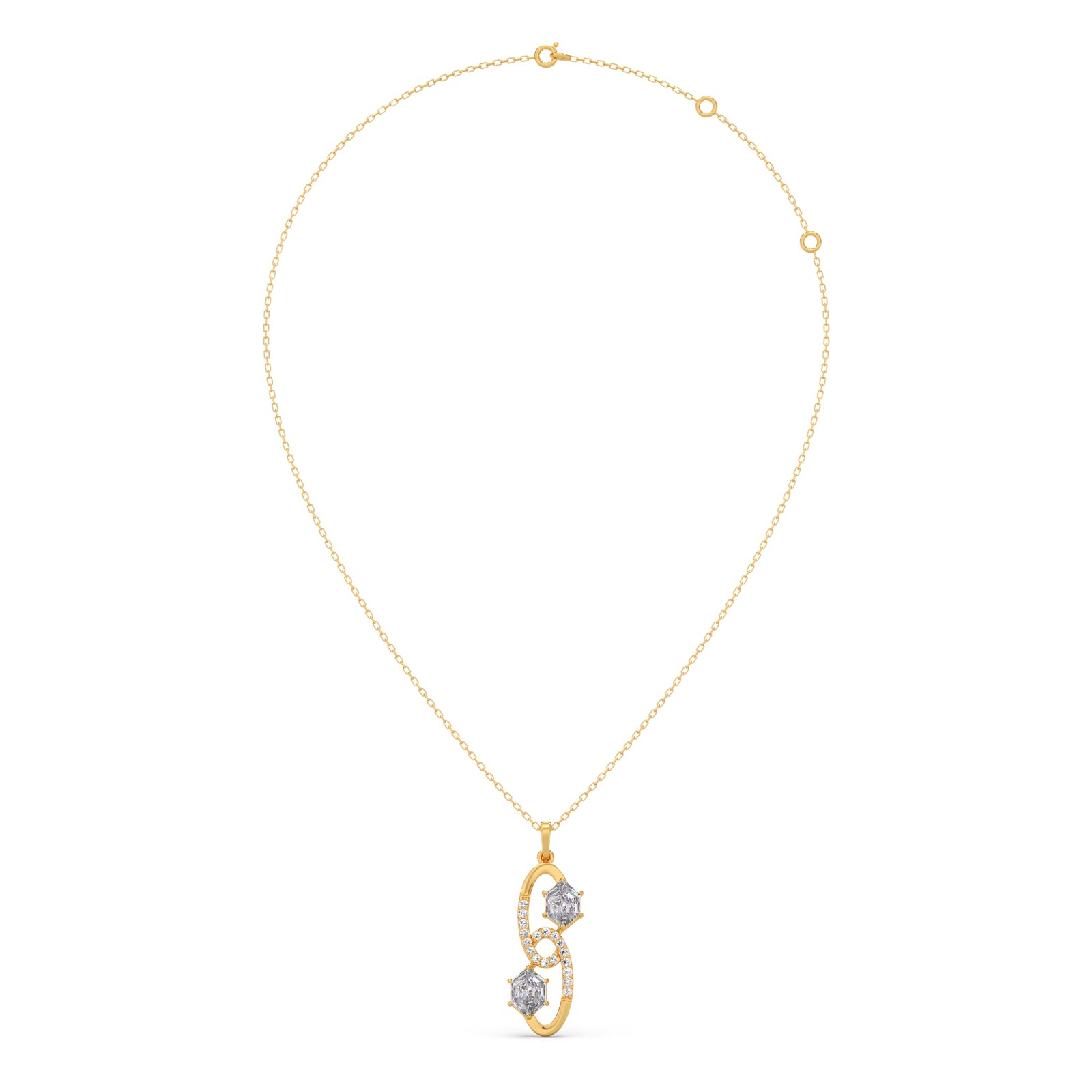 Two interlinked loops form a flowing figure-eight, symbolizing continuity and transformation. At their intersection, three open spaces reveal the strength of stillness, while Two Hexa Solitaires—placed in a cross across the loops—anchor the design. A trail of Round Diamonds curves like an ‘S,’ echoing your evolving journey, finished with our signature 0.008 ct. Round Diamond.