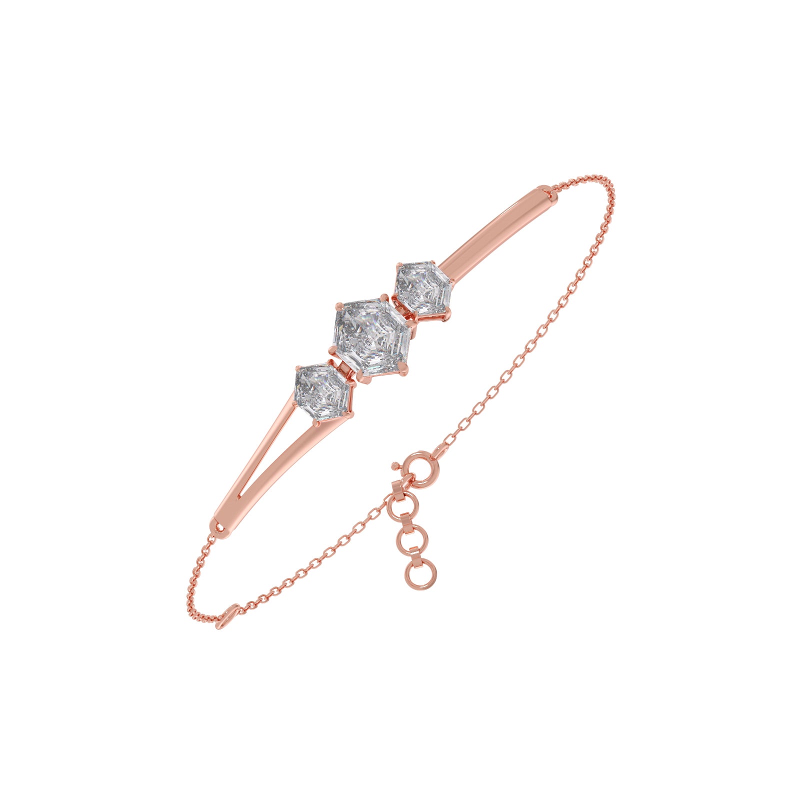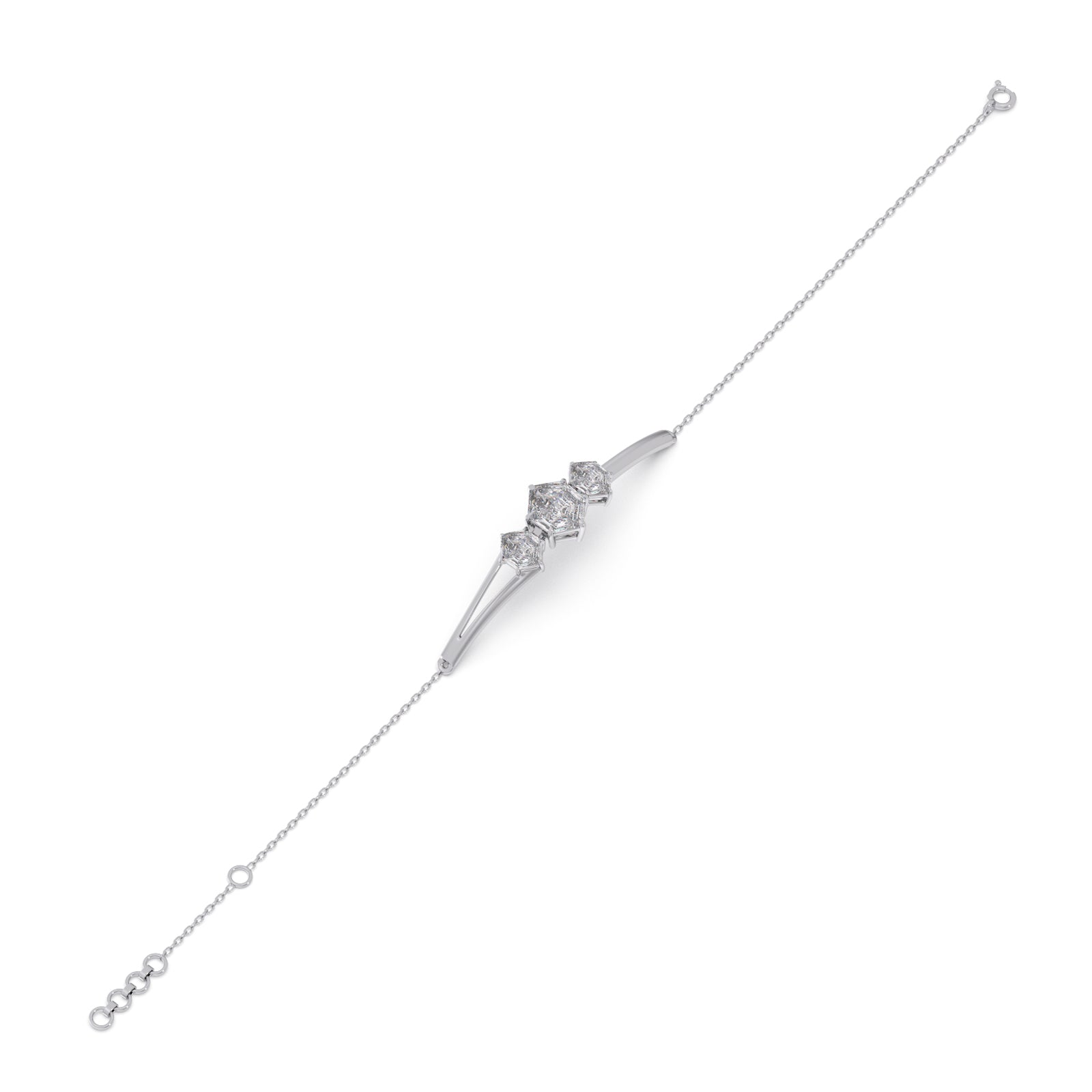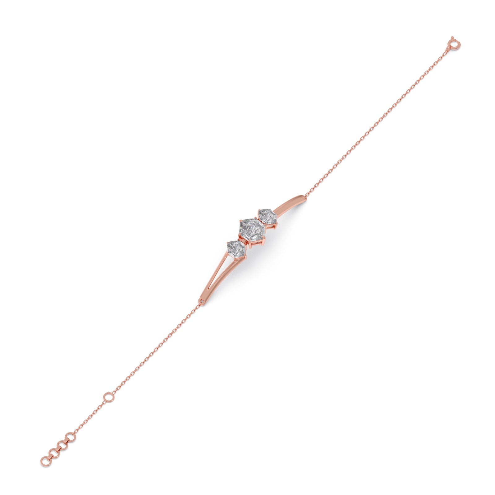 Three Hexa Solitaires—one bold, two delicate—form a striking trio at the center, representing stages of growth. One side features a subtle split design that flows into the diamonds, while the other remains smooth and grounded. Finished with our signature 0.008 ct. Round Diamond, this piece reflects the quiet beauty of becoming.