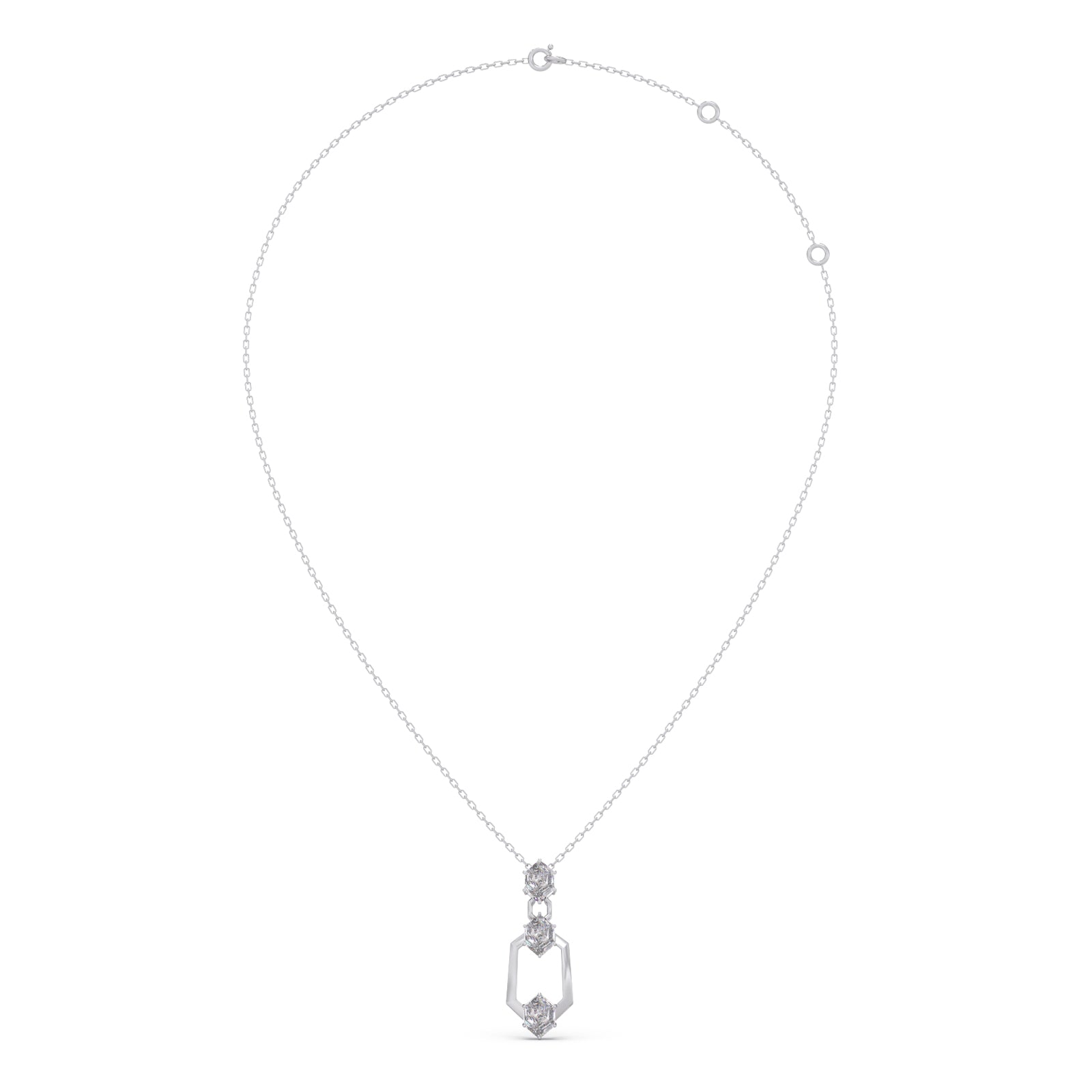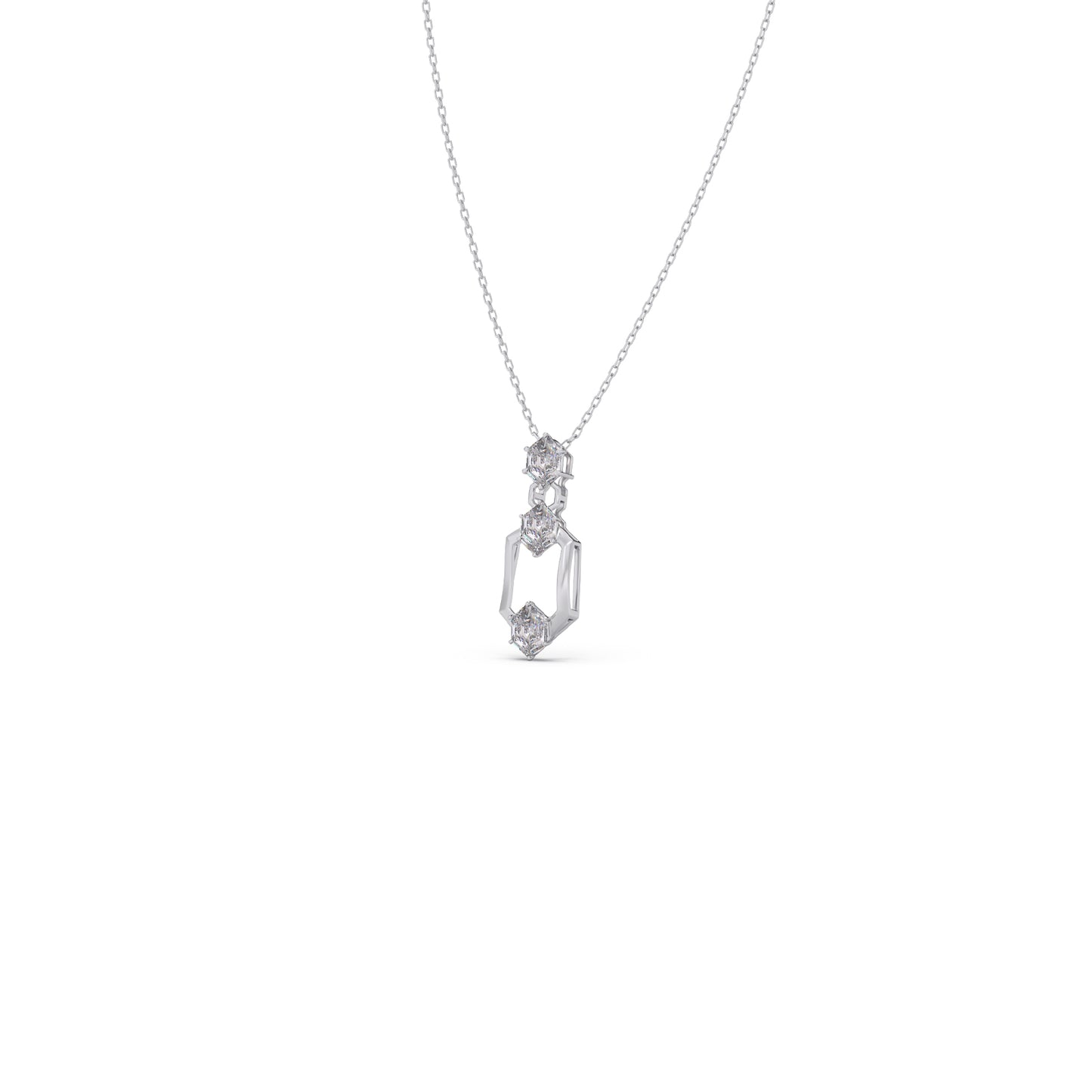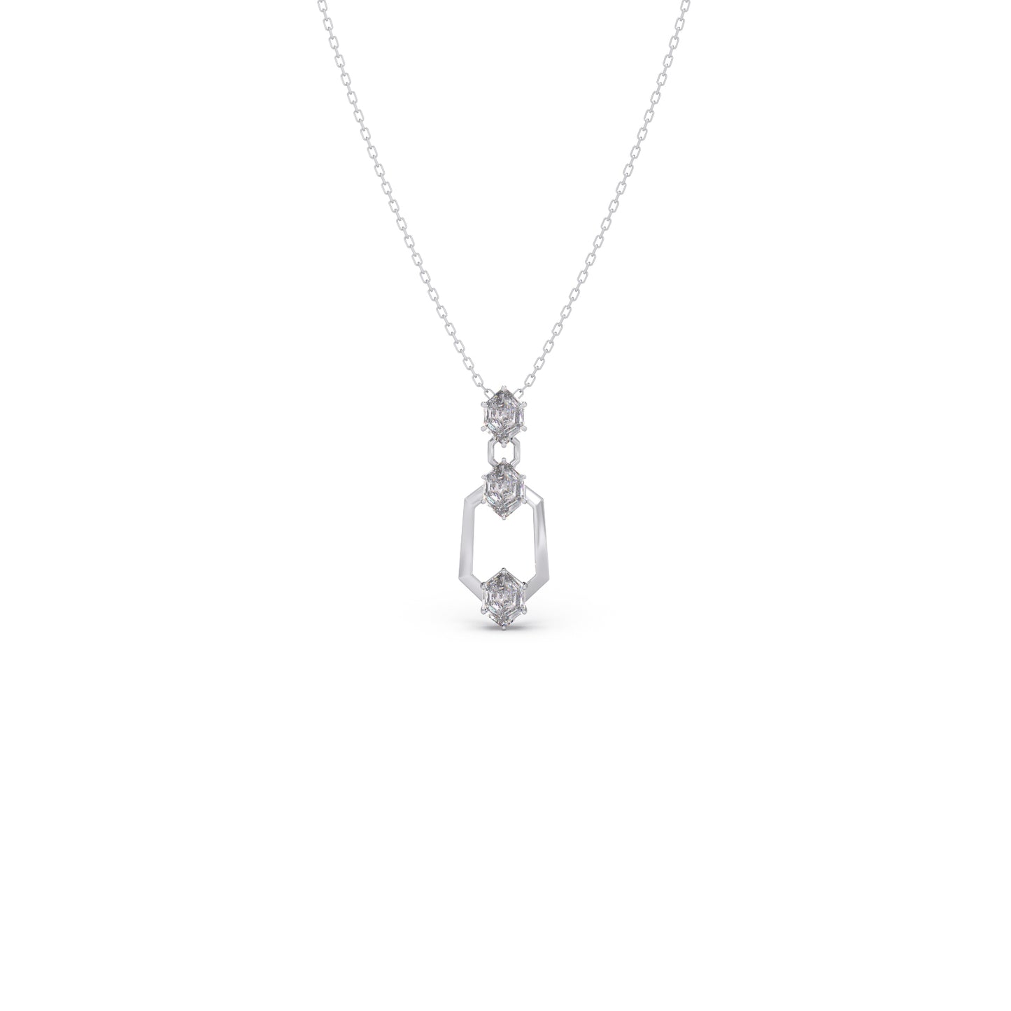 Three Hexa solitaires—0.50 ct., 0.35 ct., and 0.25 ct.—align gracefully in a perfect line, accented by a 0.008 ct. round diamond. A symbol of balance and transformation, this elegant, symmetrical pendant captures life’s journey with understated brilliance.