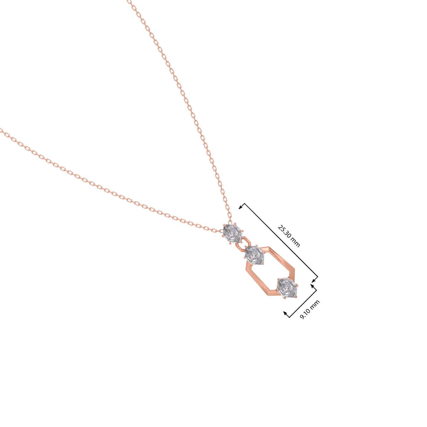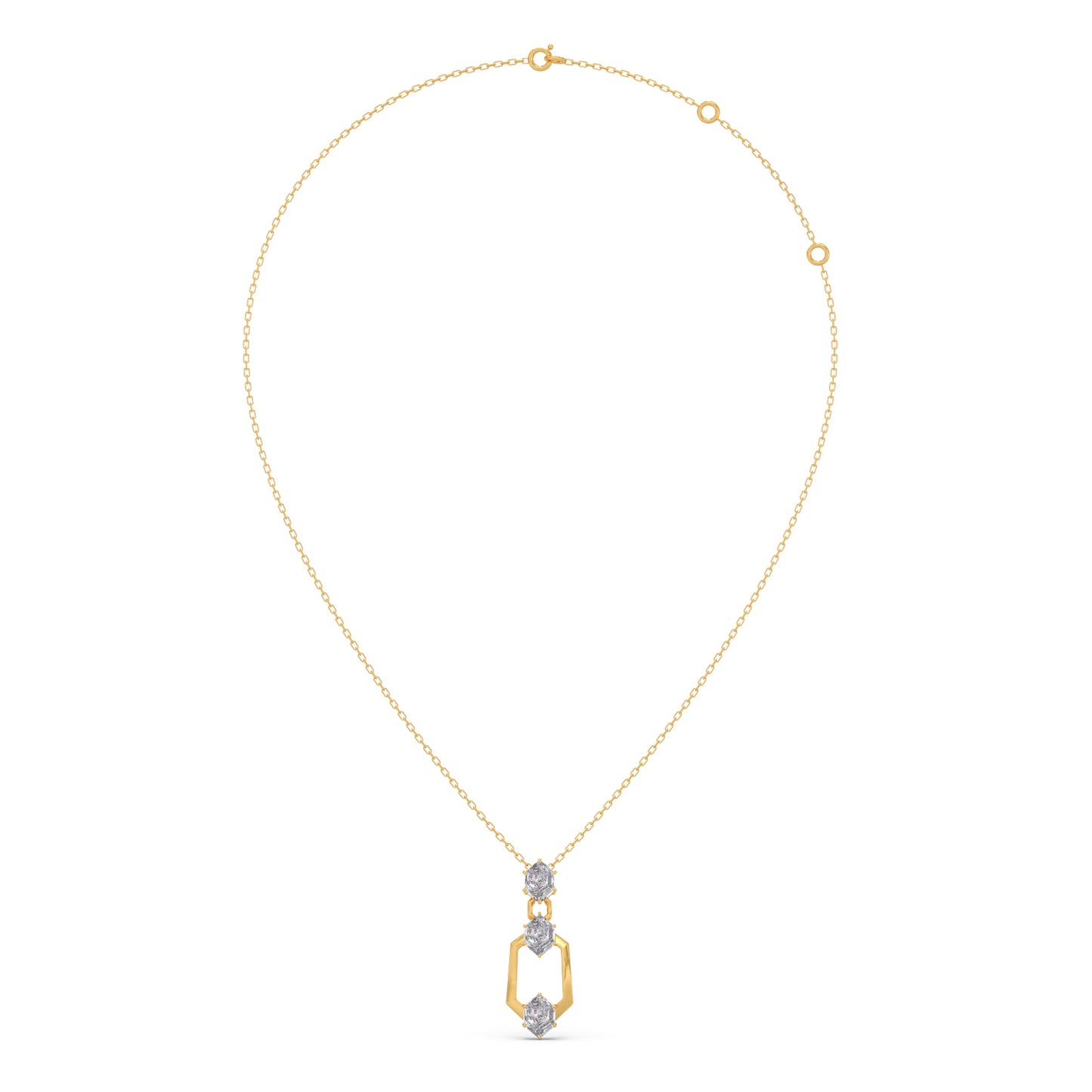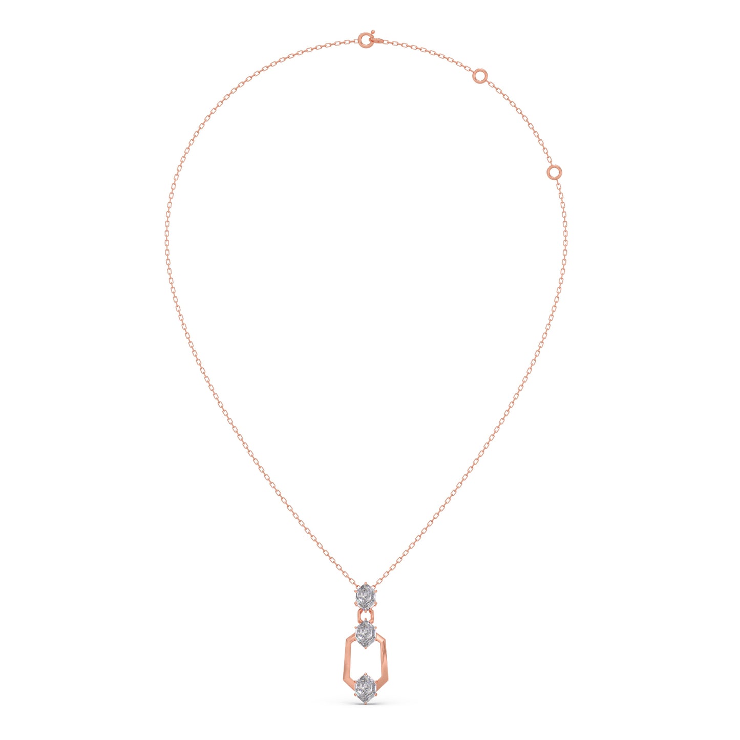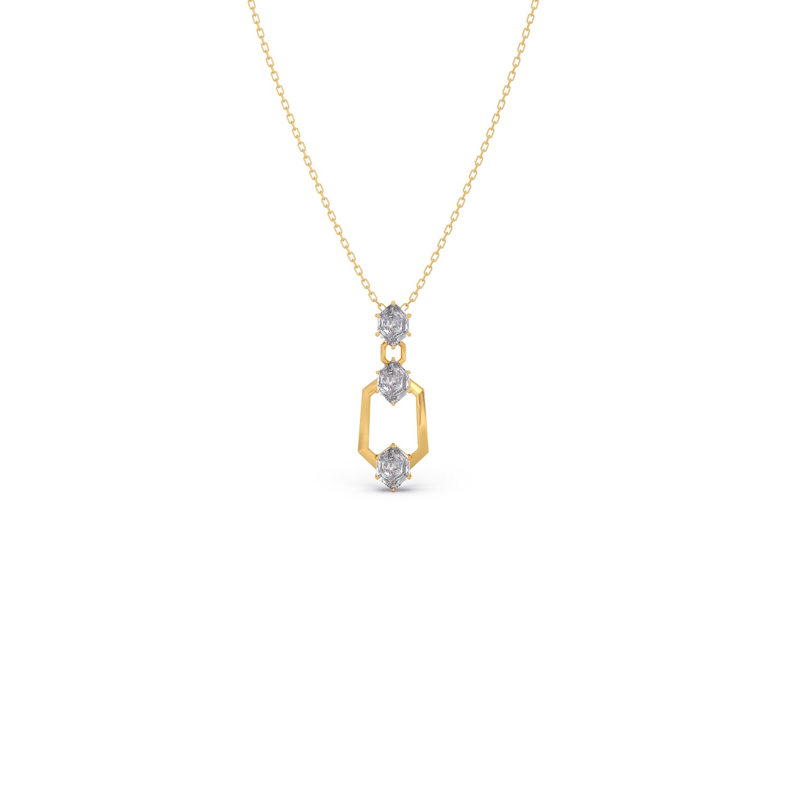 Three Hexa solitaires—0.50 ct., 0.35 ct., and 0.25 ct.—align gracefully in a perfect line, accented by a 0.008 ct. round diamond. A symbol of balance and transformation, this elegant, symmetrical pendant captures life’s journey with understated brilliance.