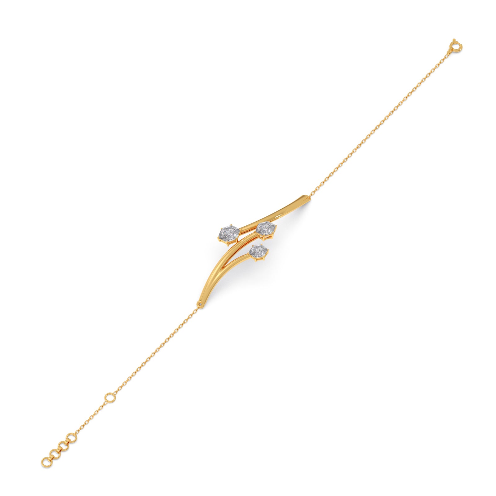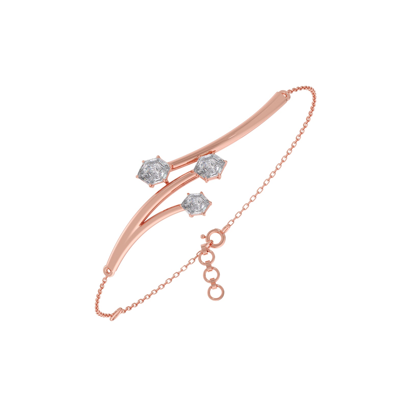 Three Hexa Diamonds—0.45 ct., 0.35 ct., and 0.25 ct.—branch out like new growth, joined by the signature 0.008 ct. Round Diamond in a bezel. Inspired by nature’s rhythm, this design symbolizes transformation through divergence, strength, and graceful evolution.