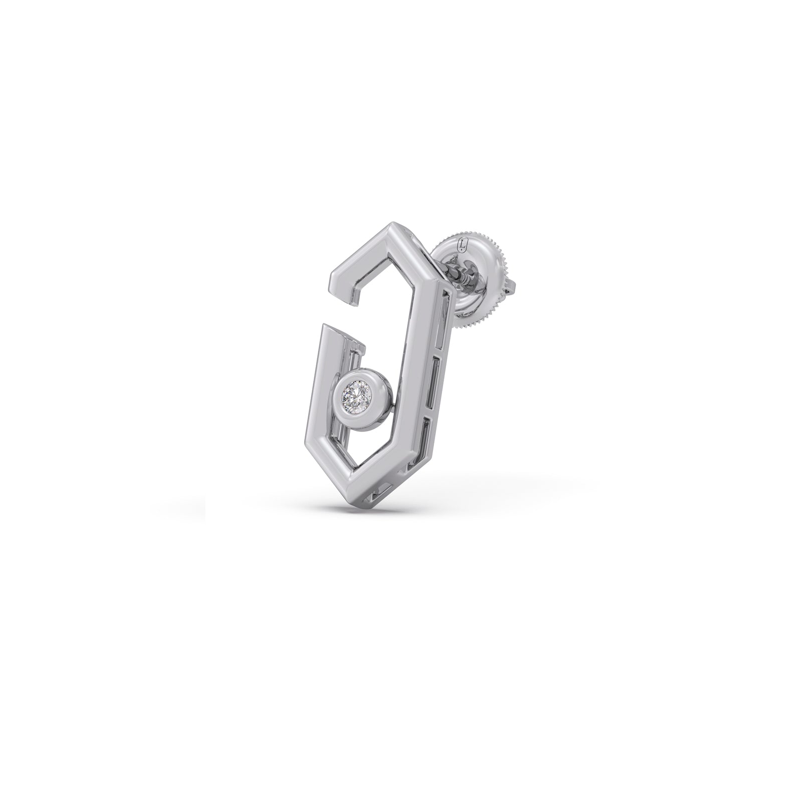 This Hexora-Moving Diamond Stud Earrings features an elongated hexagonal shape. A single brilliant round-cut diamond is suspended in a "floating" style within a hexagonal frame. These earrings have a bold, architectural profile that makes them suitable for both professional environments and evening wear.