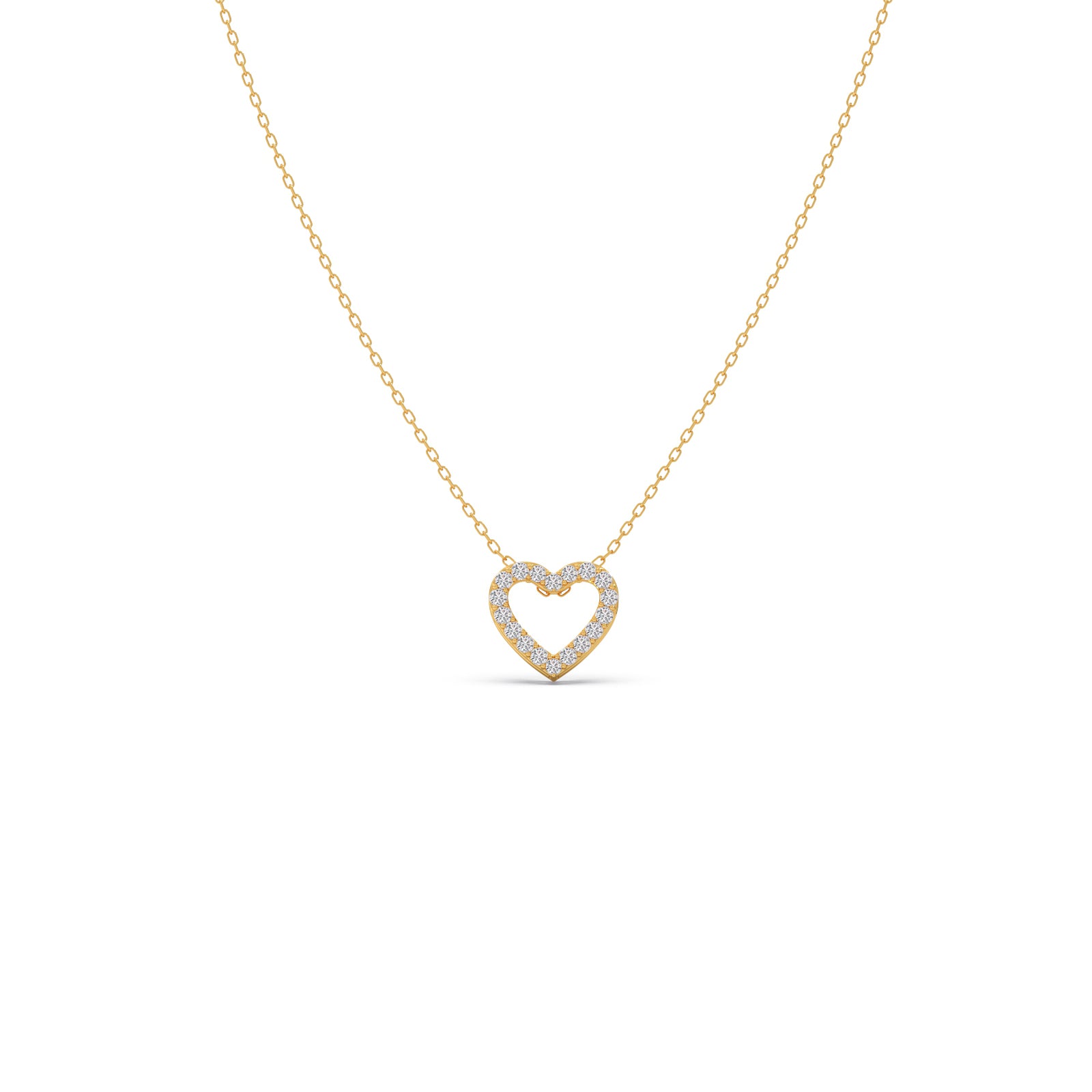 The Hollow Heart Diamond Pendant showcases a graceful heart-shaped outline adorned with round diamonds, offering a timeless expression of love with delicate sparkle and refined elegance.