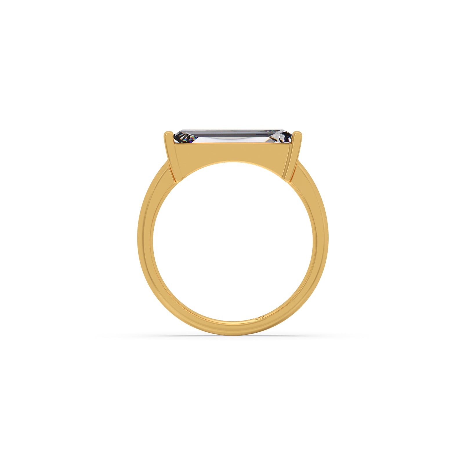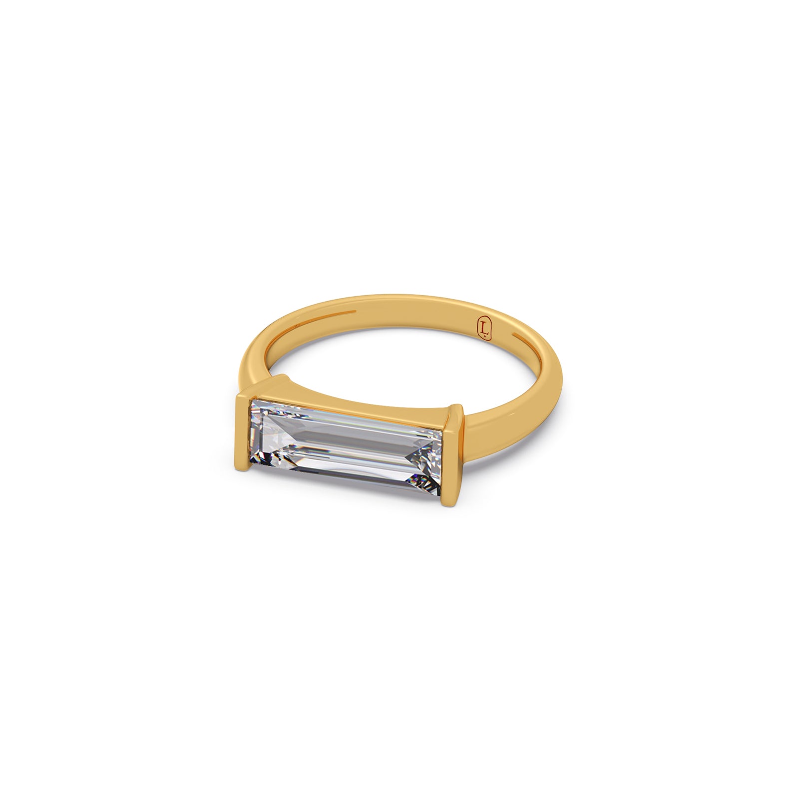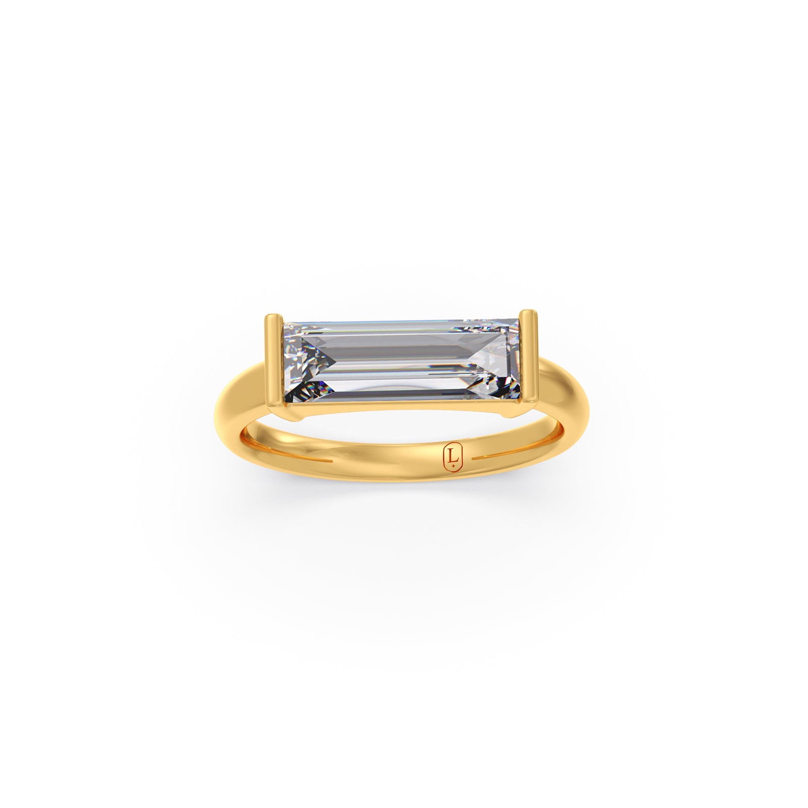 Discover modern minimalist elegance with the Horizon Baguette Diamond Ring. This sophisticated piece features a striking baguette-cut diamond set horizontally, creating a clean, architectural line across the finger. Crafted in lustrous gold, its sleek design offers understated brilliance and contemporary charm. Perfect for those who appreciate refined simplicity and distinctive style.