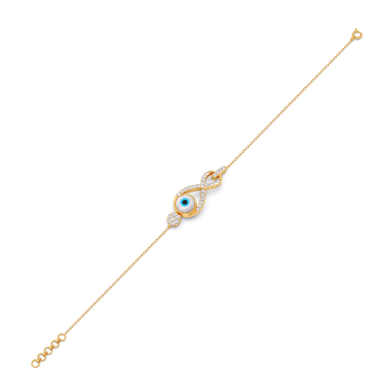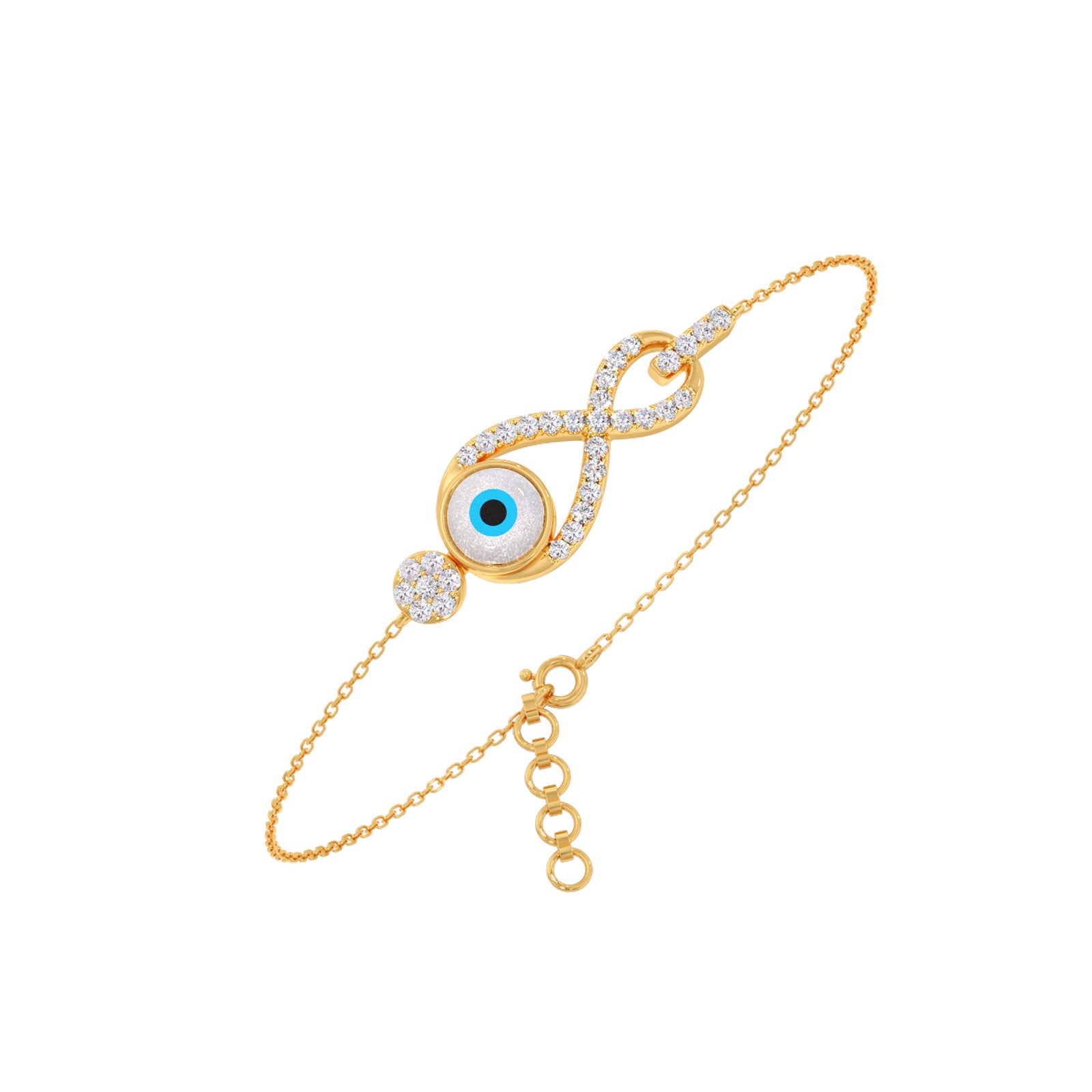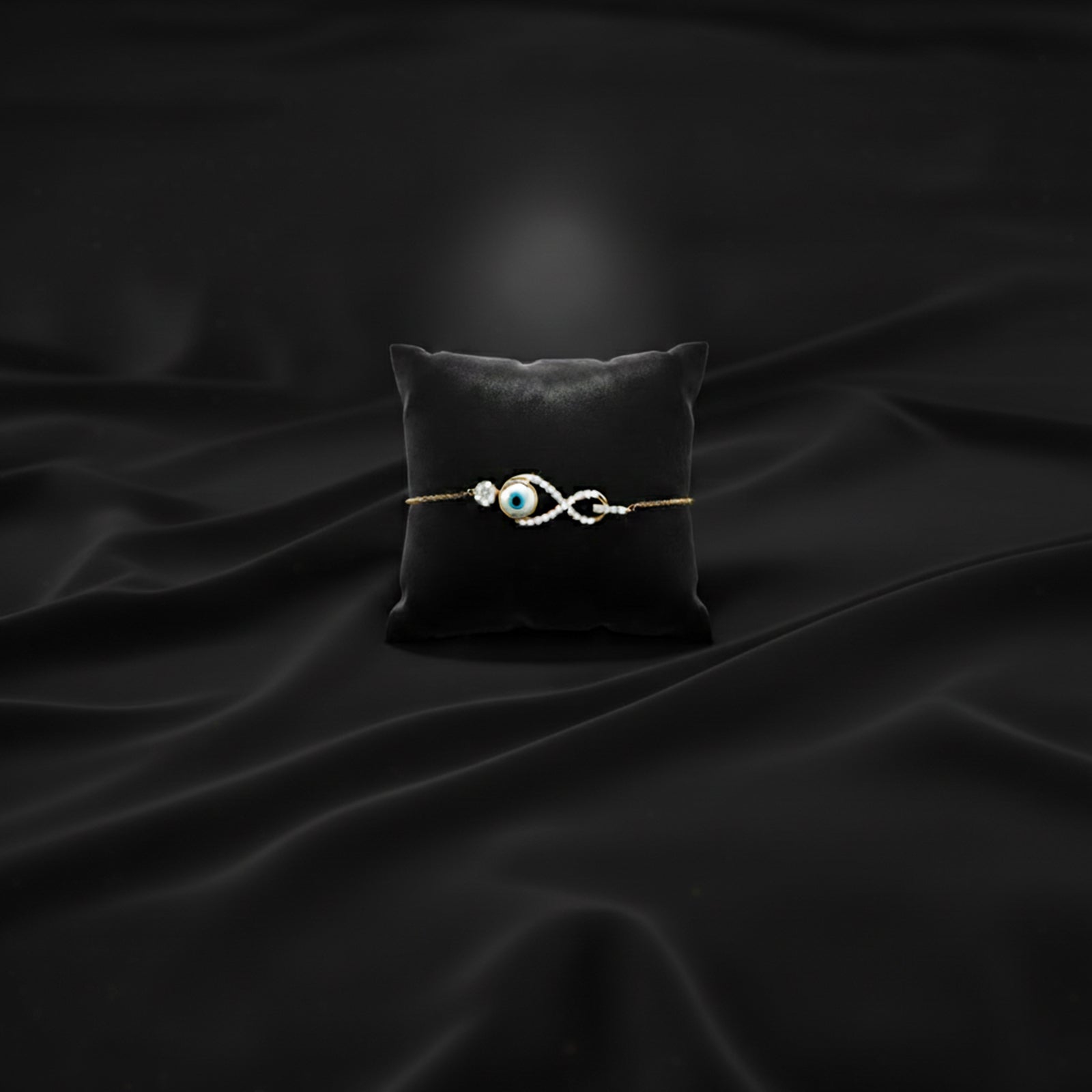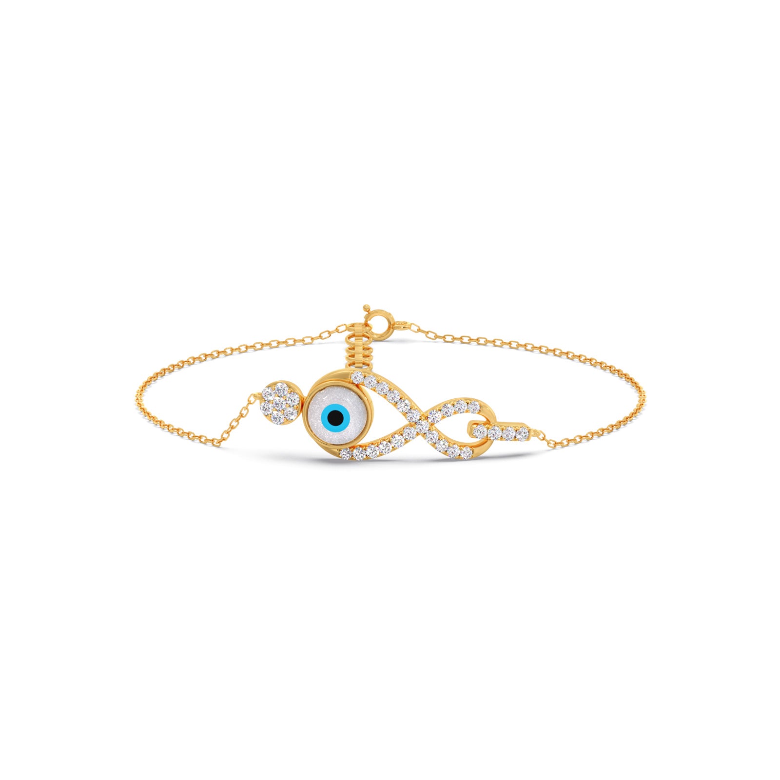 A captivating blend of gold, diamond sparkle, and the classic Evil Eye. The charm's intricate, flowing design loops into an Infinity symbol, creating a brilliant statement. It’s an elegant, everyday accessory that offers both luxury and mystical allure.