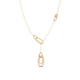 This lariat necklace features a sleek, adjustable chain culminating in a captivating drop pendant. Its elegant design offers a modern twist on classic style. The elongated silhouette and pendant create a striking focal point, perfect for adding sophistication to any ensemble. A versatile piece for both day and evening wear.