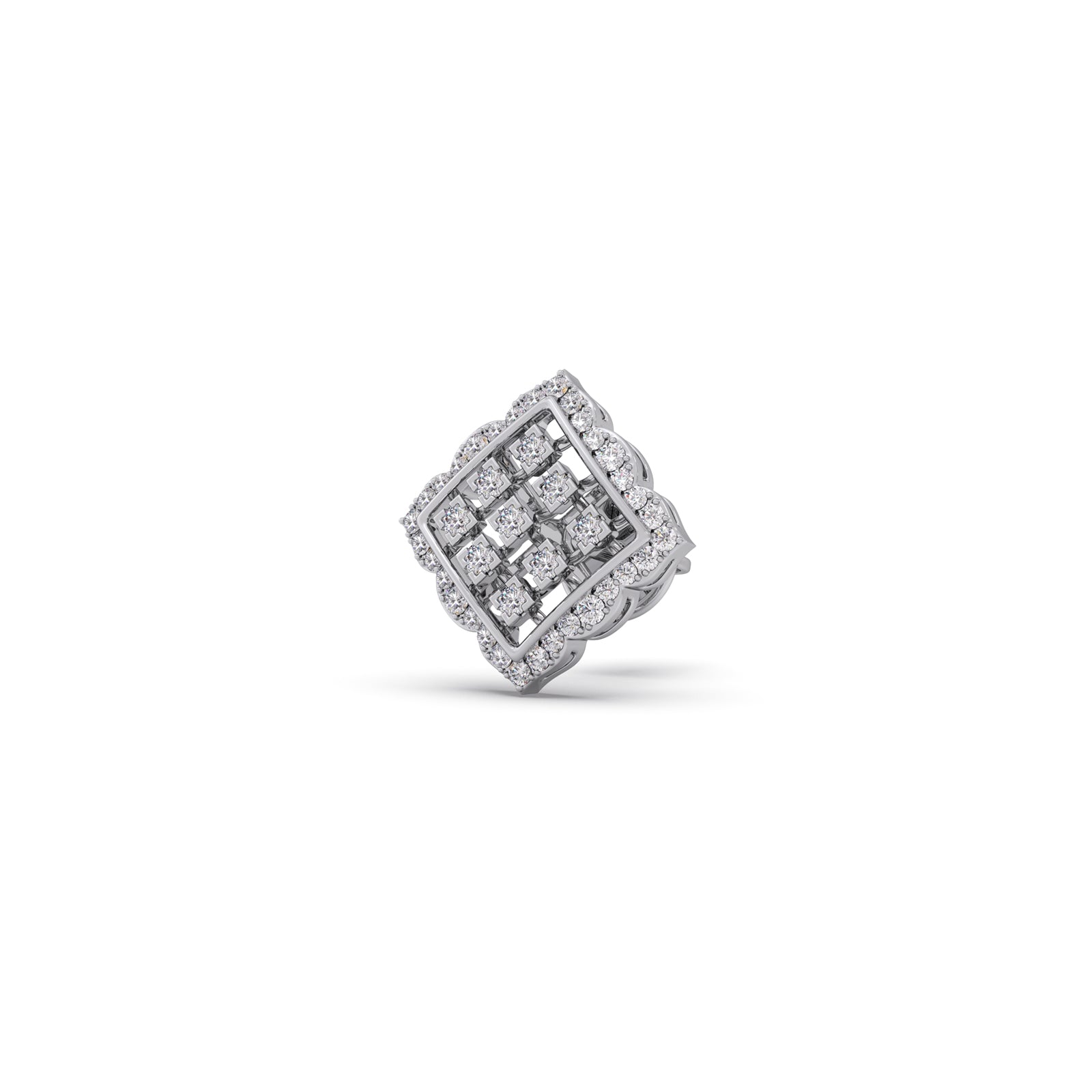 Modern structure, timeless sparkle. The Lattice Rhombus Earrings reinvent the classic stud with a bold, round diamond-filled grid pattern. The unique geometric shape and meticulous construction deliver continuous, unforgettable brilliance and contemporary luxury.