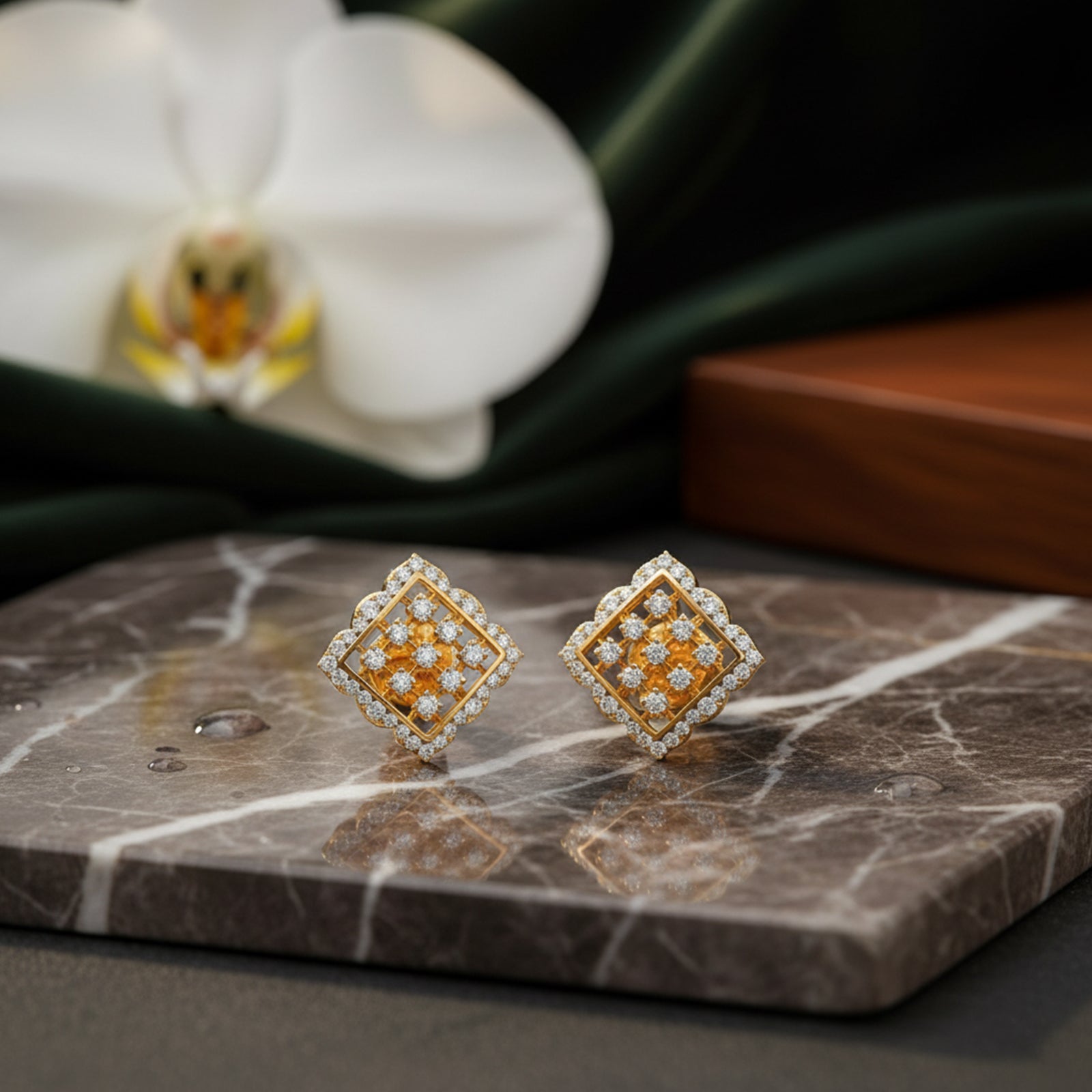 Lattice Rhombus Diamond Stud Earrings