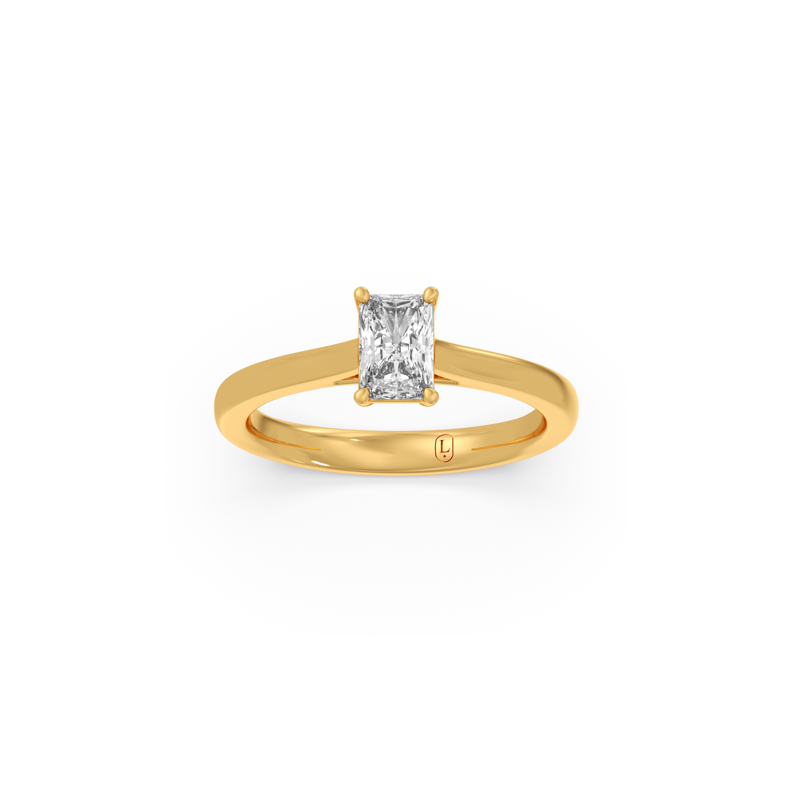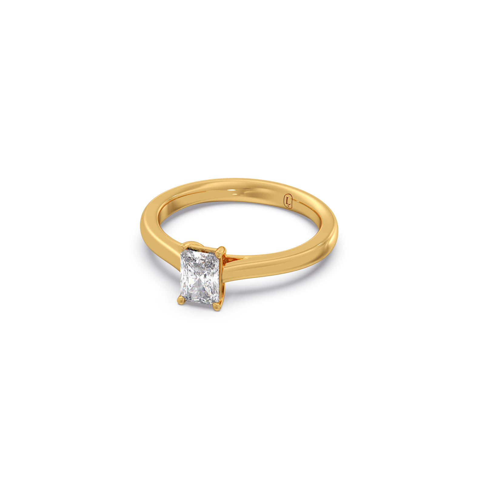 This ring showcases a stunning 0.750ct. Emerald-cut Solitaire Diamond, renowned for its clean lines and sophisticated sparkle. Set in a timeless solitaire design, this ring exudes refined elegance and modern grace perfect for everyday wear