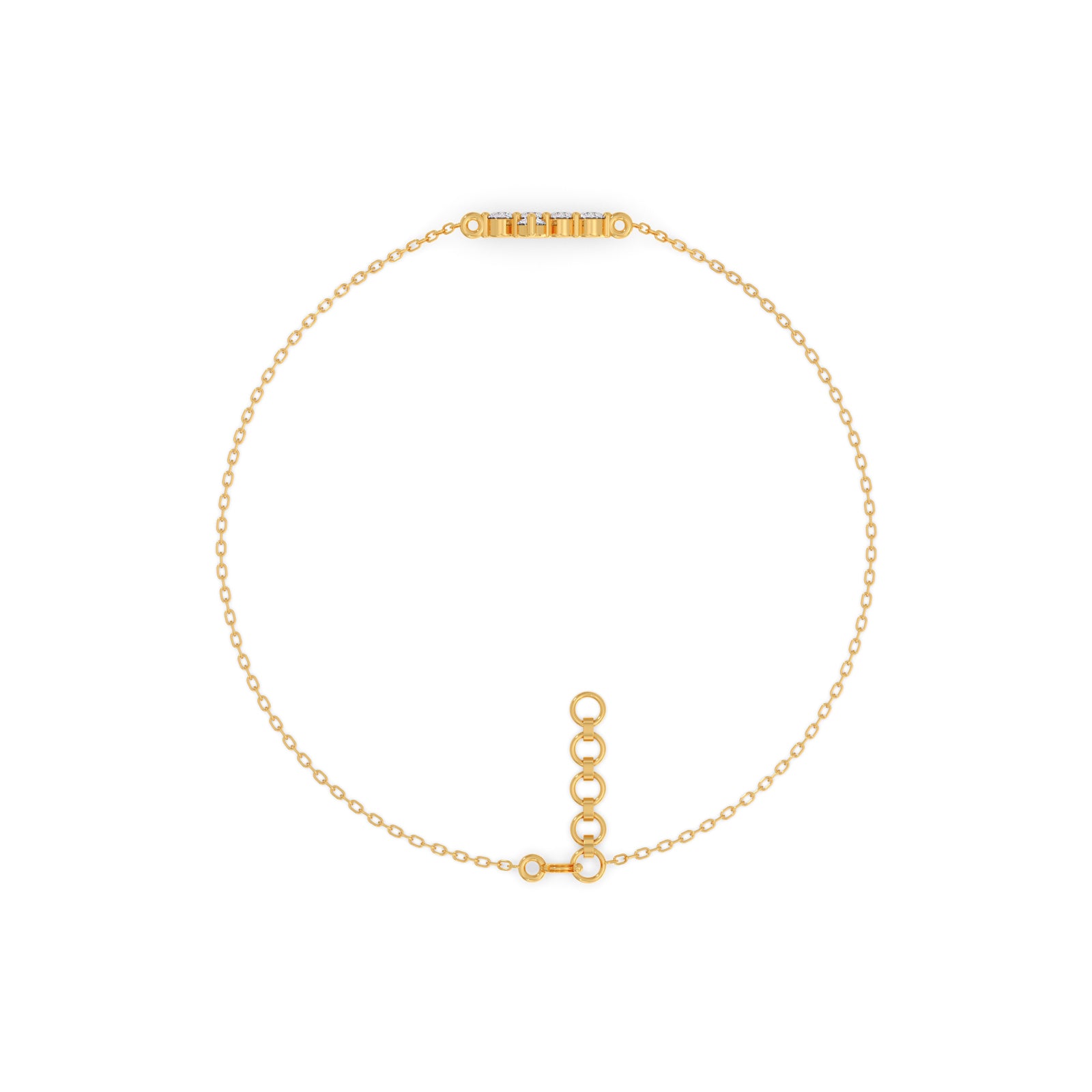 Minimal yet luminous, the Linear Spark Bracelet is designed with round diamonds arranged in a fine line and secured by micro-prong settings. Its lightweight design makes it perfect for daily elegance — a subtle spark that never fades.