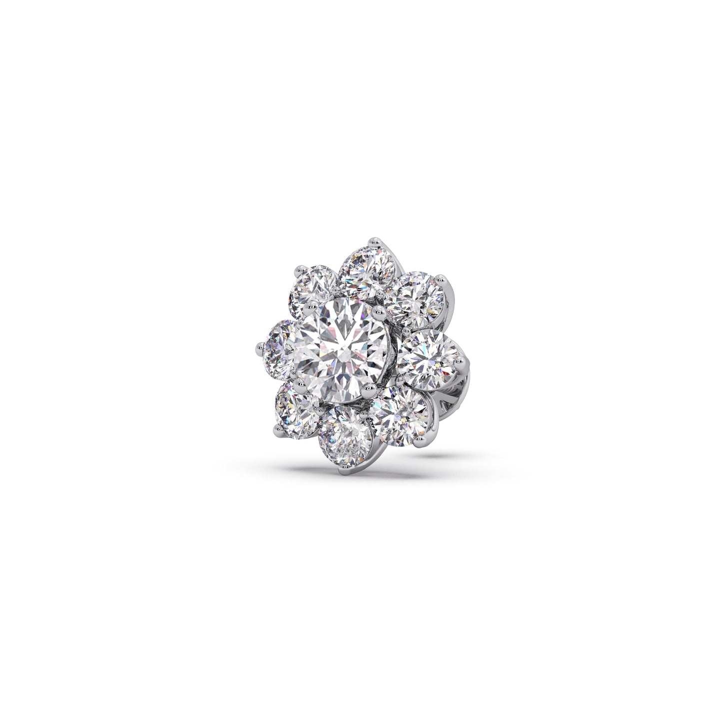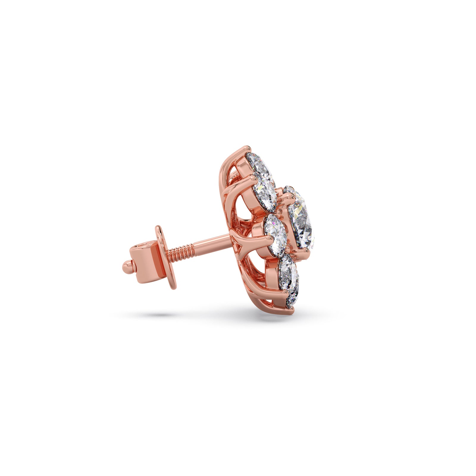 Adorn your ears with the serene beauty of our Lotus Petal Round Diamond Studs. These exquisite earrings feature brilliant round diamonds meticulously arranged to form delicate lotus petals, creating a captivating floral design. Perfect for adding a touch of sophisticated sparkle and timeless elegance to any ensemble, from daily wear to special occasions.