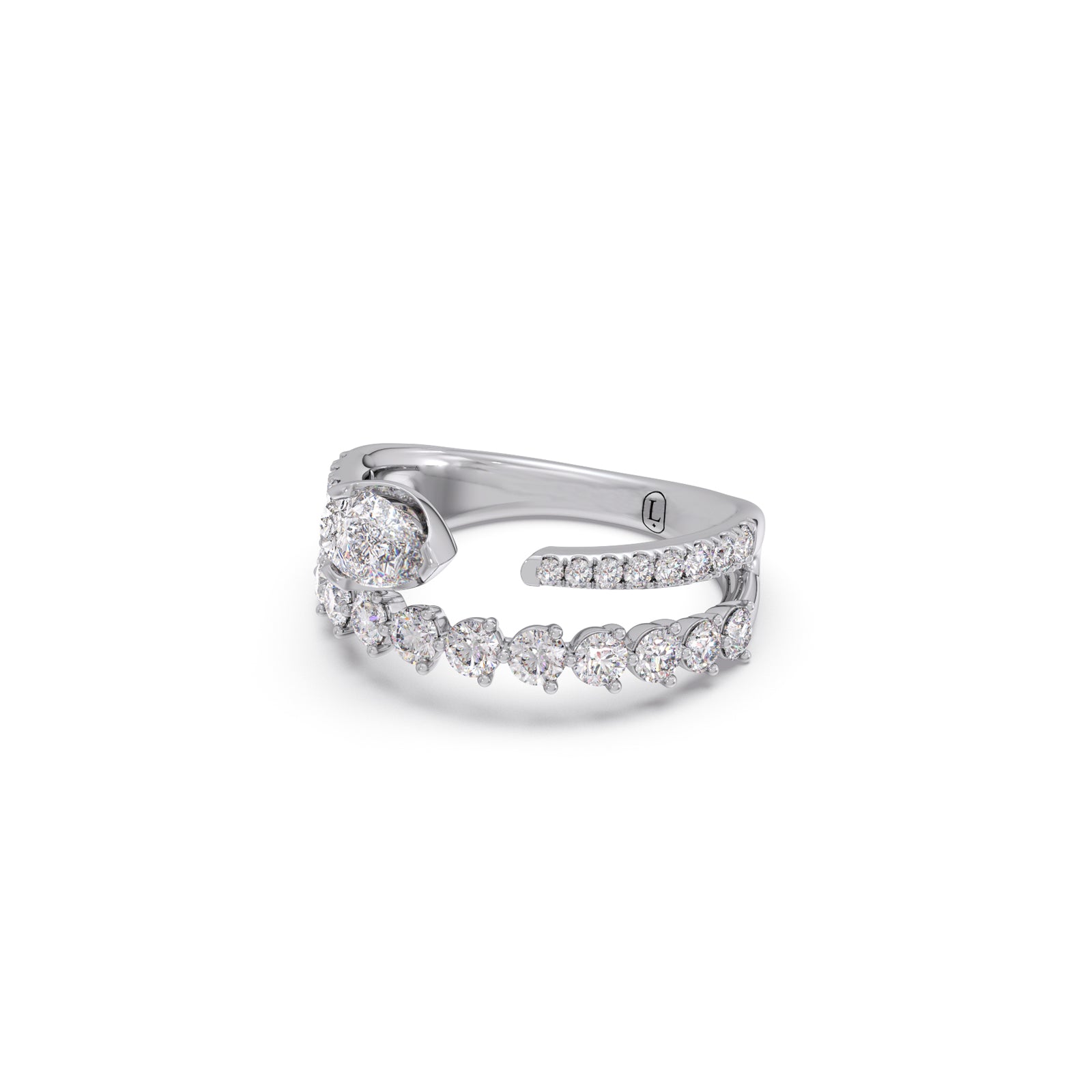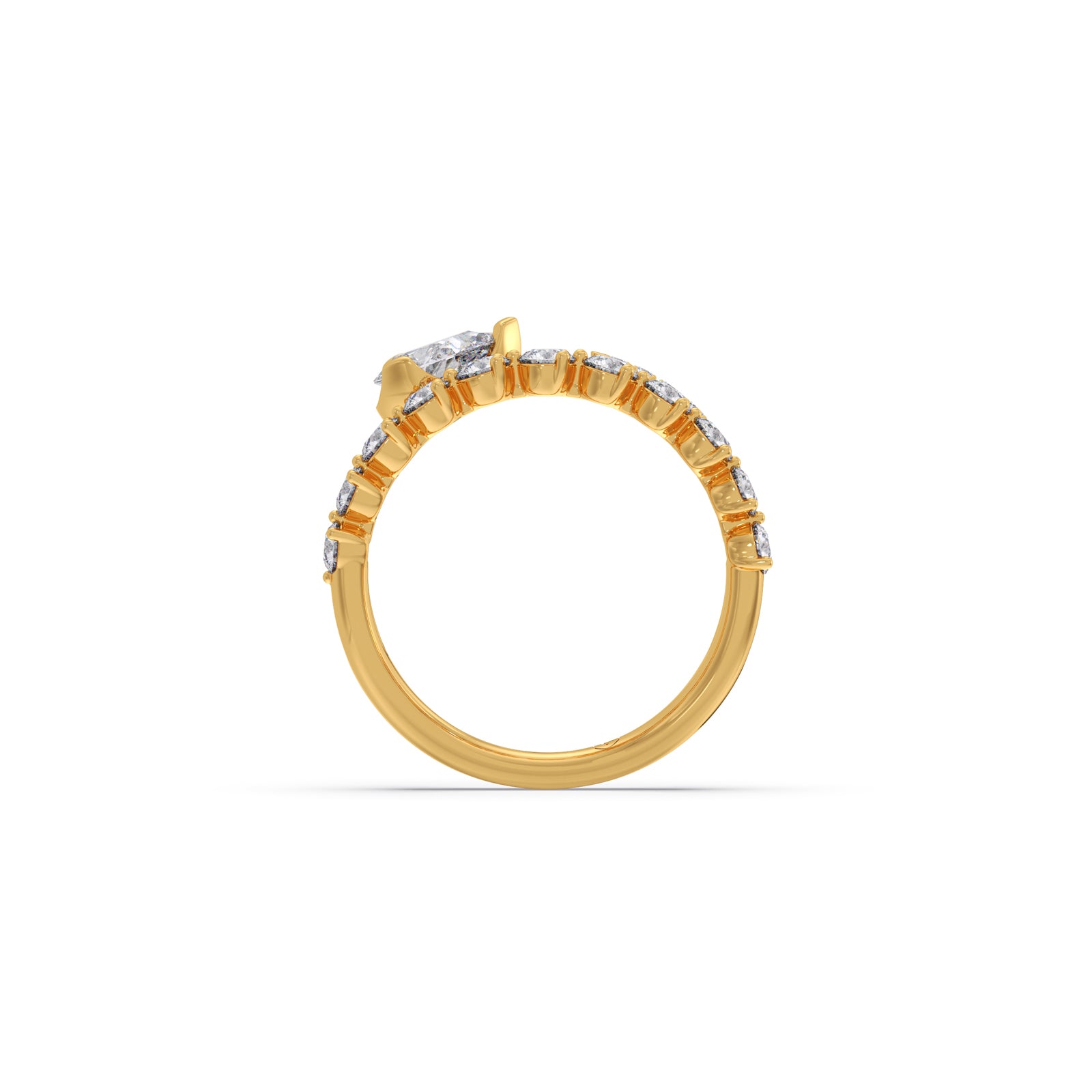 Adorn your hand with our Luminous Curve Diamond Ring, a masterpiece of subtle sparkle. This exquisite ring features a graceful curve, meticulously set with shimmering diamonds that catch the light from every angle. It's an effortlessly elegant piece, perfect for everyday sophistication or a special occasion.