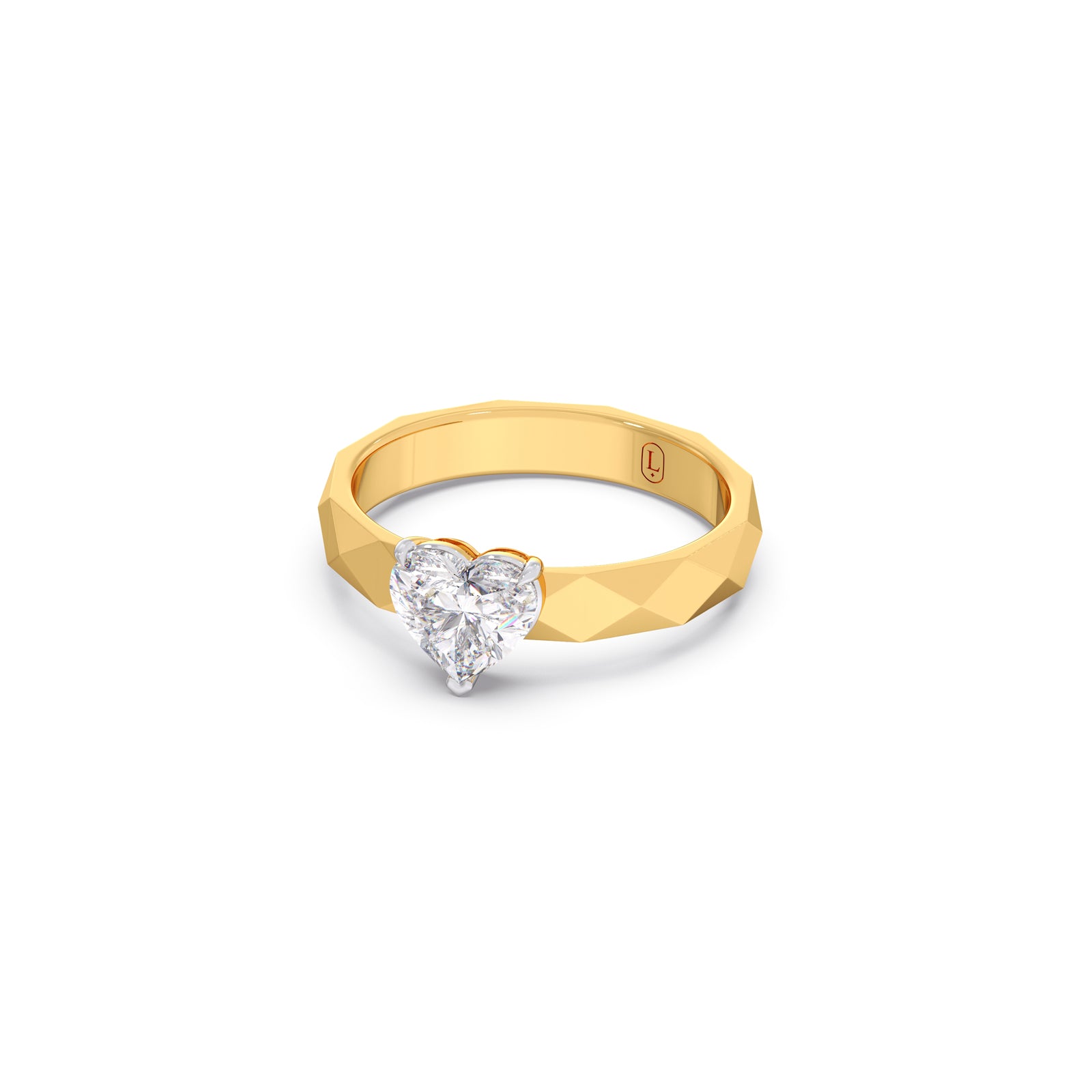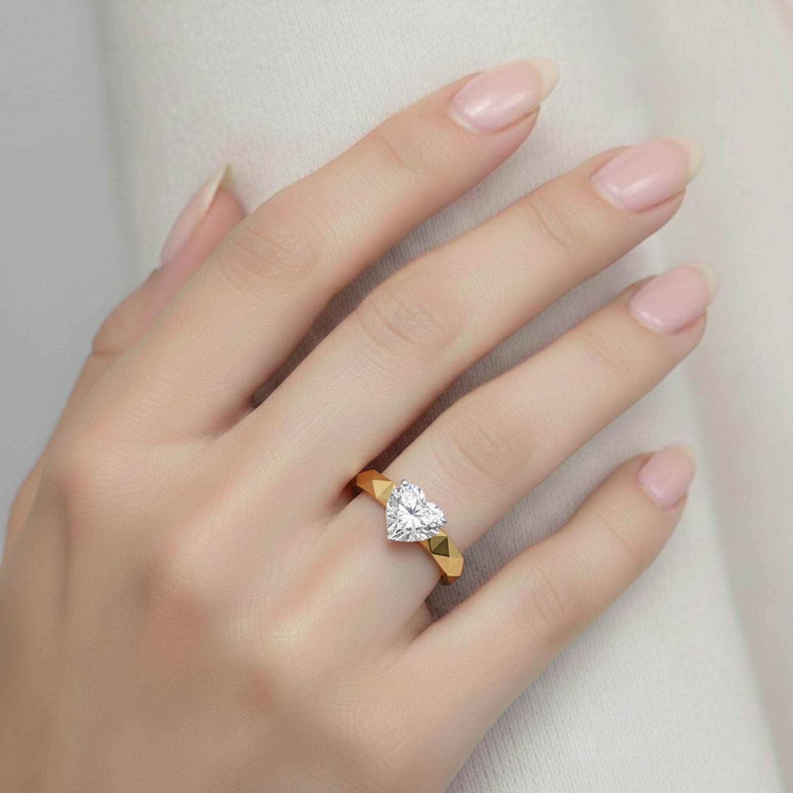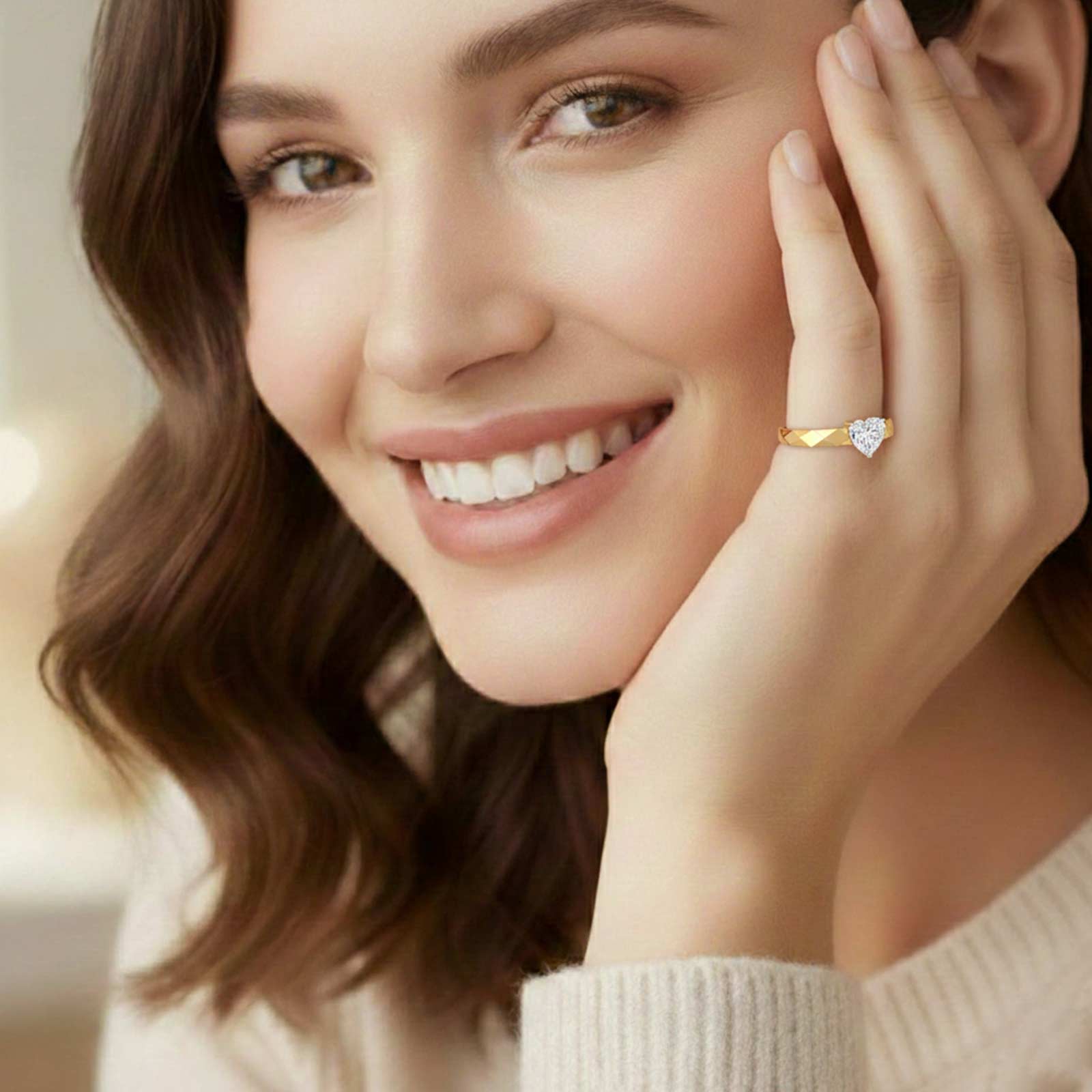A brilliant heart-shaped diamond set on a sleek, polished band, capturing pure elegance and timeless romance with every sparkle. A perfect symbol of glowing, heartfelt love.