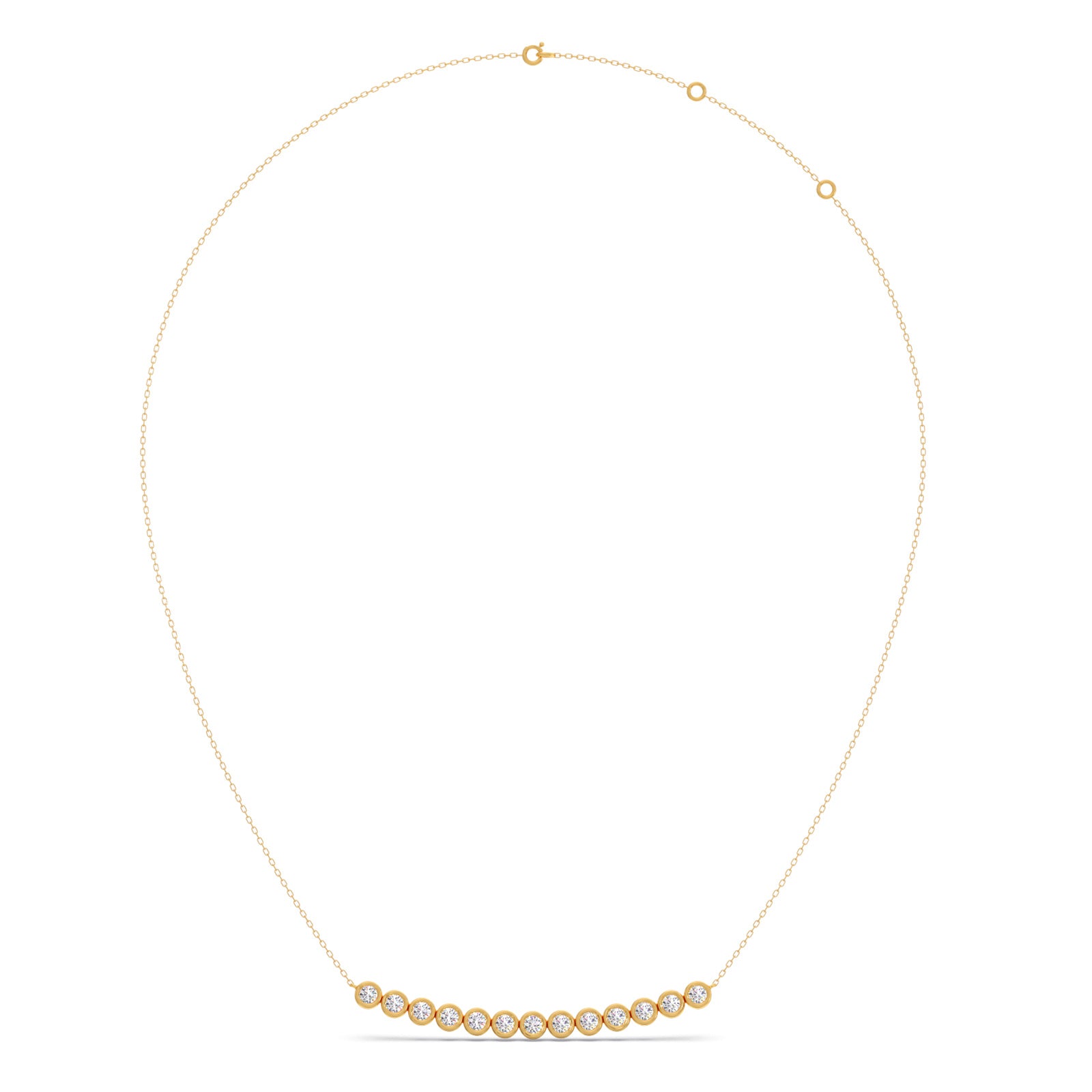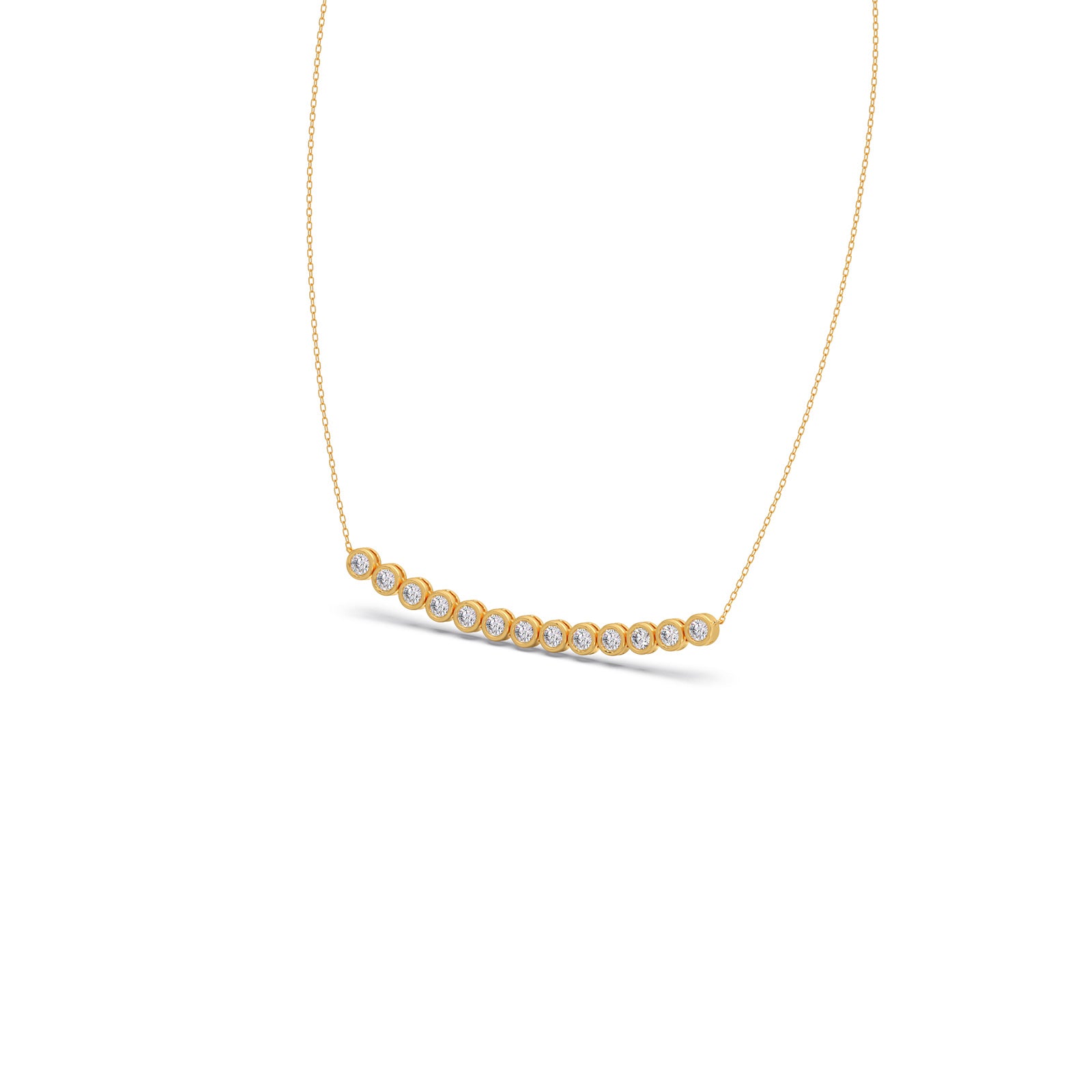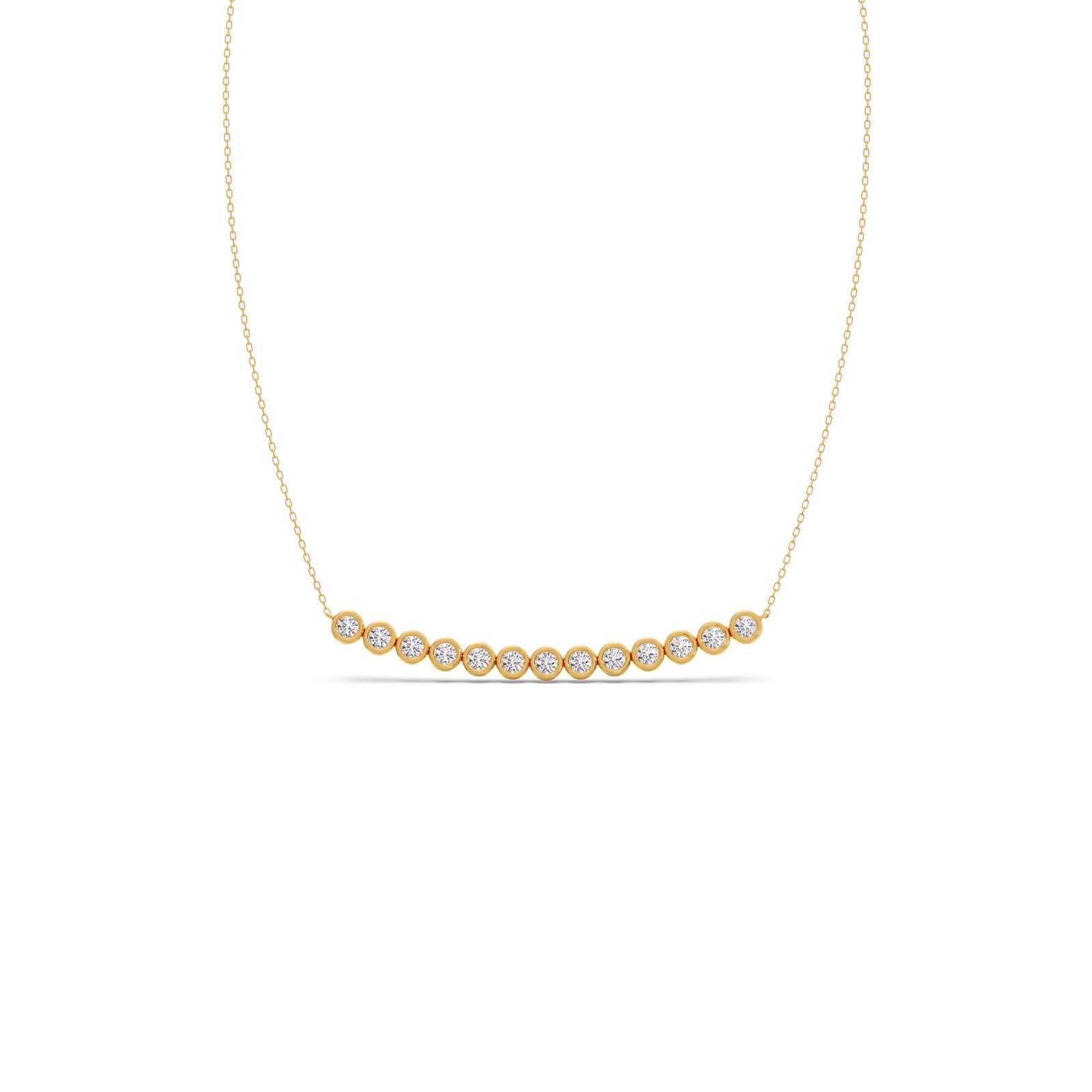 Refined and elegant, the Lustrous Line Diamond Necklace features a seamless row of sparkling Round Diamonds, elegantly set to create a fluid line of brilliance. Perfect for layering or wearing solo, this timeless piece adds sophisticated shimmer to any look—ideal for both everyday elegance and special occasions.