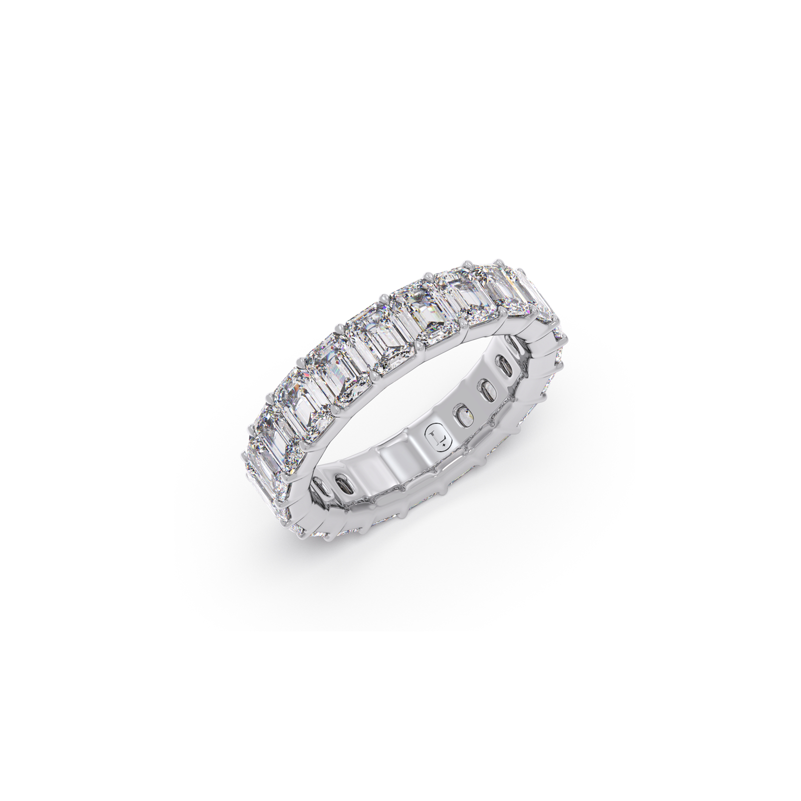 Indulge in timeless elegance with this exquisite full eternity ring. Featuring an unbroken circle of dazzling emerald-cut diamonds, it radiates unparalleled brilliance and sophisticated charm. A breathtaking symbol of everlasting love.
