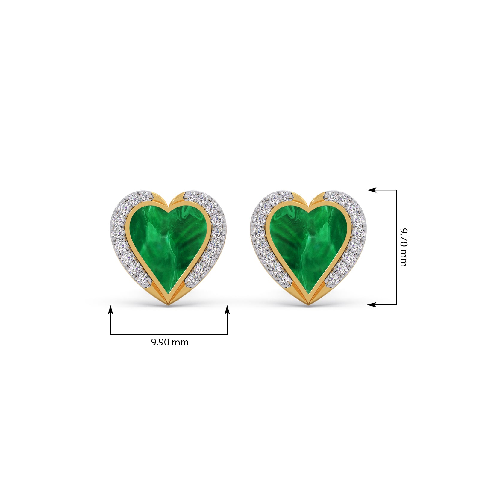 This Malachite Heart Diamond Stud Earrings features a Green MOP Hearts Shape surrounded by round diamonds. This timeless design enhances sparkle and sophistication, making it the perfect choice for modern everyday wear.