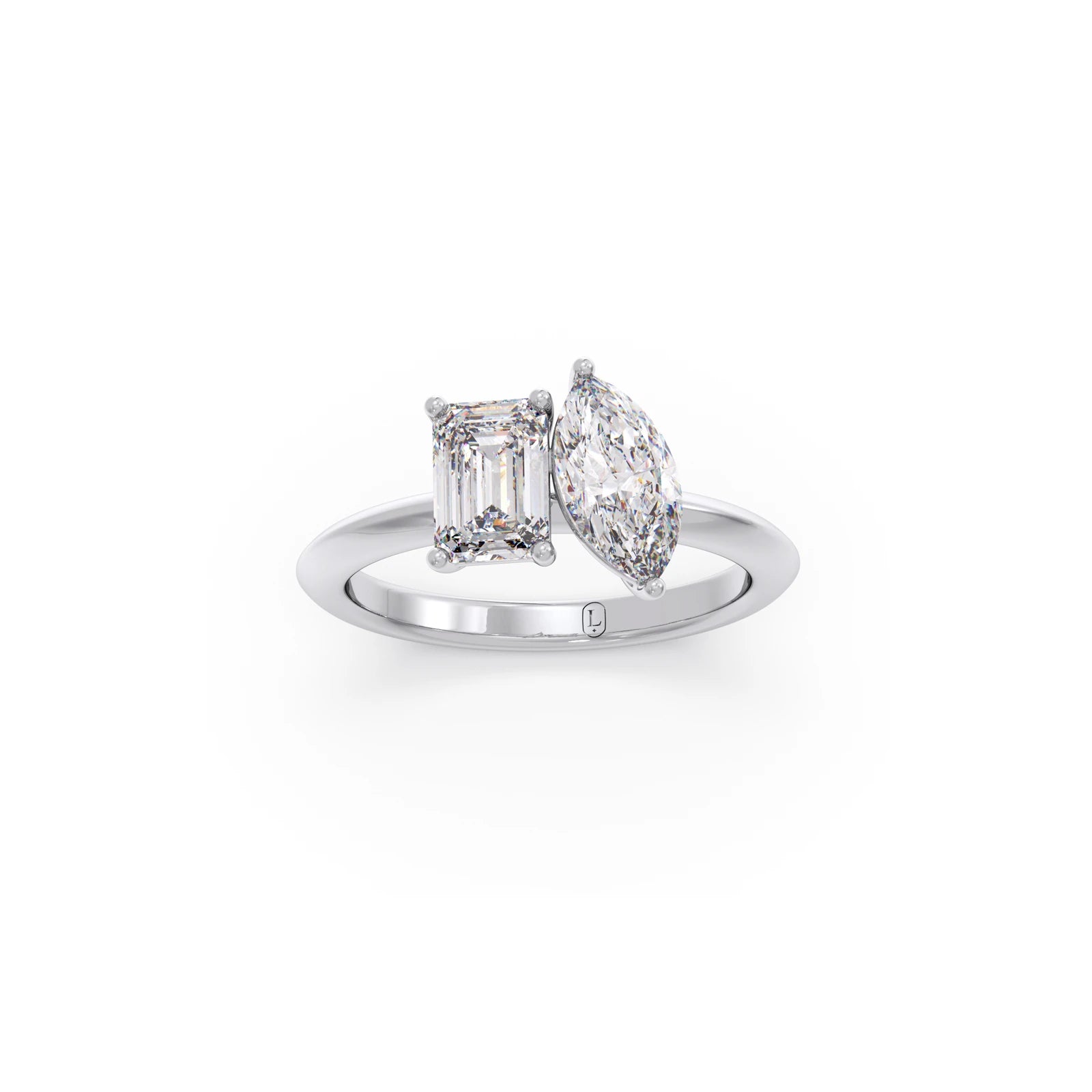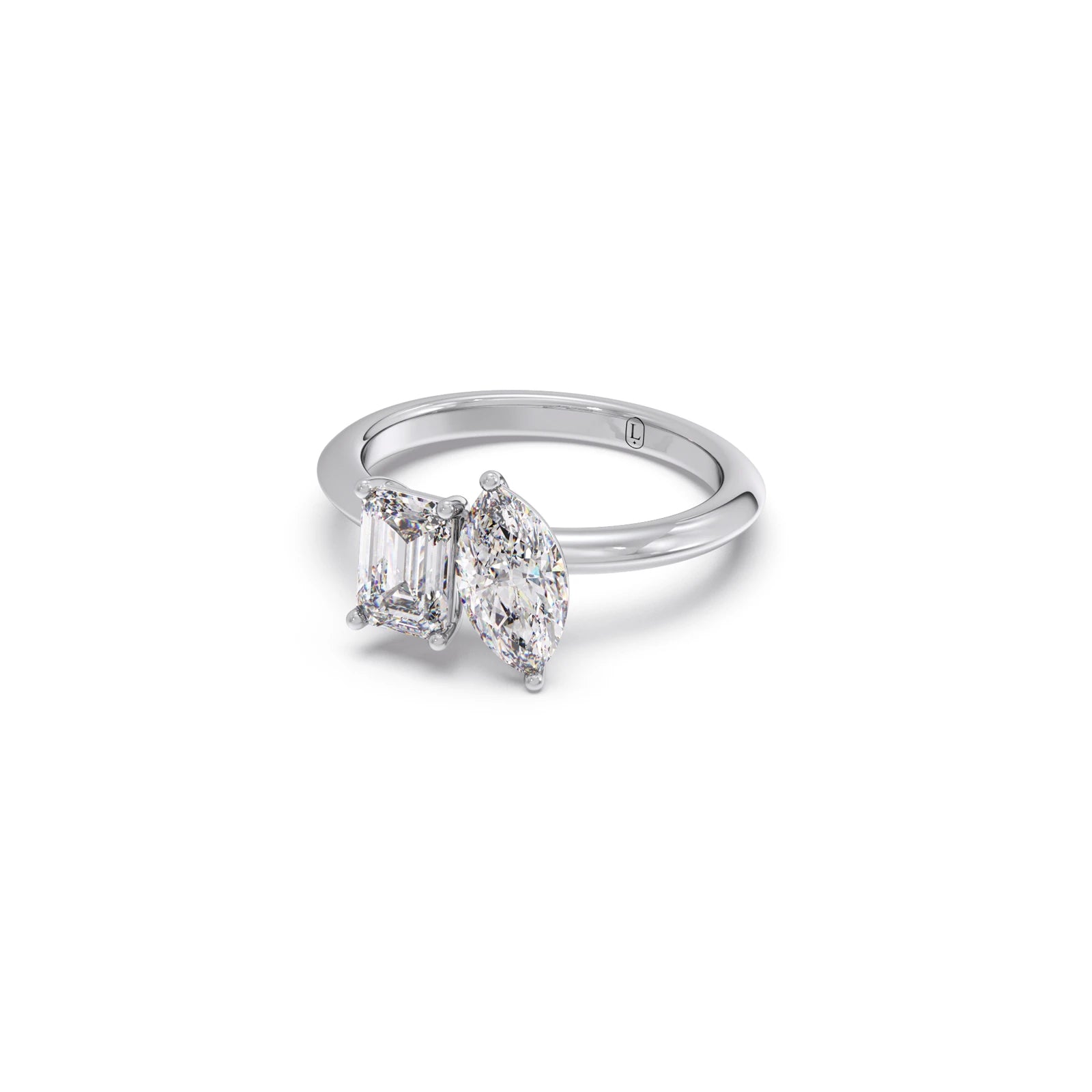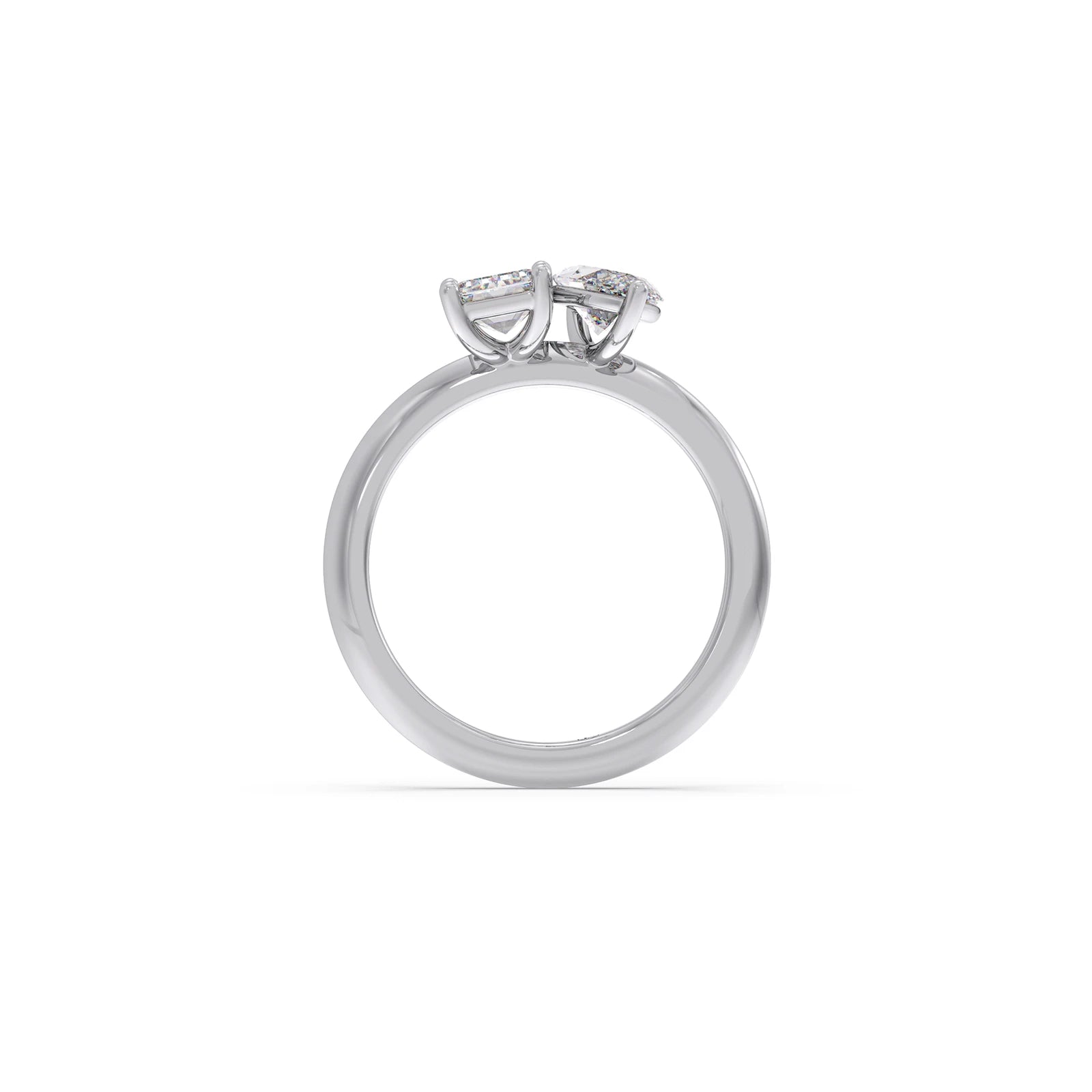 This ring is a radiant celebration of two unique souls coming together. The Emerald-cut diamond, known for its clean lines and clarity, symbolises truth, depth, and loyalty, like the calm strength one partner brings to the relationship. The Dual setting of stones describes the magnetic connection that pulls two people together no matter the distance or time. The Marquise-cut diamond, with its soft curves, represents passion, the spark that keeps love alive.