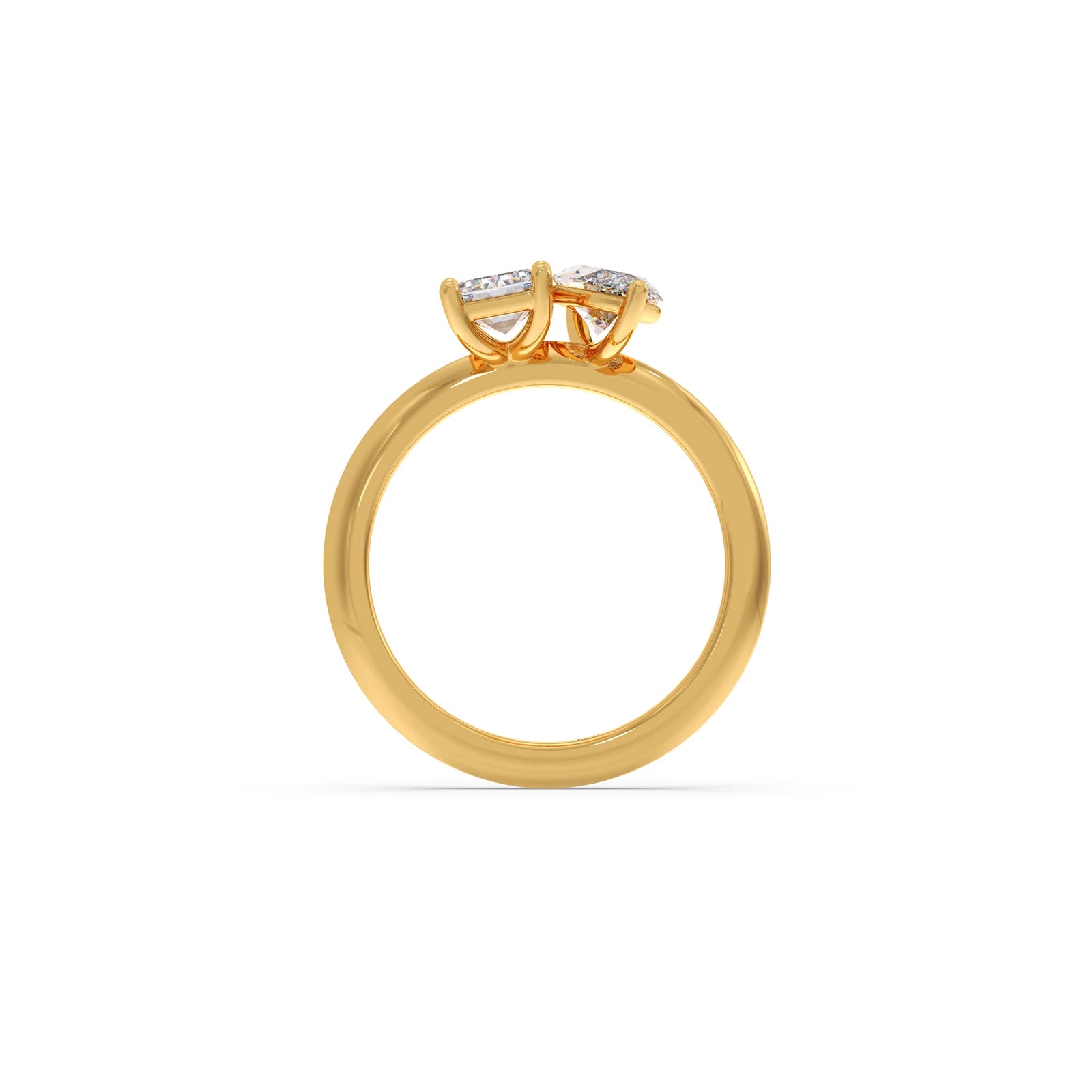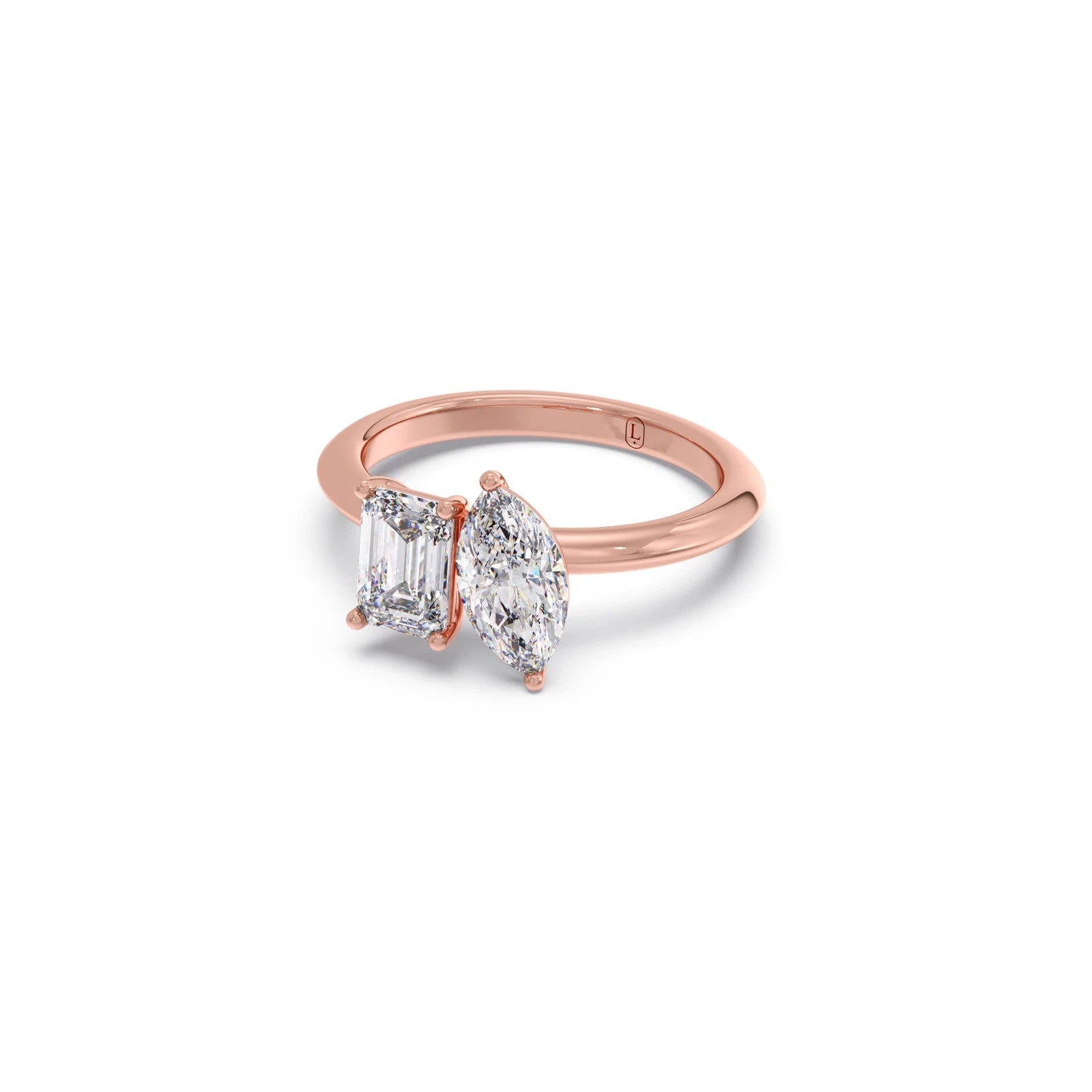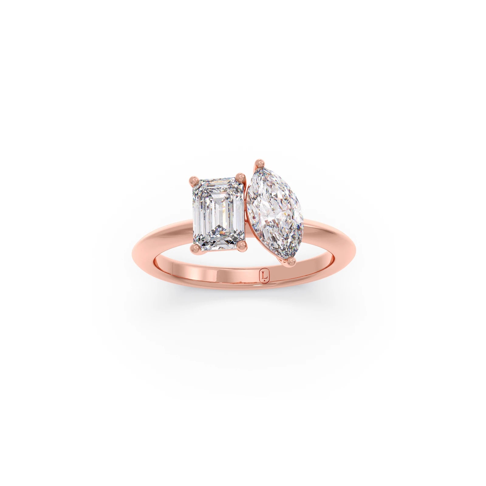 This ring is a radiant celebration of two unique souls coming together. The Emerald-cut diamond, known for its clean lines and clarity, symbolises truth, depth, and loyalty, like the calm strength one partner brings to the relationship. The Dual setting of stones describes the magnetic connection that pulls two people together no matter the distance or time. The Marquise-cut diamond, with its soft curves, represents passion, the spark that keeps love alive.
