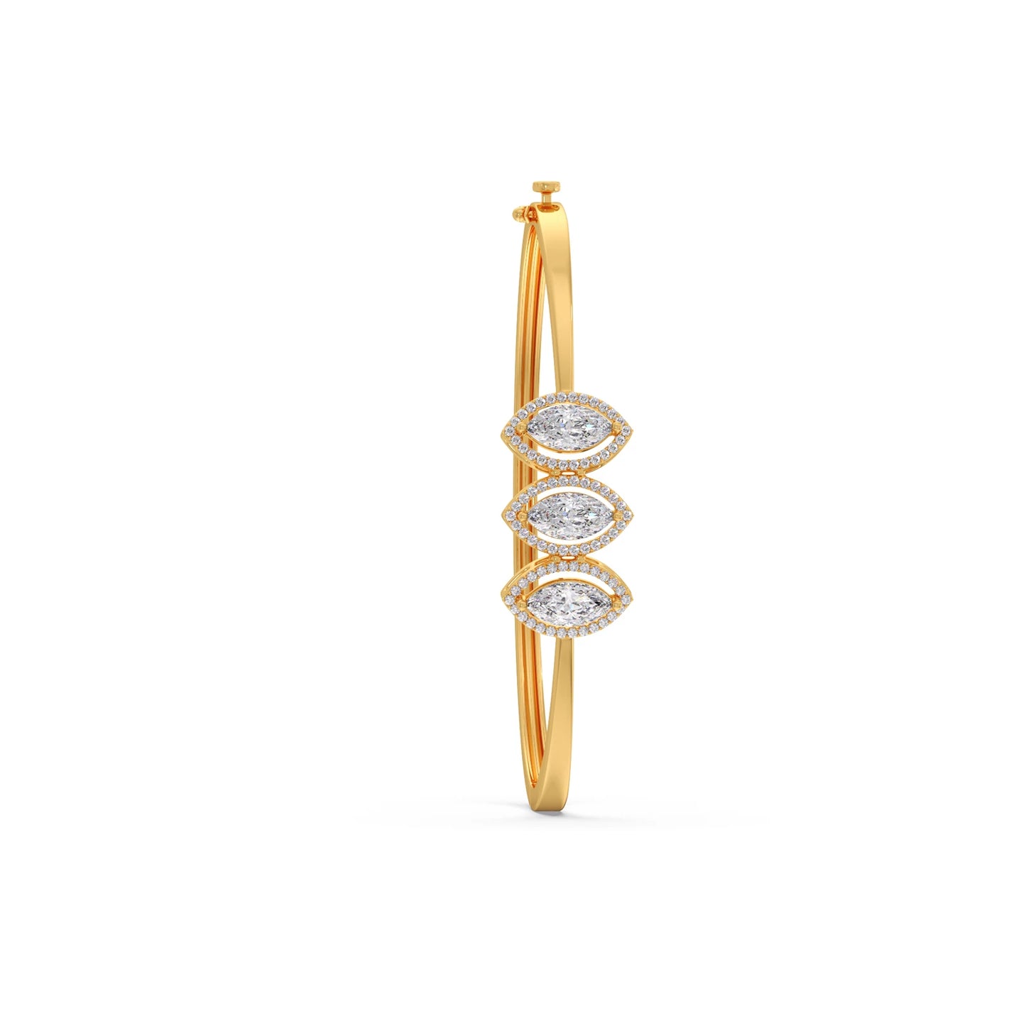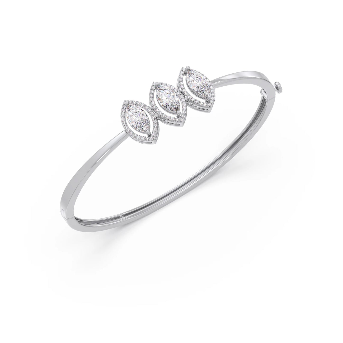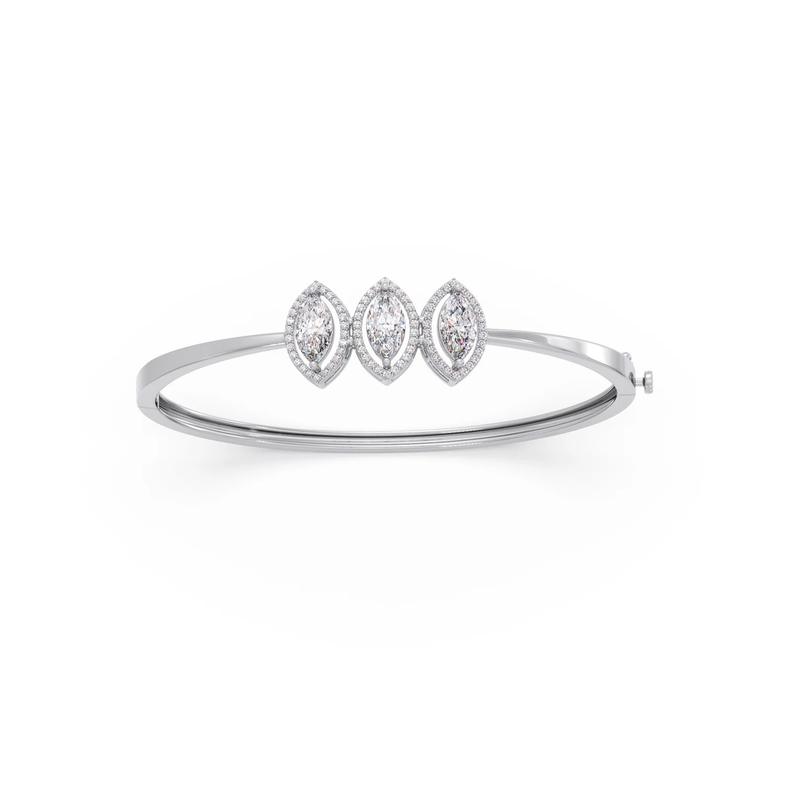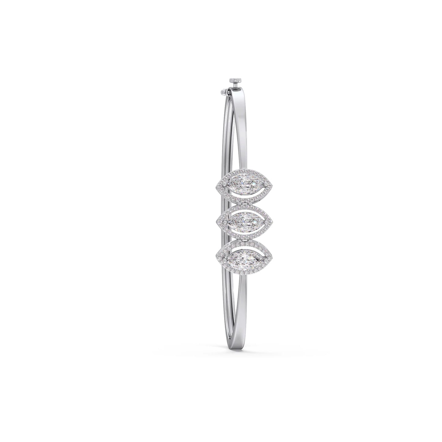 Elegant Marquise Cluster Halo Diamond bracelet featuring shimmering Pear and Round Diamonds in a Classic Kada design. This timeless piece blends brilliance with sophistication, perfect for special occasions or everyday luxury.