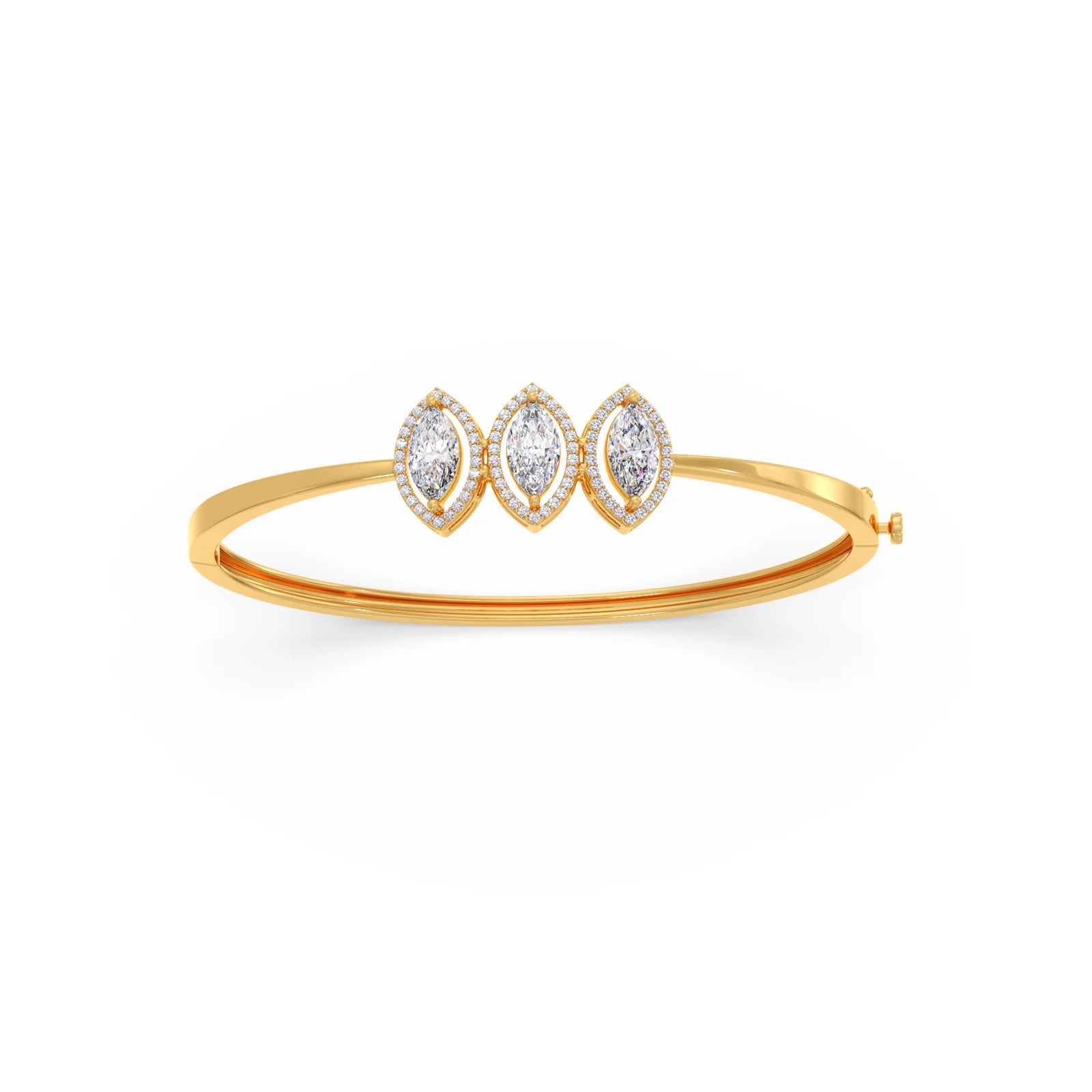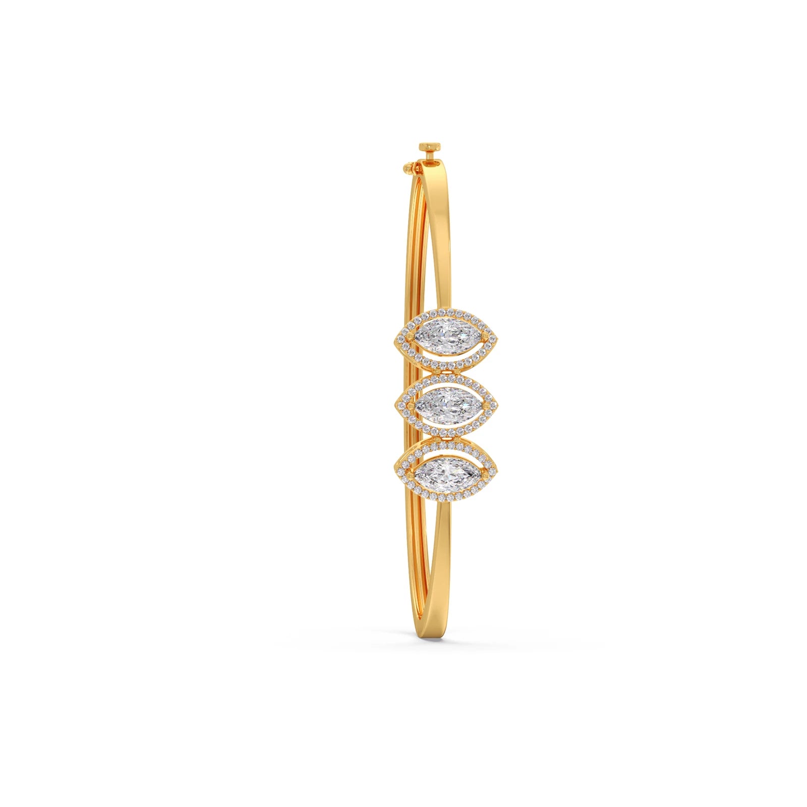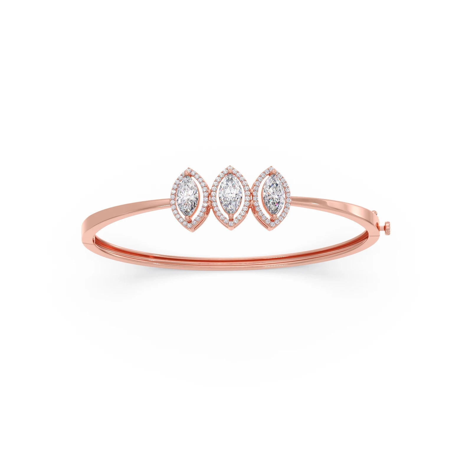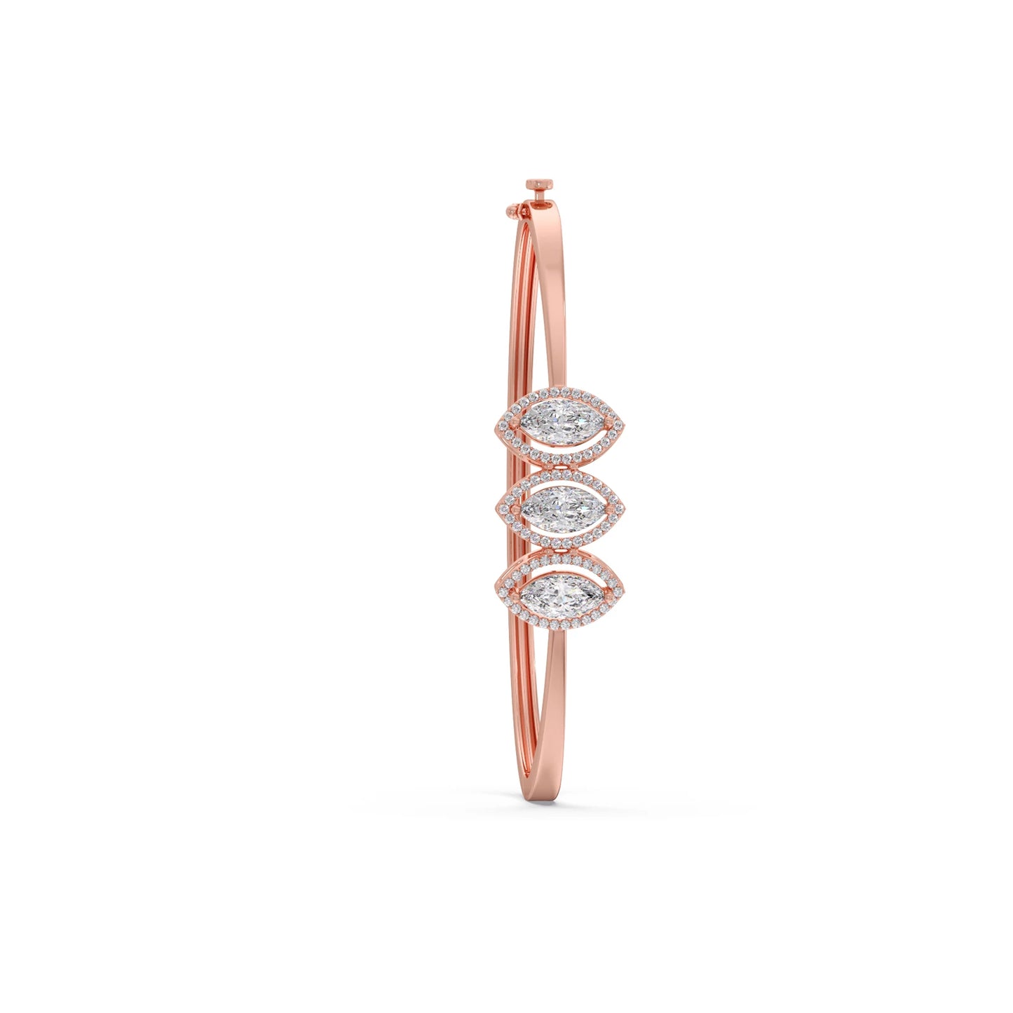 Elegant Marquise Cluster Halo Diamond bracelet featuring shimmering Pear and Round Diamonds in a Classic Kada design. This timeless piece blends brilliance with sophistication, perfect for special occasions or everyday luxury.