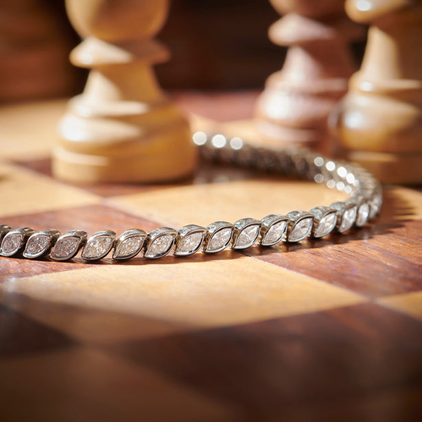 With 47 Marquise-cut Lucira Grown Diamonds totaling 3.334 ct., this tennis bracelet redefines classic radiance through the sleek elegance of bezel setting. Each diamond—elongated and luminous—flows seamlessly into the next, echoing movement and grace in every angle. Thoughtfully crafted for everyday brilliance, it’s a quiet statement of individuality, rhythm, and strength—made for the one who leads with softness but shines with unmistakable clarity.