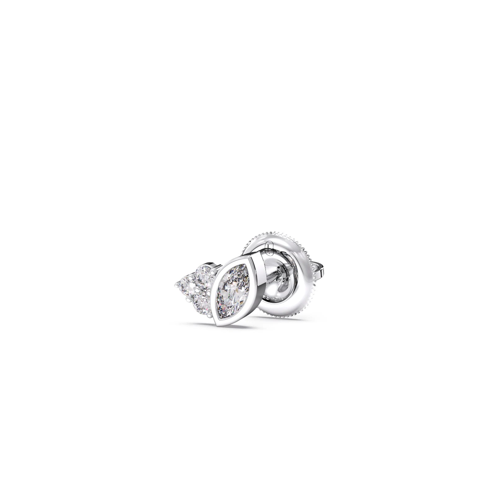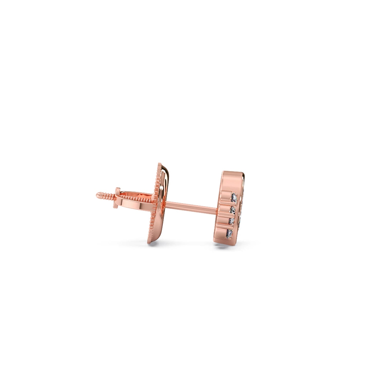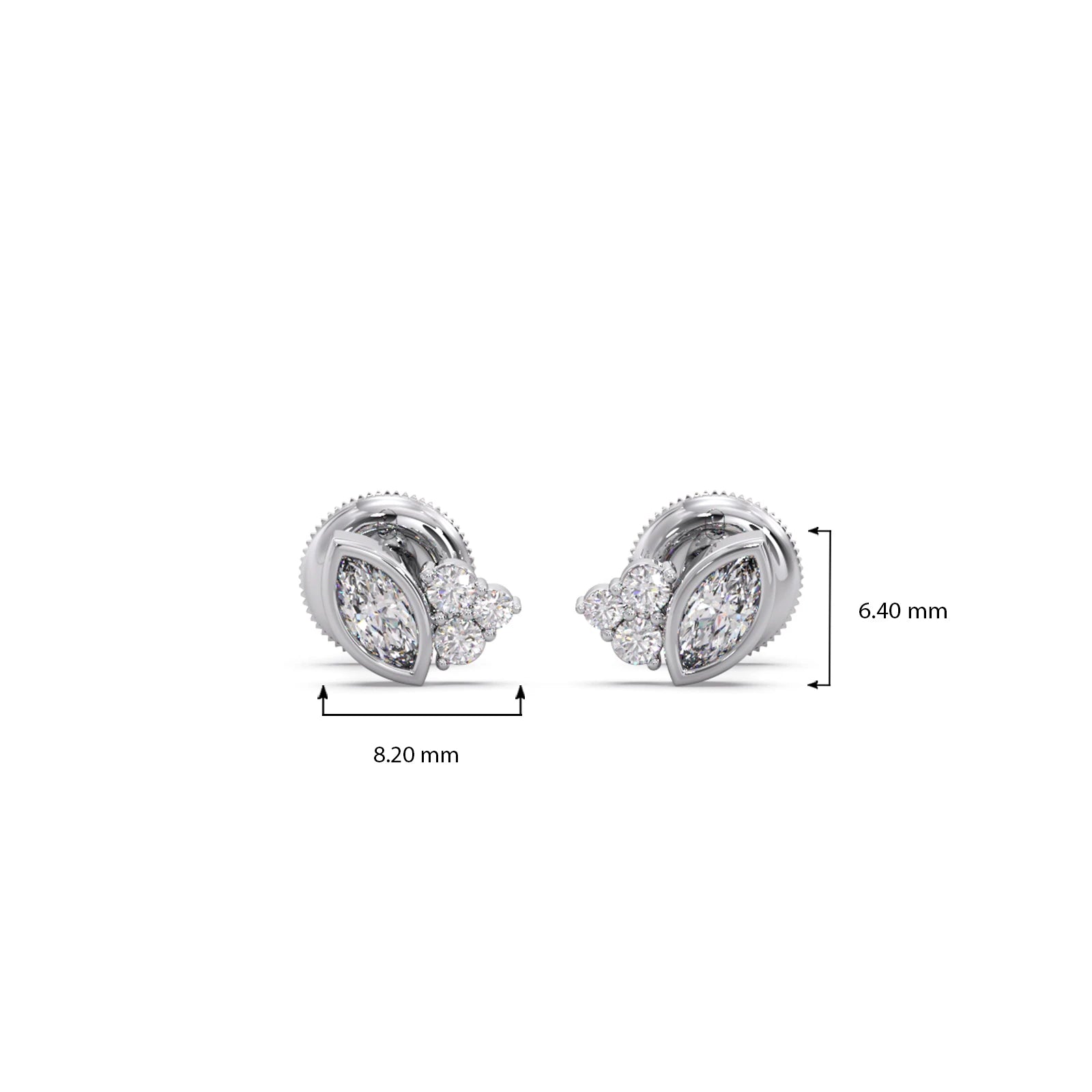 A pair of elegant stud earrings featuring a marquise-cut diamond center stone with a cluster of smaller diamonds surrounding it. The earrings are set in a classic rose gold setting.