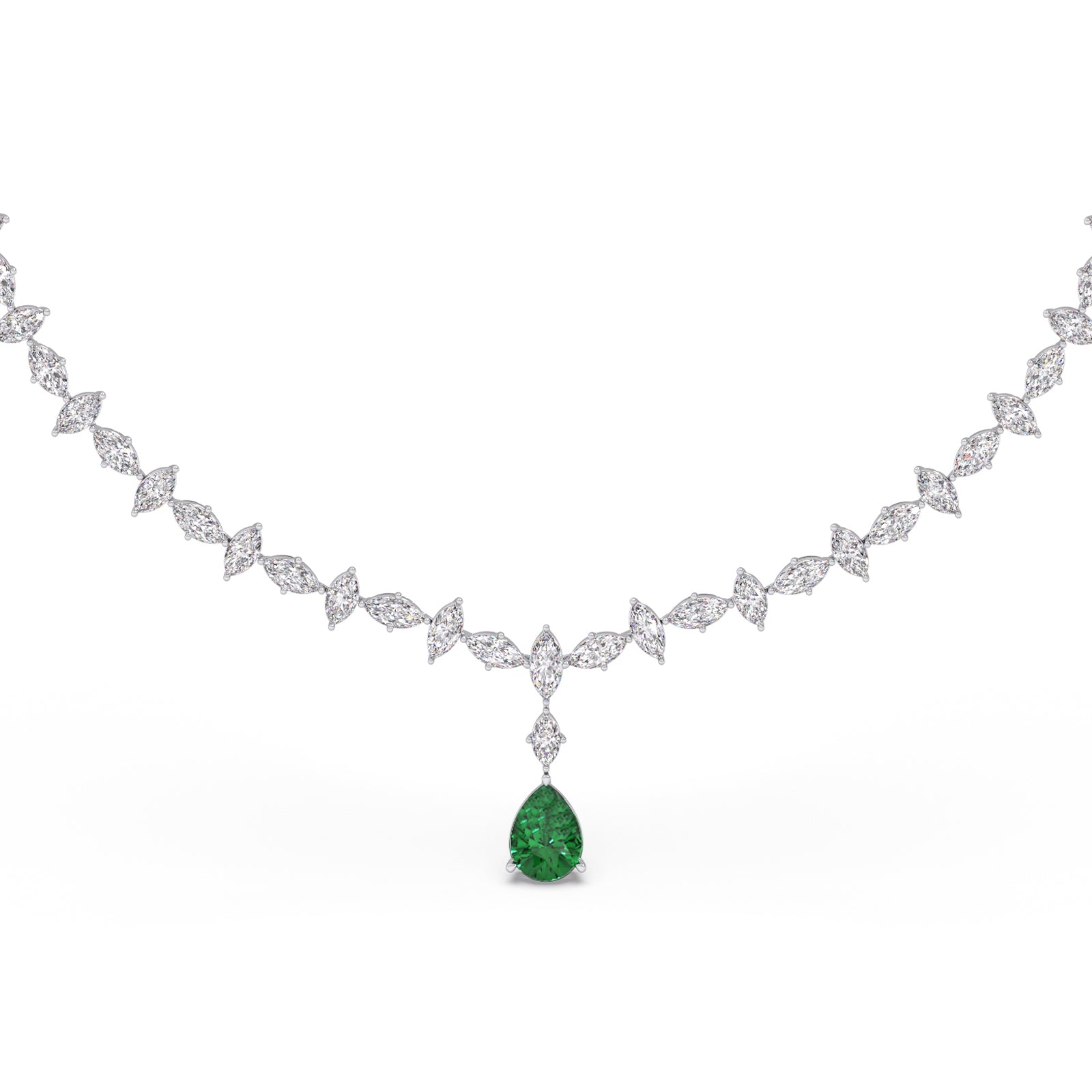 Marquise Diamond and Pear Gemstone Drop Necklace