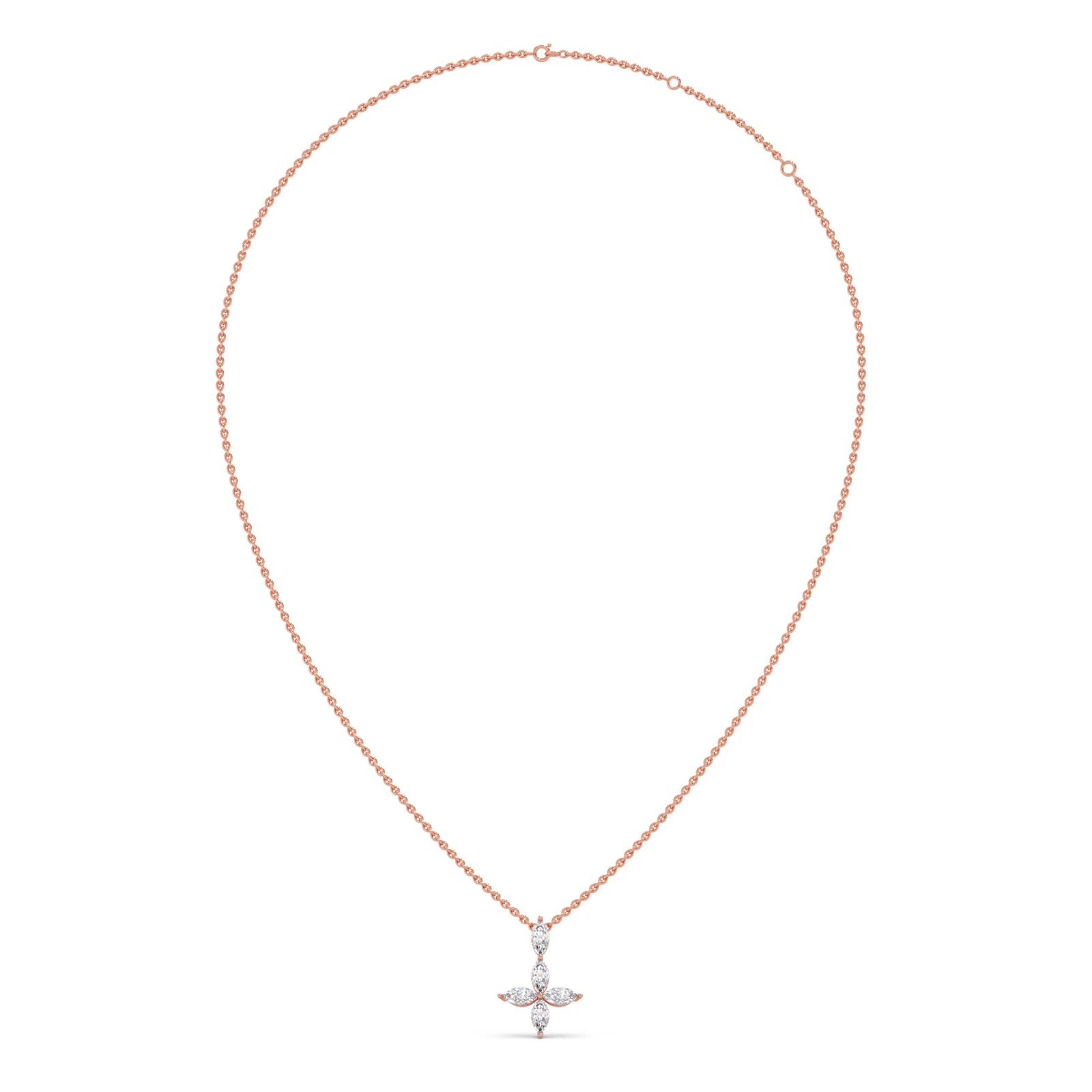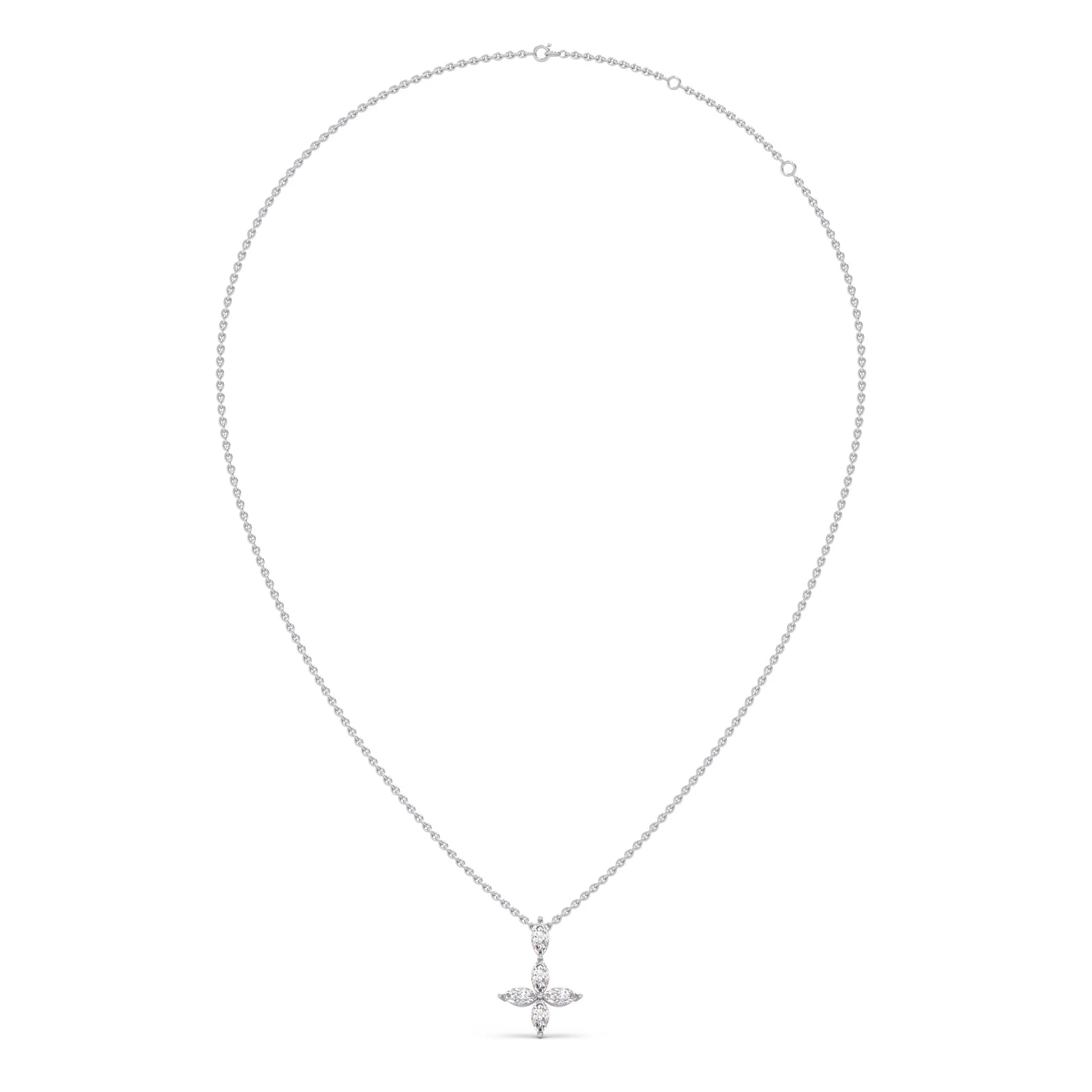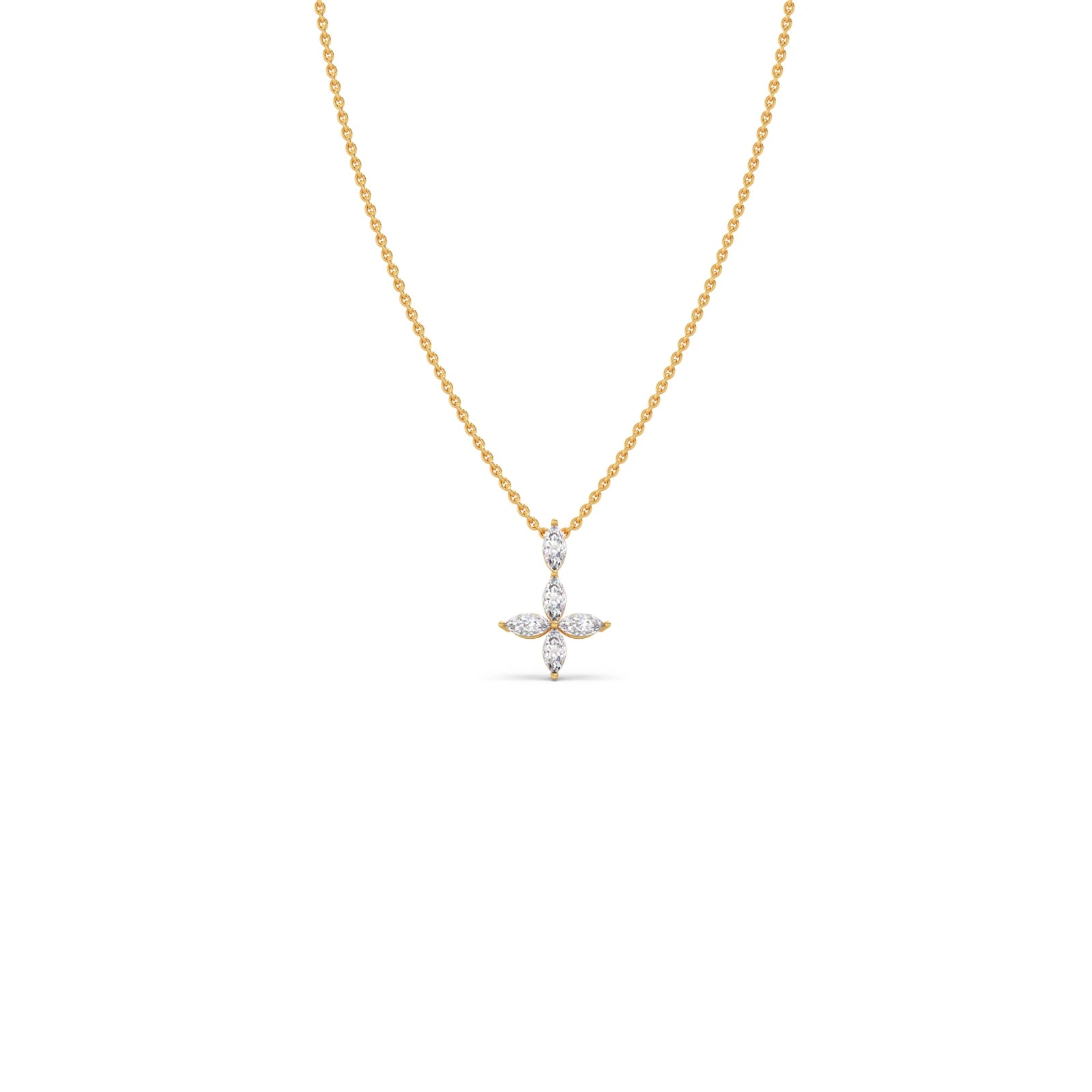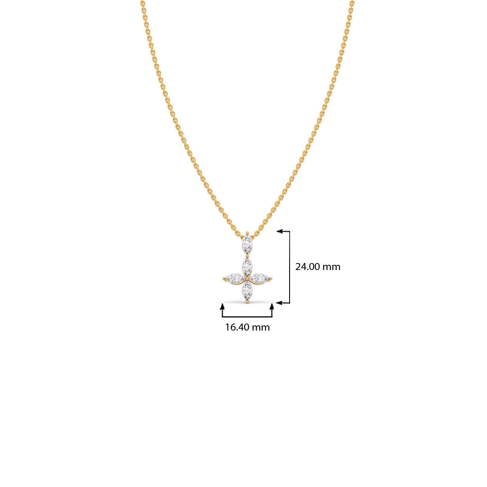 This exquisite Marquise Diamond Cross Pendant Necklace offers a unique take on a classic symbol. The elongated marquise-cut diamonds are carefully set to form a graceful and radiant cross. This elegant design brings a touch of modern sophistication to a timeless emblem of faith and devotion. A beautiful and meaningful piece to cherish.