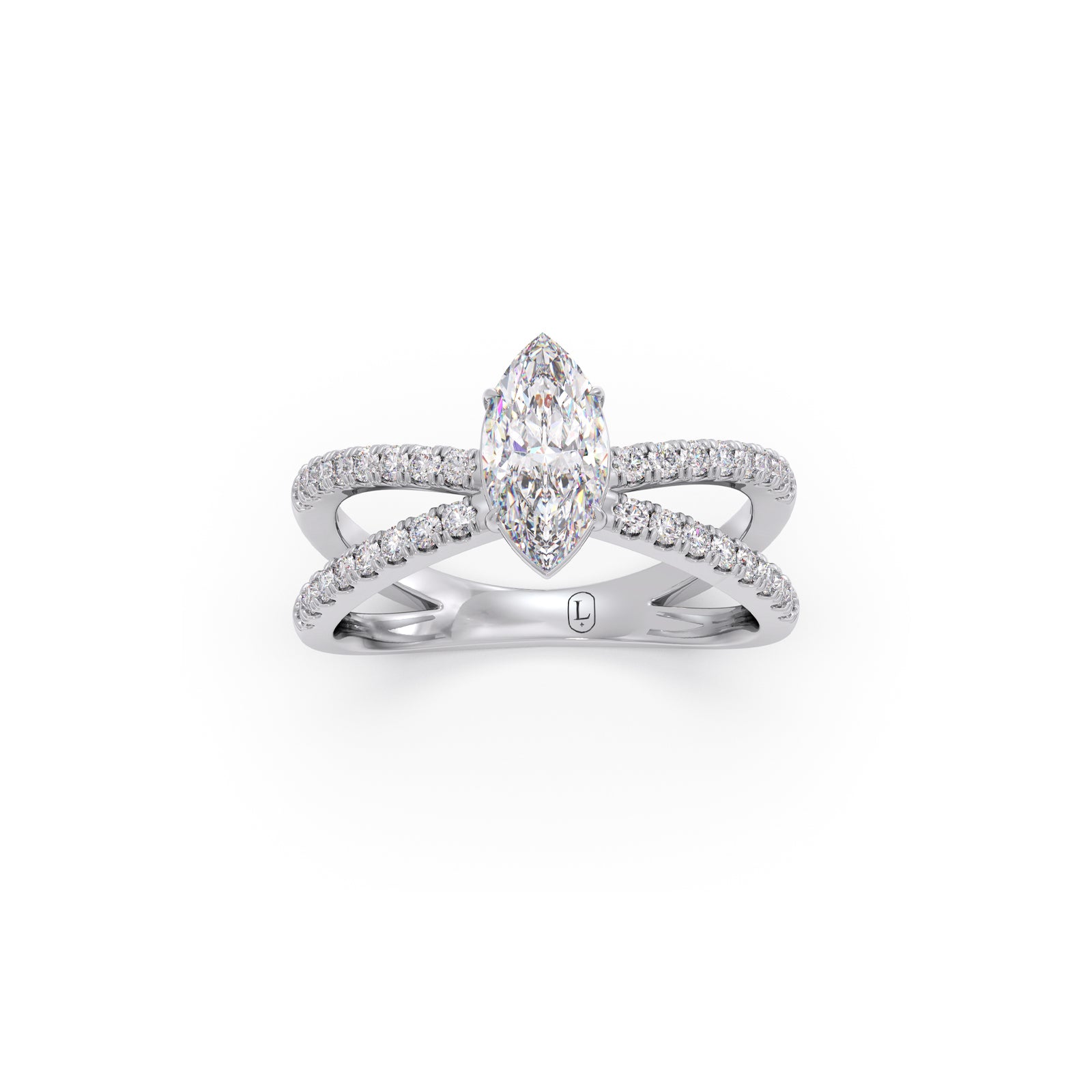 Marquise Diamond Crossover Micro Pave Engagement Ring